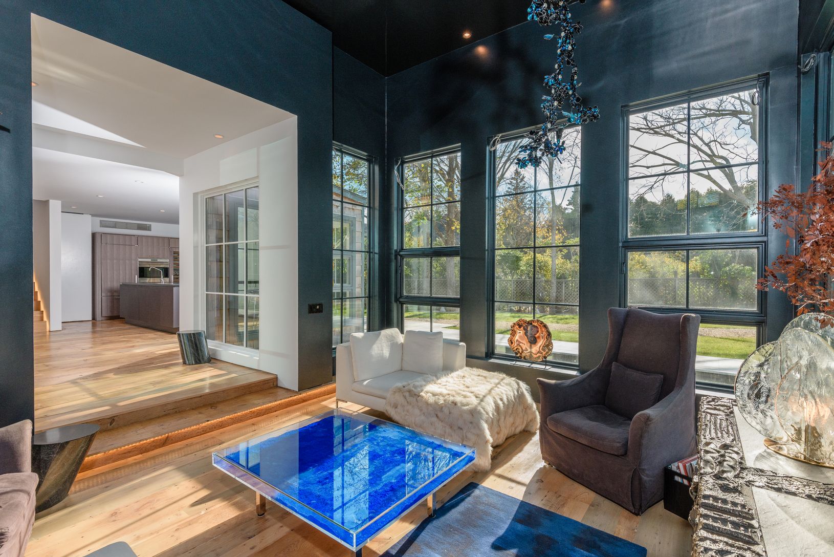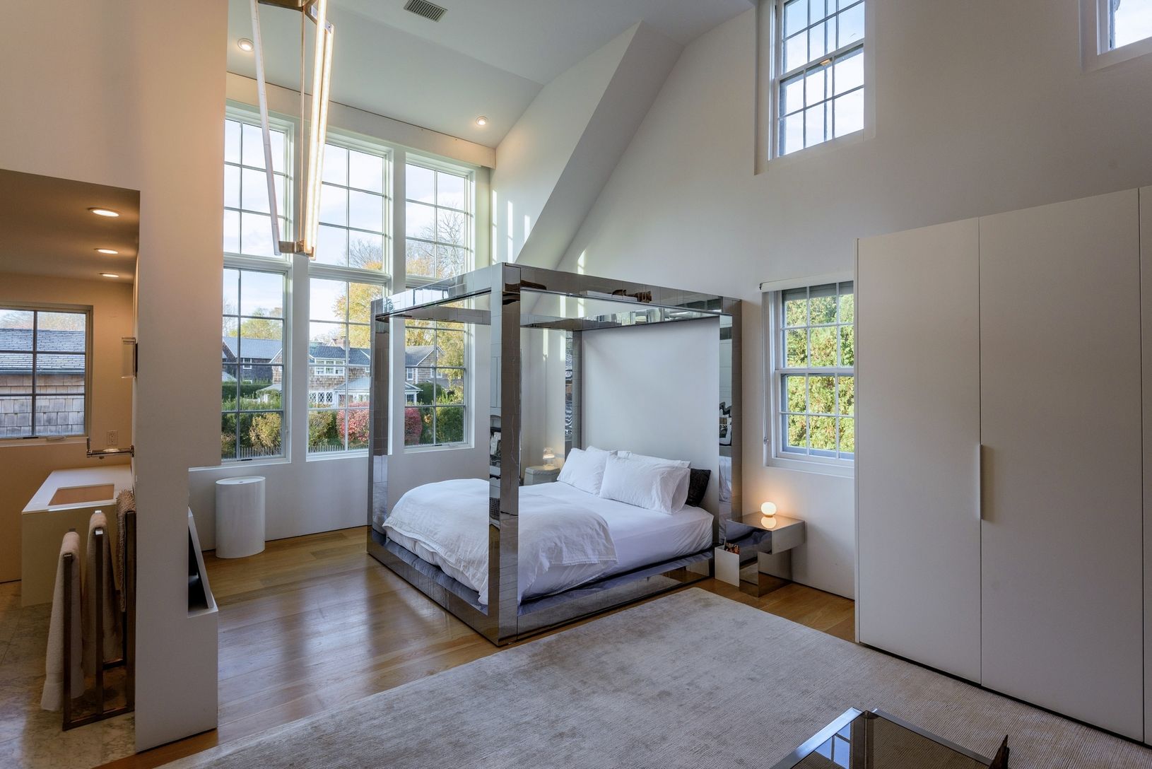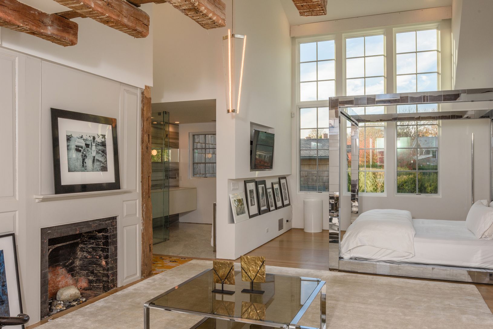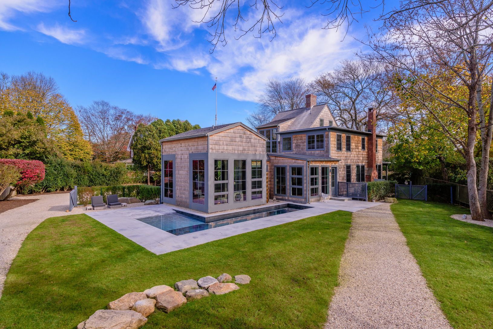This strikingly redesigned historic village home was renovated and expanded by the highest standards in 2015 to combine European style with seamless modern design and flow inviting the outdoors in. Original foyer gives to a spacious living room with exposed beams, eat-in chef's Boffi kitchen and double-height great room all framed by floor to ceiling windows and doors. There are five en-suite bedrooms, including the cathedral ceiling master be