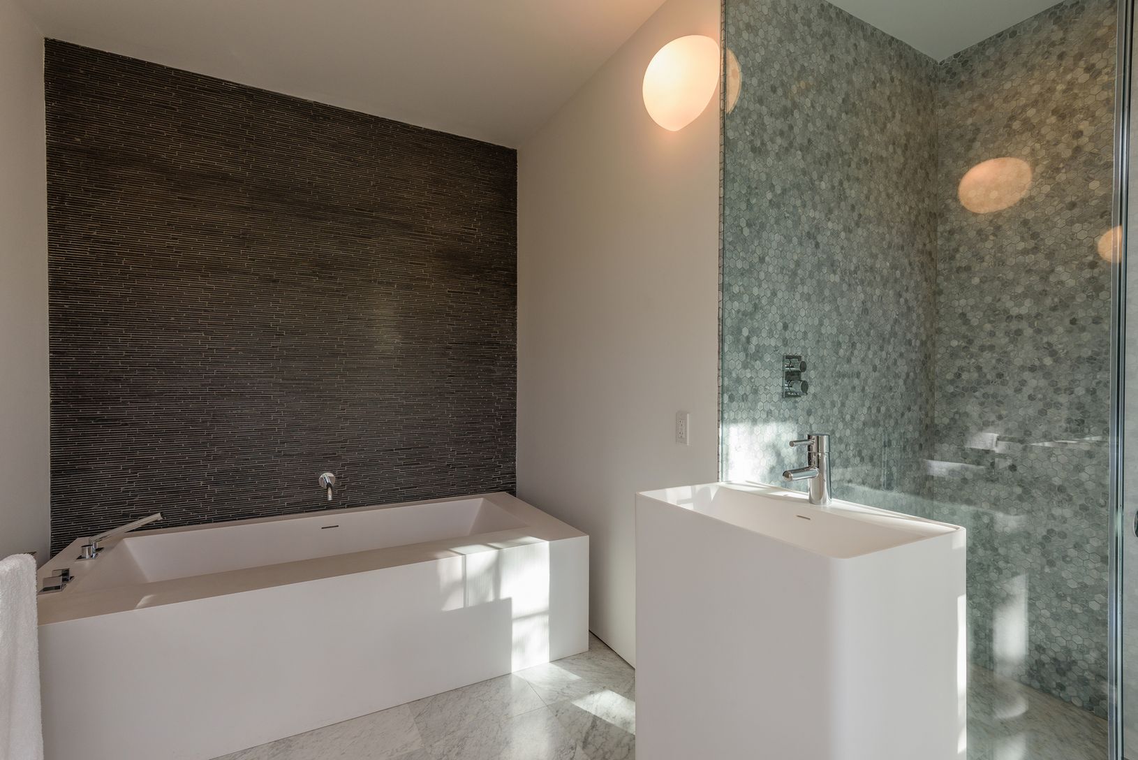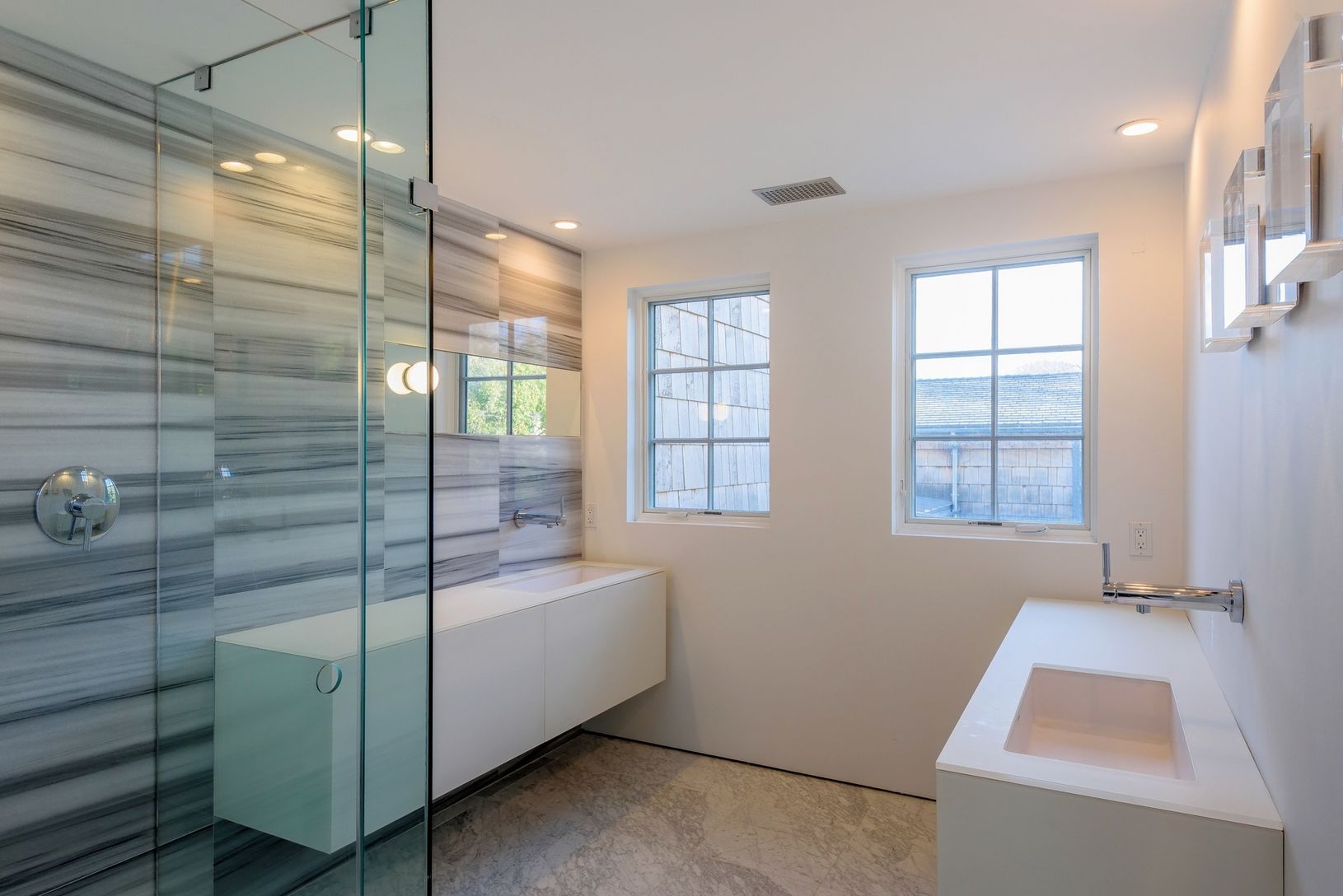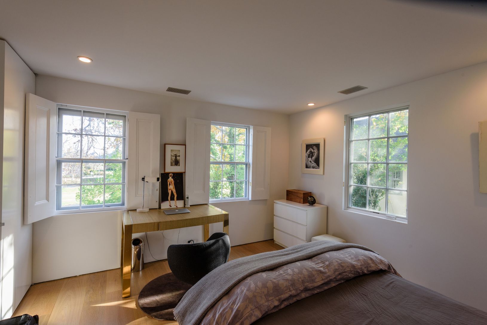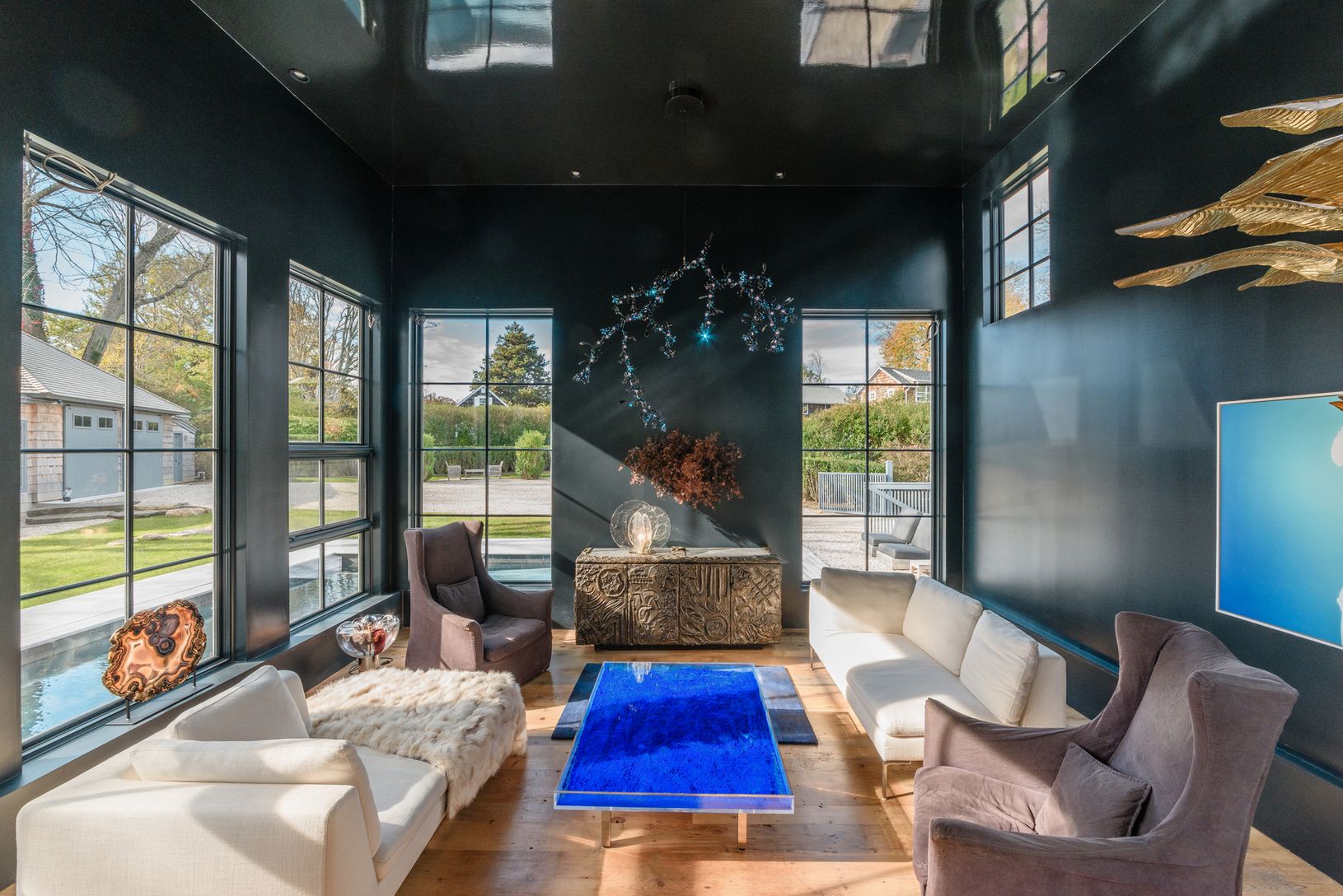 This strikingly redesigned historic village home was renovated and expanded by the highest standards in 2015 to combine European style with seamless modern design and flow inviting the outdoors in. Original foyer gives to a spacious living room with exposed beams, eat-in chef's Boffi kitchen and double-height great room all framed by floor to ceiling windows and doors. There are five en-suite bedrooms, including the cathedral ceiling master be
