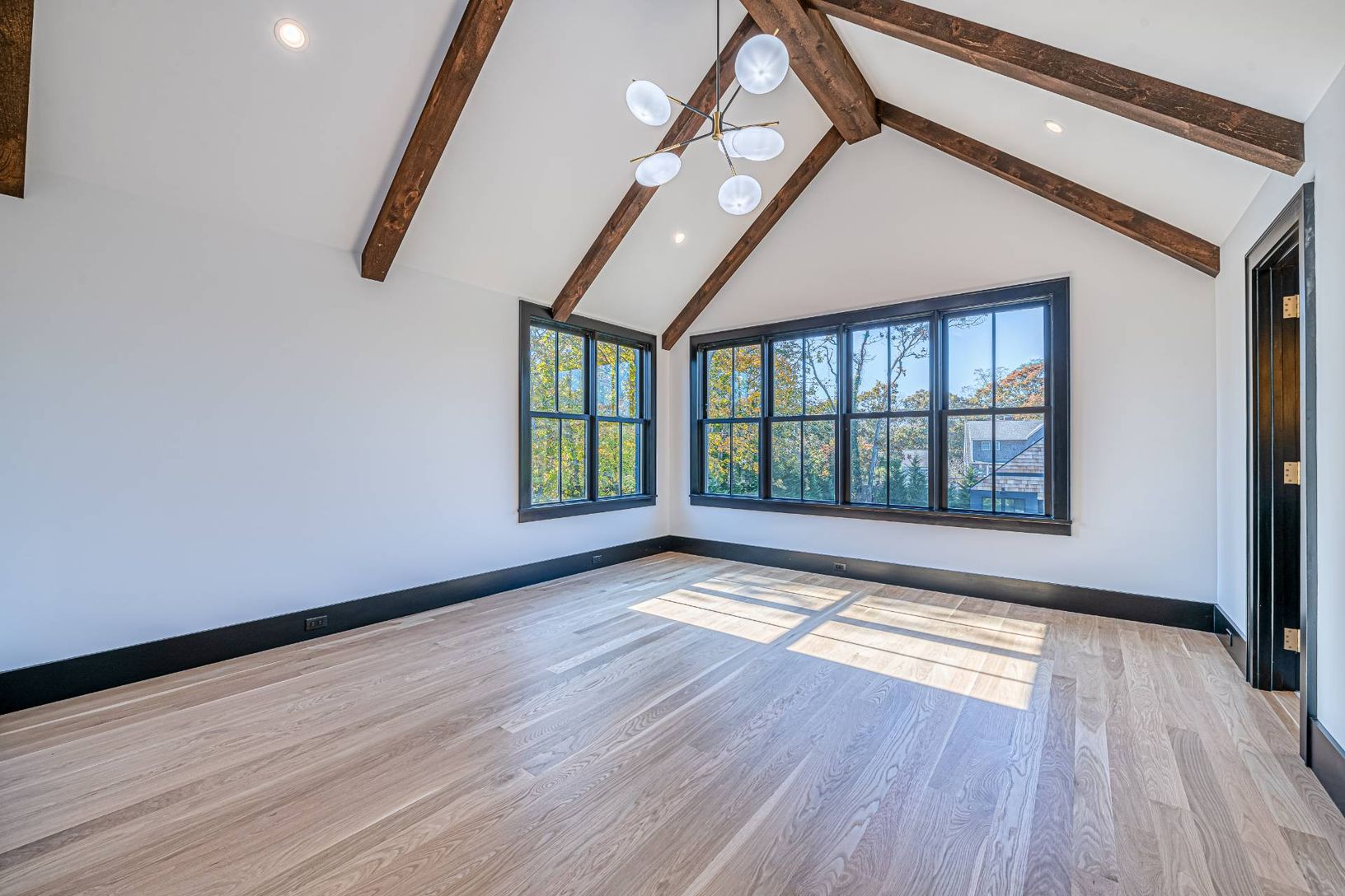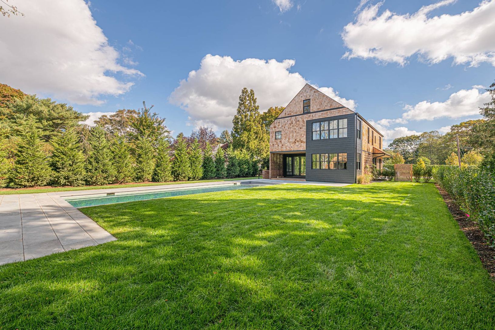 This sophisticated Westhampton Beach Village home, clad in mahogany and cedar, blending the warmth of the woods with black trim and accents, brings a new level of style to village living. This finely crafted home is built by Oak Leaf Construction Group and designed by architect Jason Linde of Sentient Design Works. Quality materials and details include white oak flooring and satin brass finishes on handles and fixtures. The 6 bedrooms and 7 ba