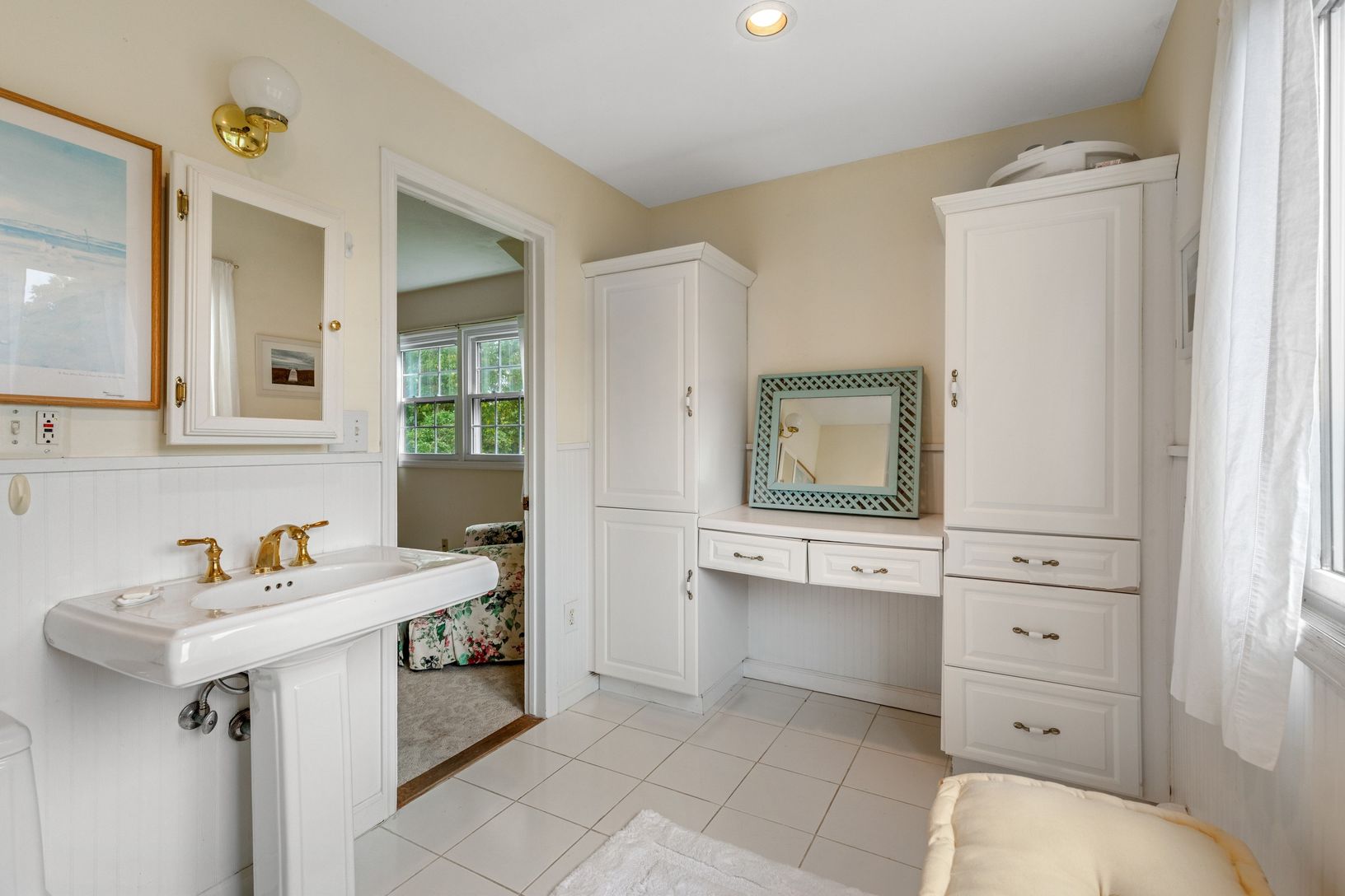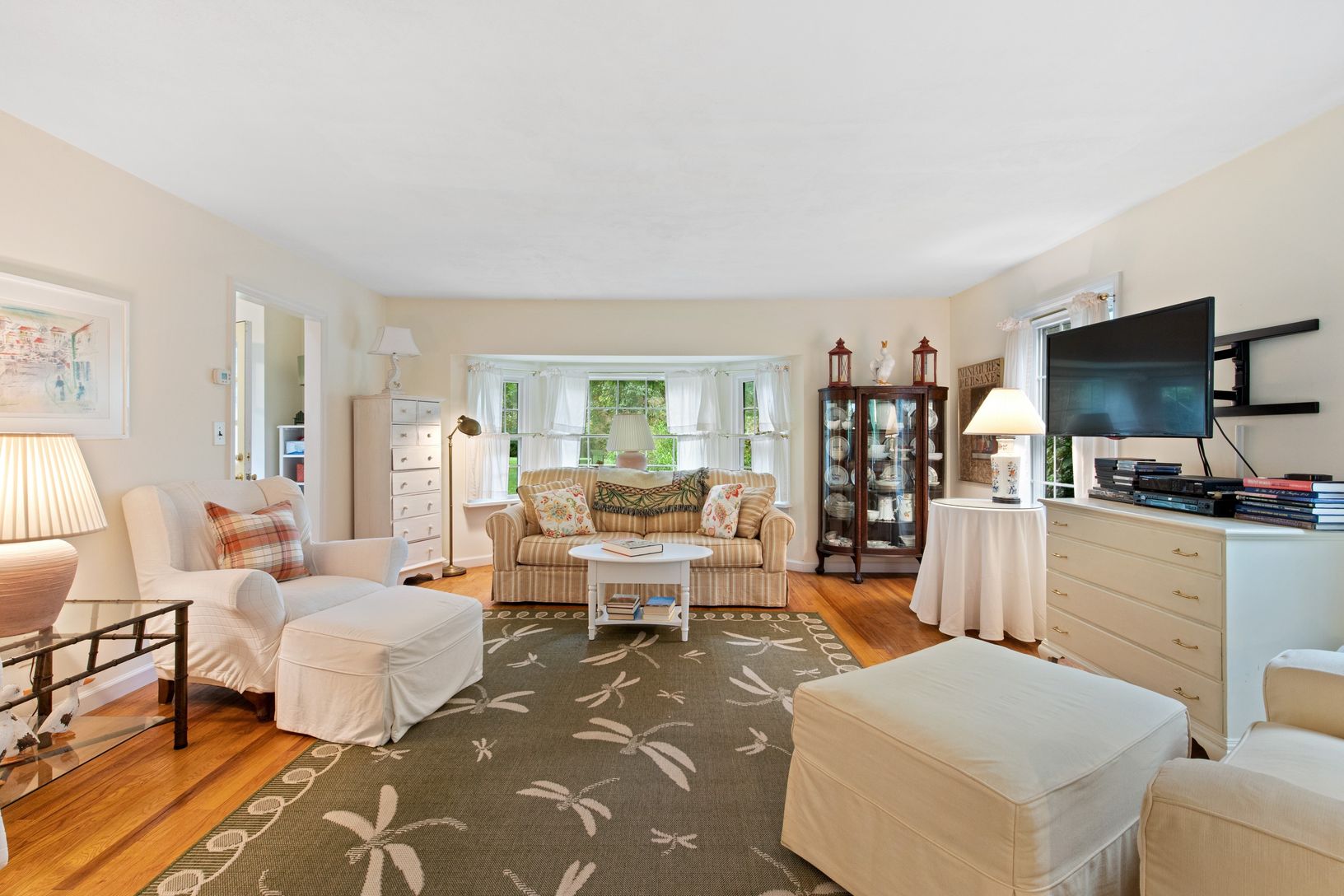 This sun drenched 2500 sf cape is nestled on a high vantage point in Southampton with the main driveway approach meandering around the third hole at Southampton Golf Club. As you drive up to the home, you enjoy beautiful vistas of the fairway throughout the year. Once settled in, this 3 Bedroom, 3 Full Bath home has a first level floor plan that flows effortlessly from the front entry to the back of the home with views overlooking the in-grou