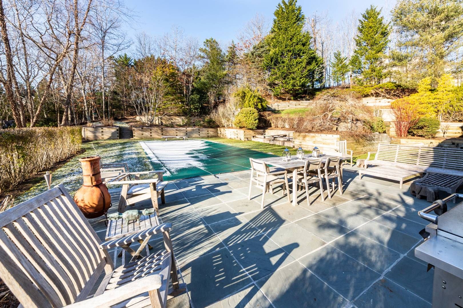 Escape to your Water Mill sanctuary this year. On bucolic Deerfield Road, set back from the street, this beautifully appointed home on just shy 2 acres has all you need for summer fun, and is also convenient to Water Mill, Bridgehampton and Sag Harbor, with Southampton in easy reach as well. Light-filled interiors flow among open living and dining areas with vaulted ceiling and a fireplace, and the eat-in kitchen with high end stainless steel