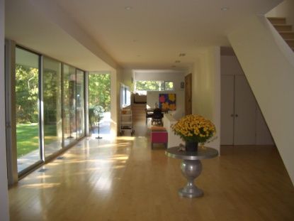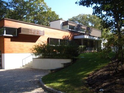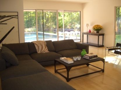 Private, tastefully decorated, pure modernism surrounds you in this sleek, six-bedroom, four and one half-bath home with 50-foot heated gunite pool on a naturalistic landscaped 2 +/- acre lot with oversized two-car garage, nearby Peconic Bay with access.