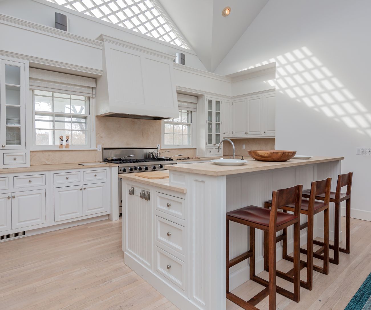 Located one one of the most picturesque streets in Bridgehampton south, this stylish and sun-drenched home presents a rare opportunity to live south of the highway. The airy, open floor plan consists of large living room with cathedral ceiling, a skylit eat-in chef's kitchen, and den with wood burning fireplace. The Master suite is conveniently located on the ground floor, with 3 additional bedrooms on the second floor. Bonus workout room boas