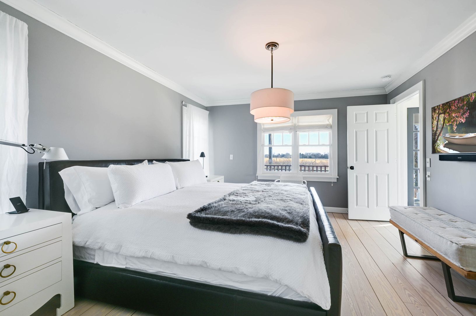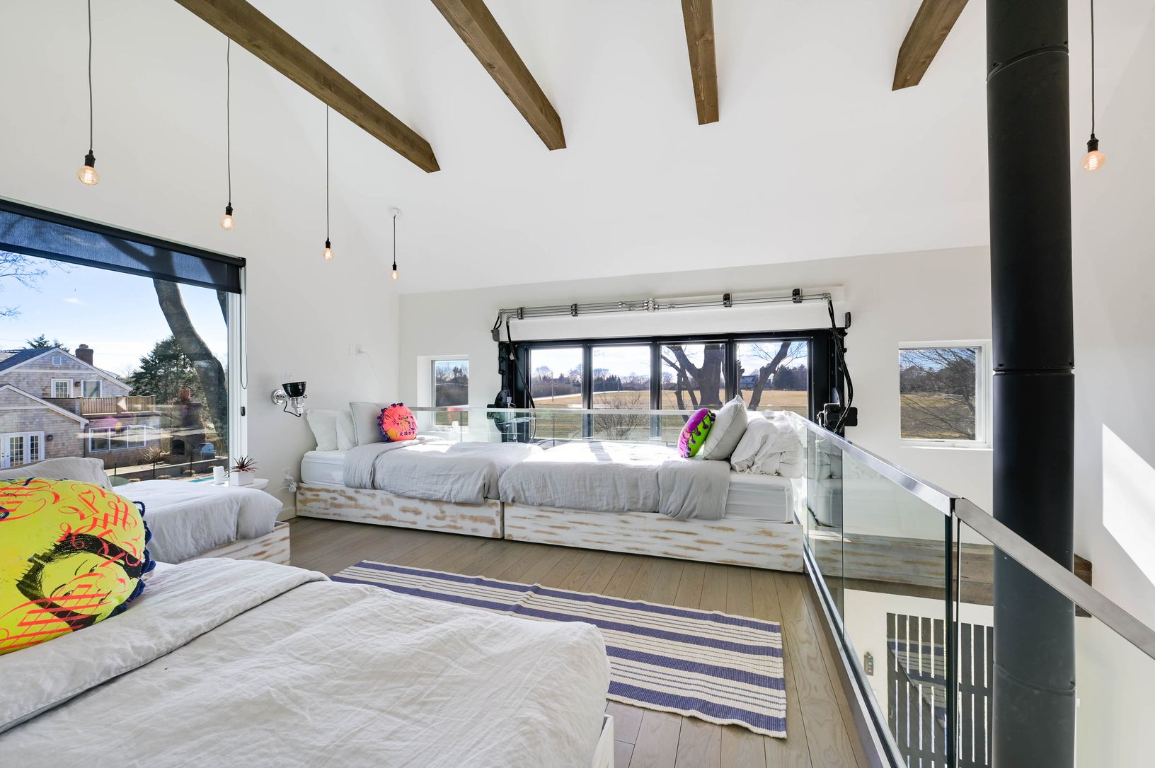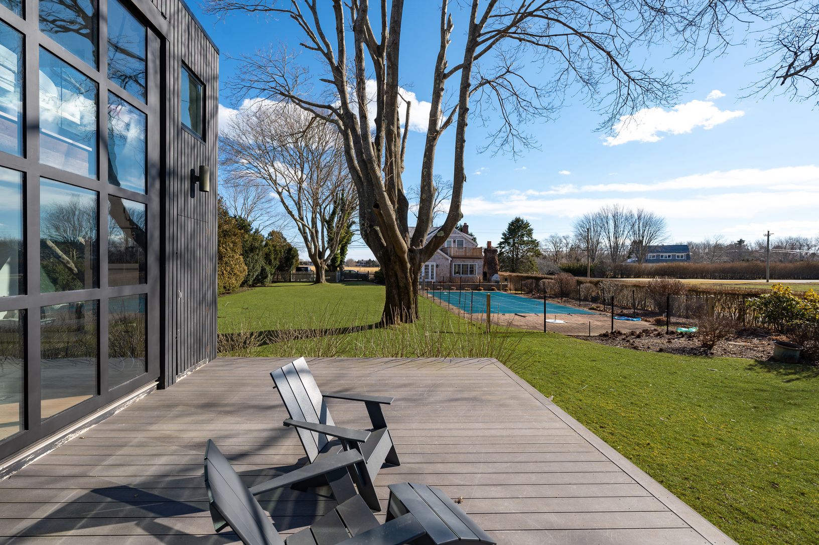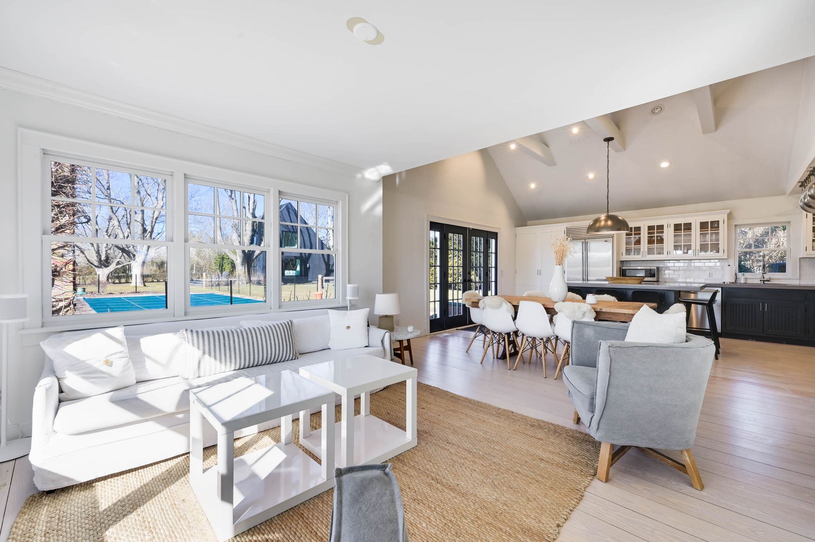 With a stellar Sagaponack South location, endless farmfield views, heated gunite pool and fabulous modern guest house, this 4 bedroom, 4.5 bath shingled traditional offers the perfect spot for summer fun and relaxation. The main house with open floor plan, flows from living room to gathering room, to gourmet kitchen. Panoramic windows flood the house with magical light and serene vistas from every room. French doors open from the kitchen to a