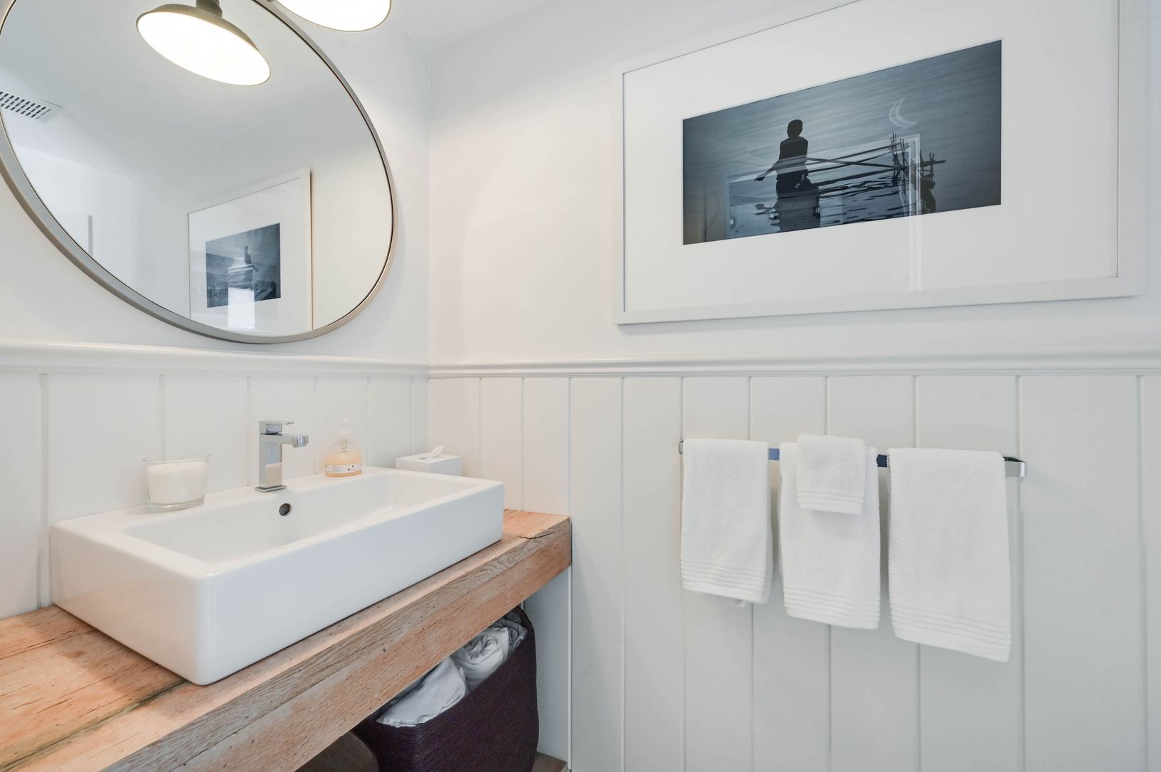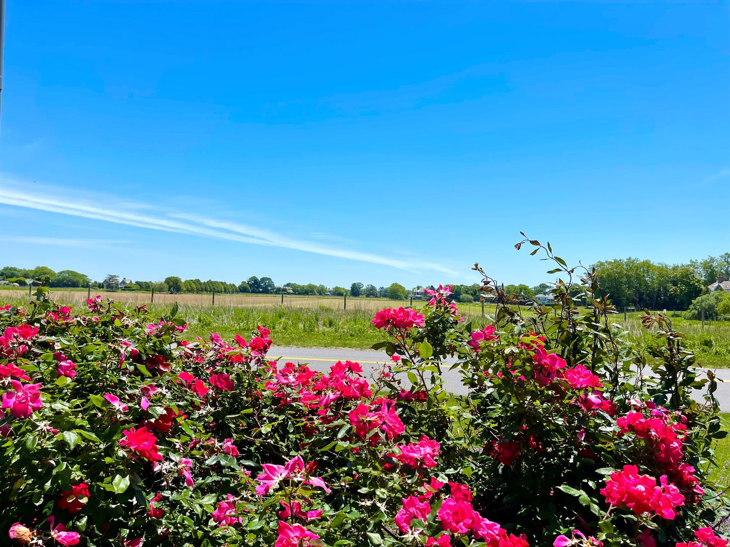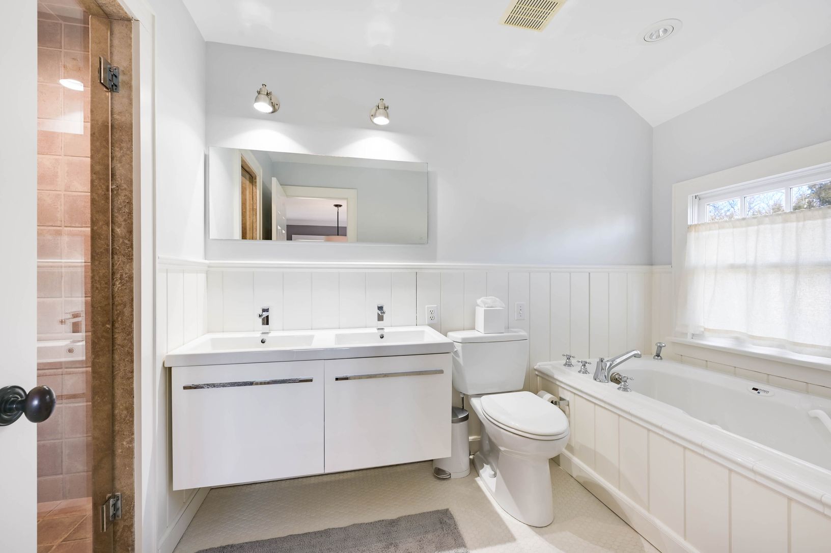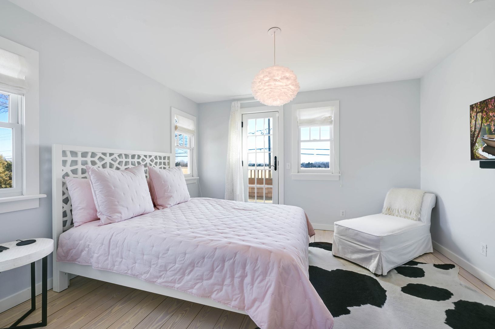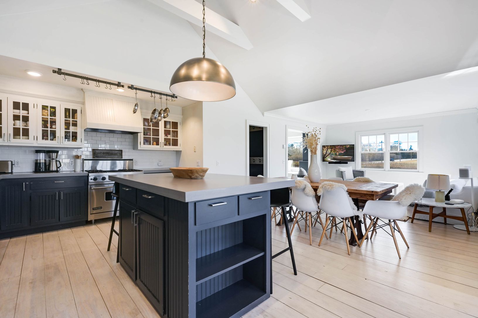 With a stellar Sagaponack South location, endless farmfield views, heated gunite pool and fabulous modern guest house, this 4 bedroom, 4.5 bath shingled traditional offers the perfect spot for summer fun and relaxation. The main house with open floor plan, flows from living room to gathering room, to gourmet kitchen. Panoramic windows flood the house with magical light and serene vistas from every room. French doors open from the kitchen to a