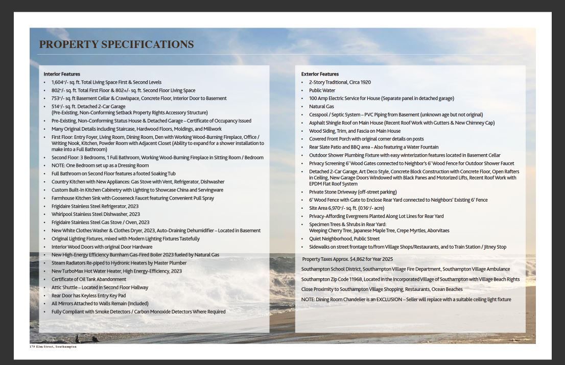 This beautifully maintained home is situated on one of the most sought-after streets in Southampton Village - Elm Street. Just moments from world-class beaches, village shops, and restaurants, this rare treasure is filled with warmth, elegance, and charm. Offering 1,604 +/- sq. ft. of living space, the 2-story home features 3 bedrooms, 1 full bathroom, 1 half bath, 2 working wood-burning fireplaces, with original woodwork and intricate millwor