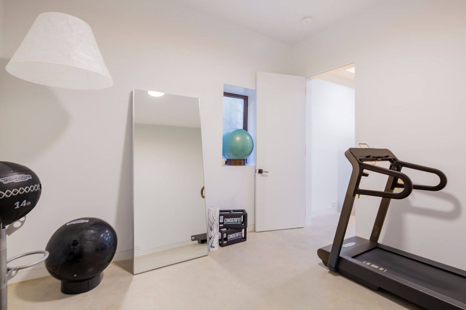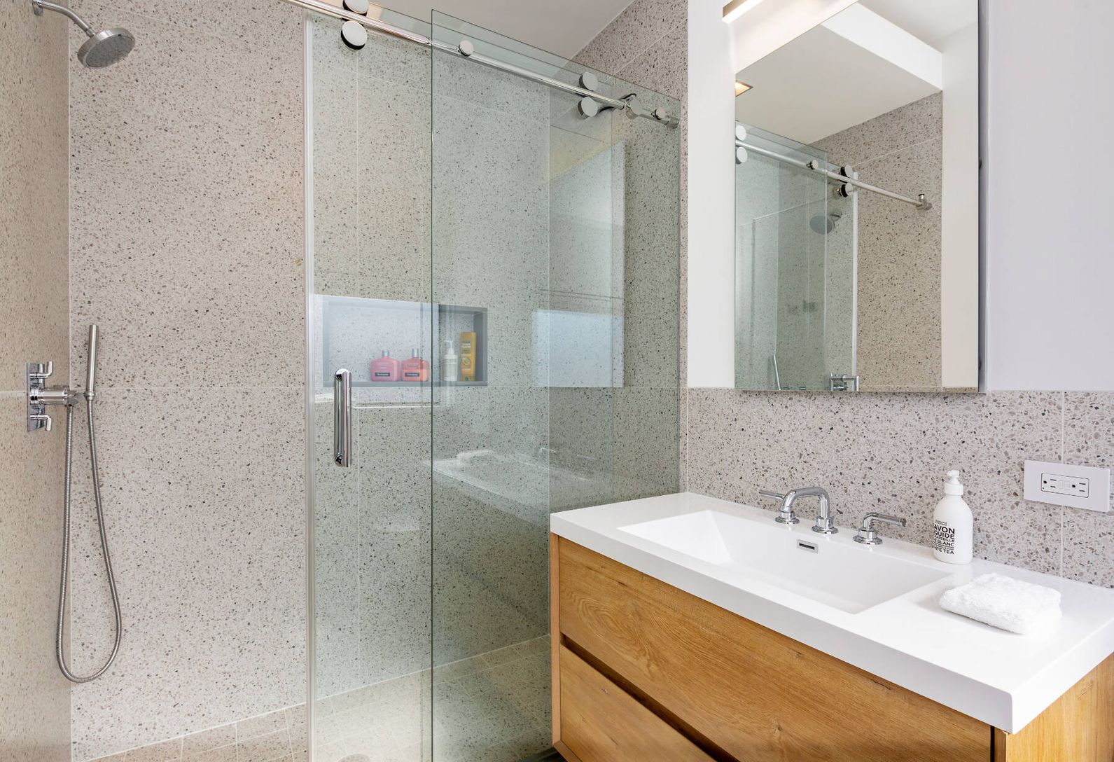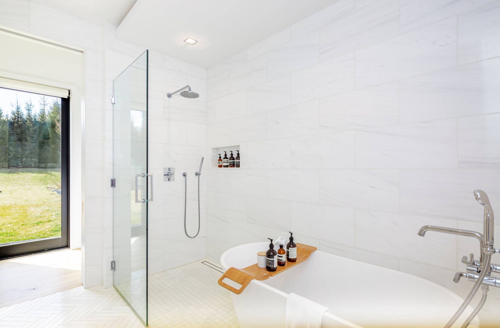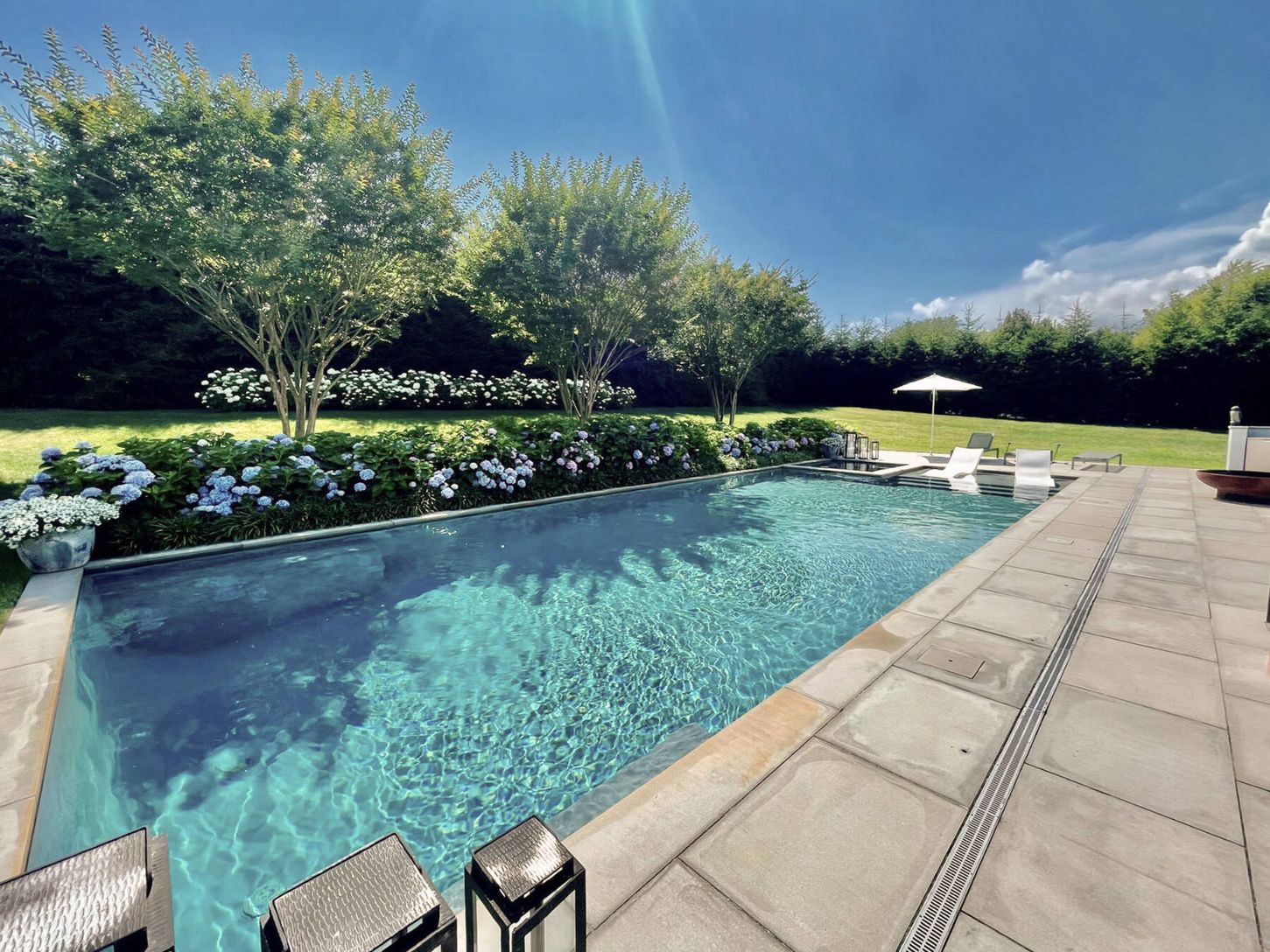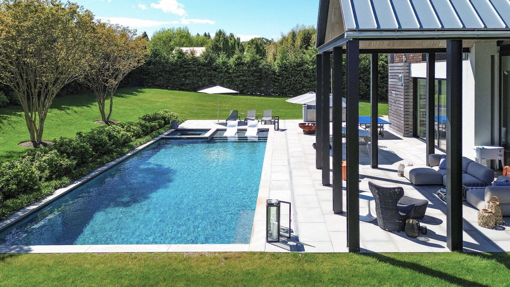 This stunning contemporary home offers 5,800± sq. ft. of impeccably designed living space with five bedrooms and six full baths. Thoughtfully designed for comfort and accessibility, the home is handicap-friendly, featuring wide entryways, an open layout, and a first-floor primary suite to ensure ease of movement throughout. Walls of glass, custom steel-framed doors, LaCantina sliders, and soaring ceilings fill the home with natural light. The