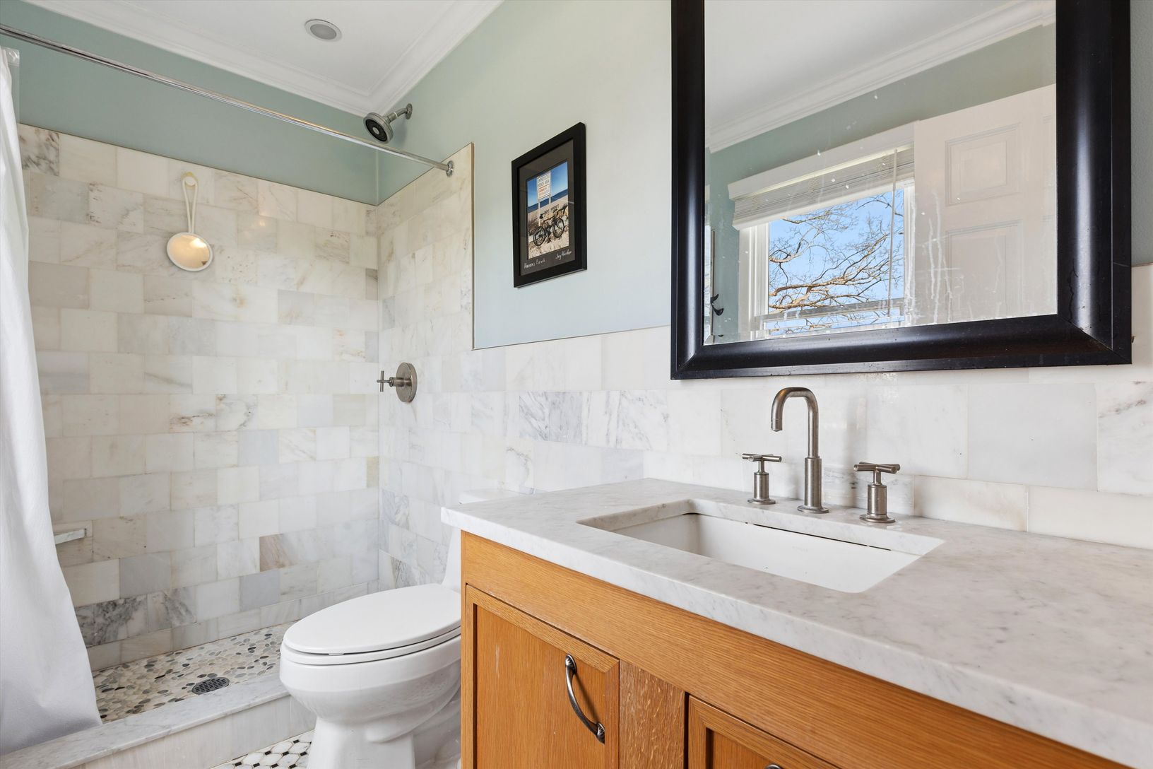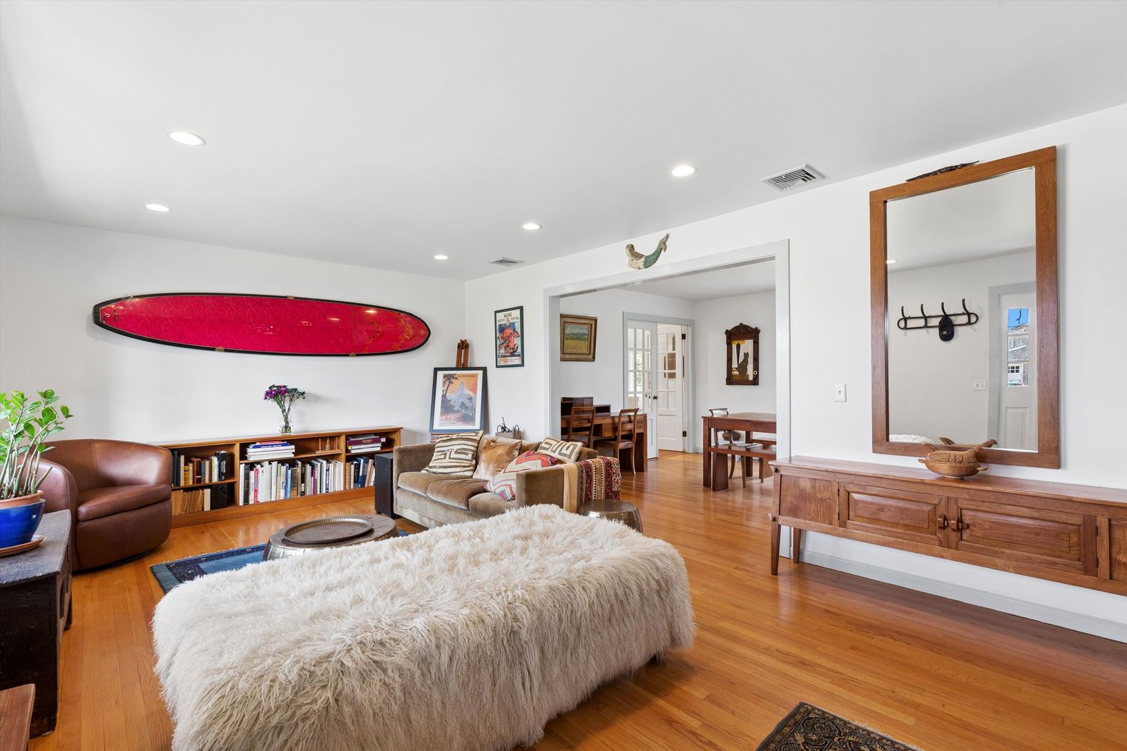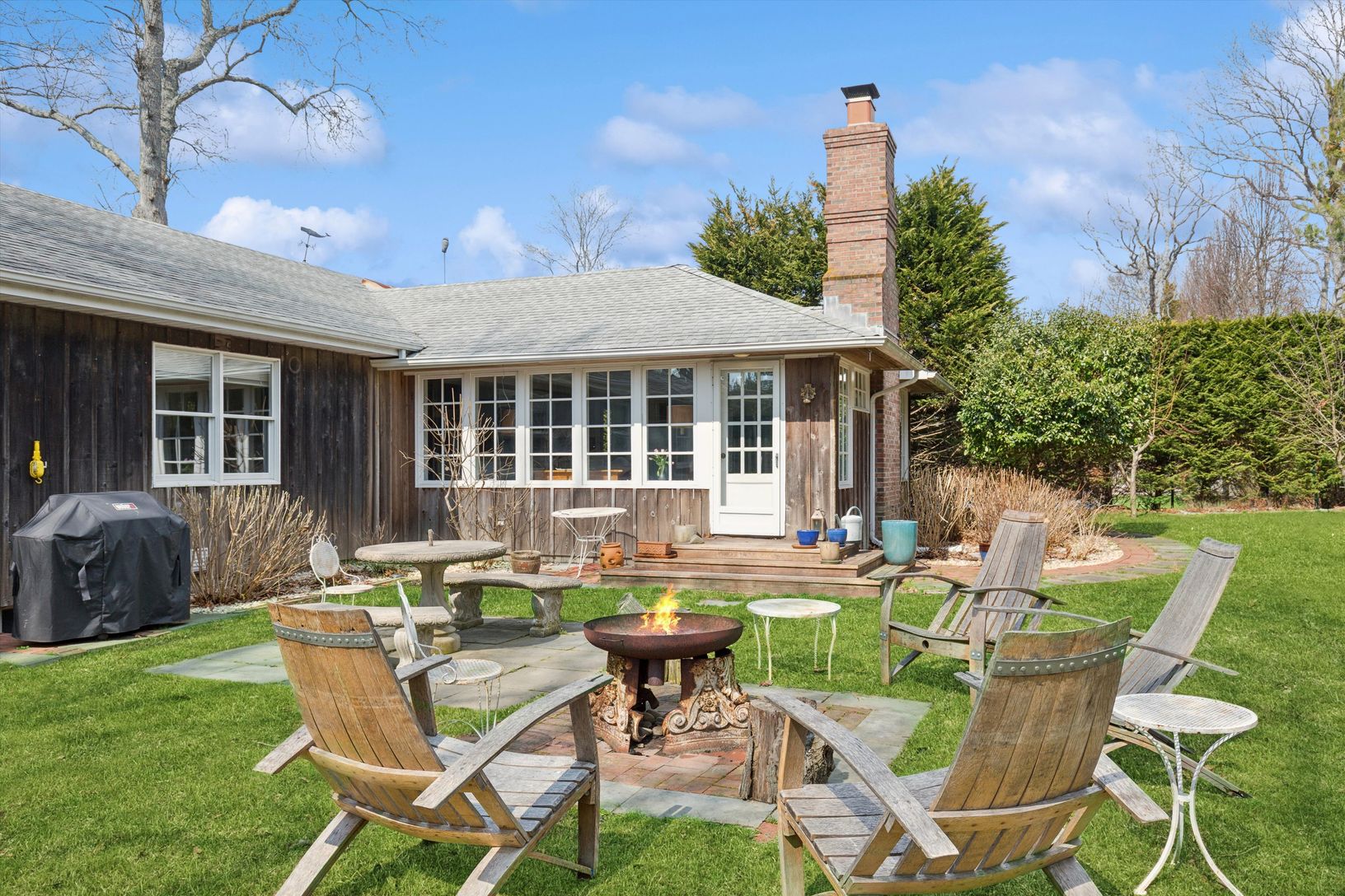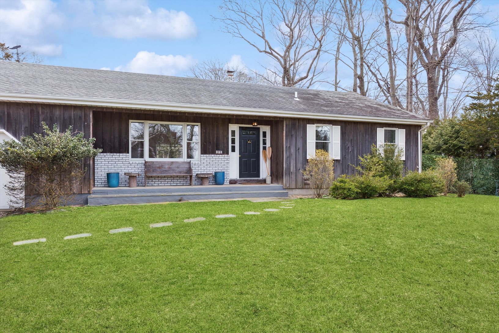 Beautifully situated in the Redwood Community of Sag Harbor Village, this charming property is a few houses away from water/bay access. The home features: a great room, professional kitchen, dining room, living room, four bedrooms and three full bathrooms. There are three bedrooms on the first floor including an ensuite primary; the finished lower level has one bedroom and a full bathroom. Outside, there are expansive landscaped grounds, with