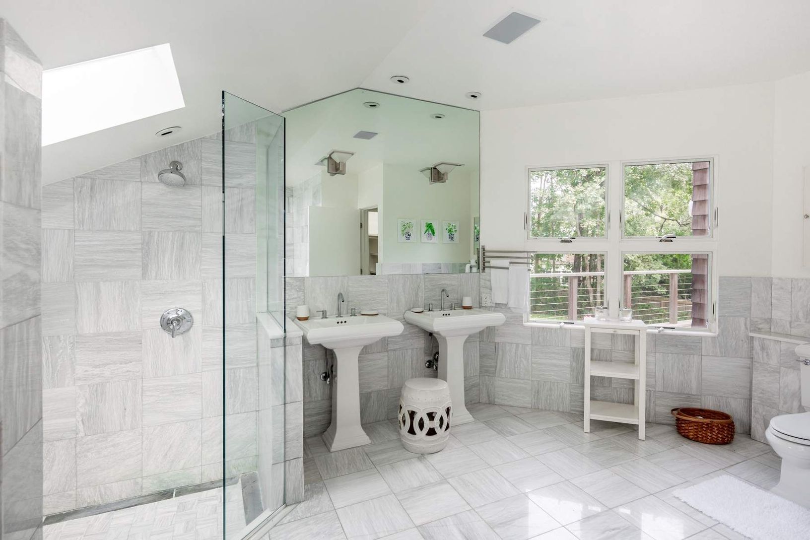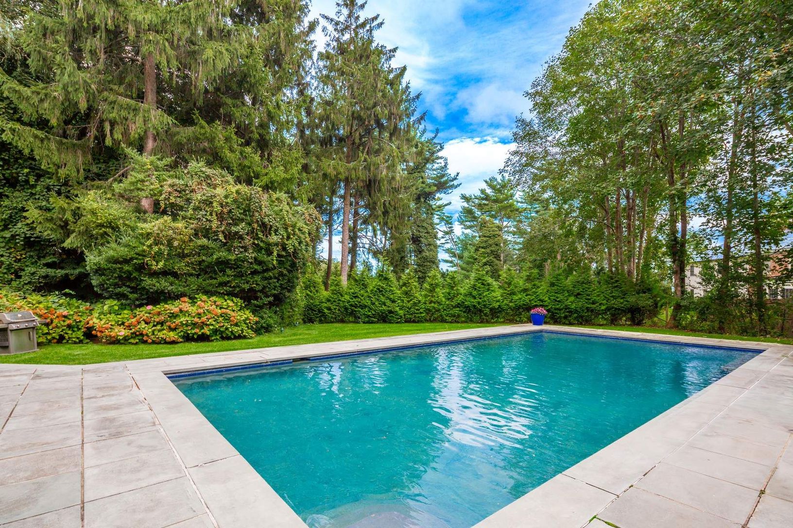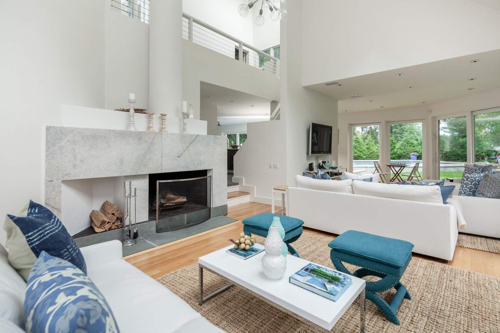 Hidden behind generous mature landscaping on prestigious Rose Hill Road, this light filled contemporary offers 4 bedrooms and 3.5 baths on a private 1.03+/- acre lot. An open floor plan includes a chef's kitchen with two large prep areas and Carrara marble countertops, leading to a dining area with views of pool and expansive decking. The first-floor main attraction is the Great Room featuring a wood burning fireplace, double height ceiling wi