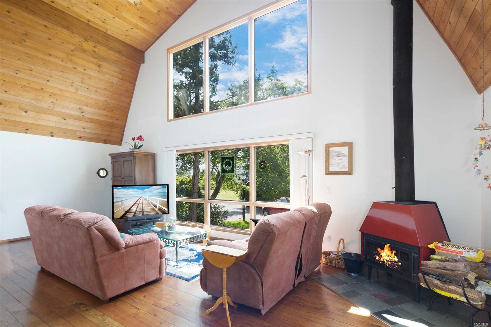 Perfect location for boating, kayaking and paddle boarding. This home boasts an open floor plan with plenty of natural light. Large picture window with views of the bay and a cozy wood burning fireplace. First floor master bedroom and recently updated master bath with beautiful hardwood floors throughout. Expansive deck with hot tub, outdoor shower and lower level inground heated pool and jacuzzi. Private and secluded property, while close to