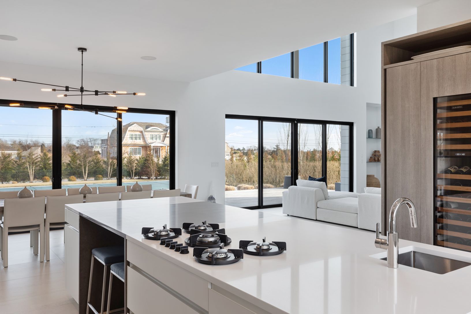 MODERN GREEN HOME WIFI AUTOMATED with seamless integration of indoor/outdoor space. Featuring 5 ensuite bedrooms, 5.5 bathrooms. The living room, dining room, gourmet kitchen, and den are all one large open space. The kitchen has a sub-zero refrigerator, Wolf double ovens, 2 dishwashers, 5 burner gas cooktop, quartz countertops, 2 large wine refrigerators, heated 20x50 salt gunite pool, covered outdoor living and dining with 2 sided fireplace