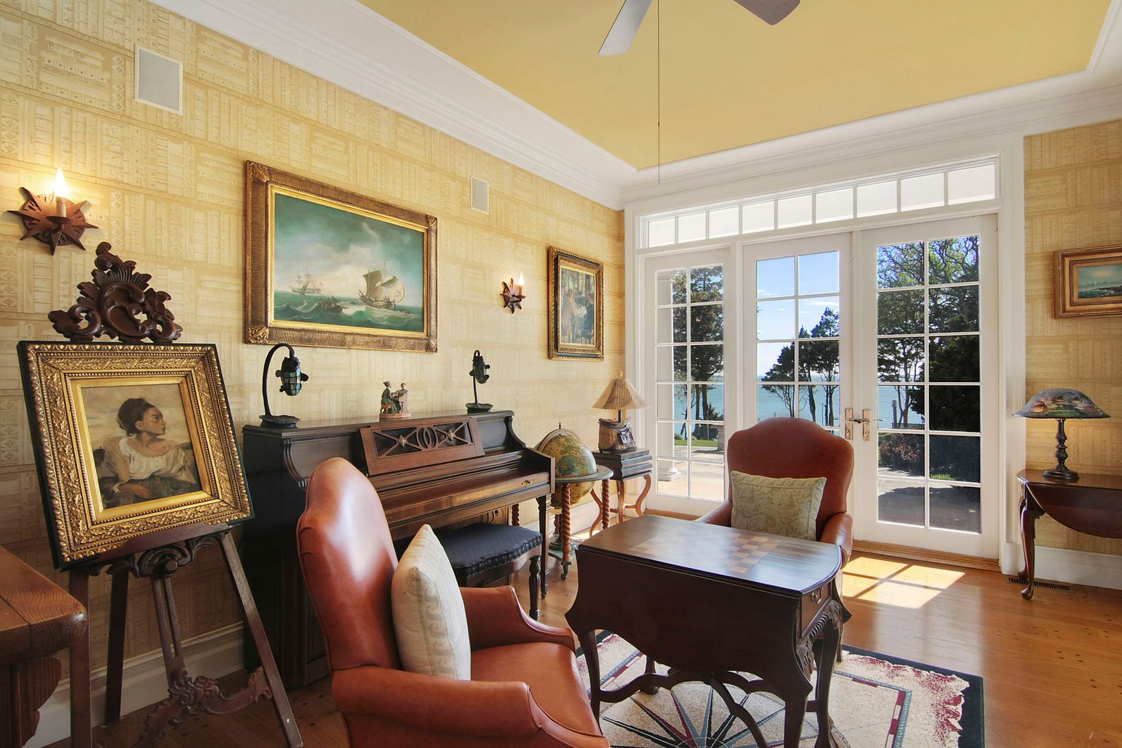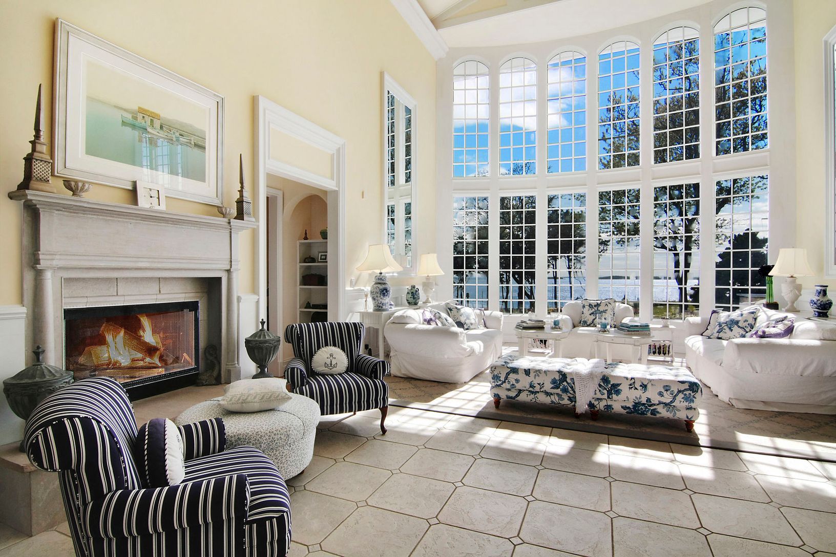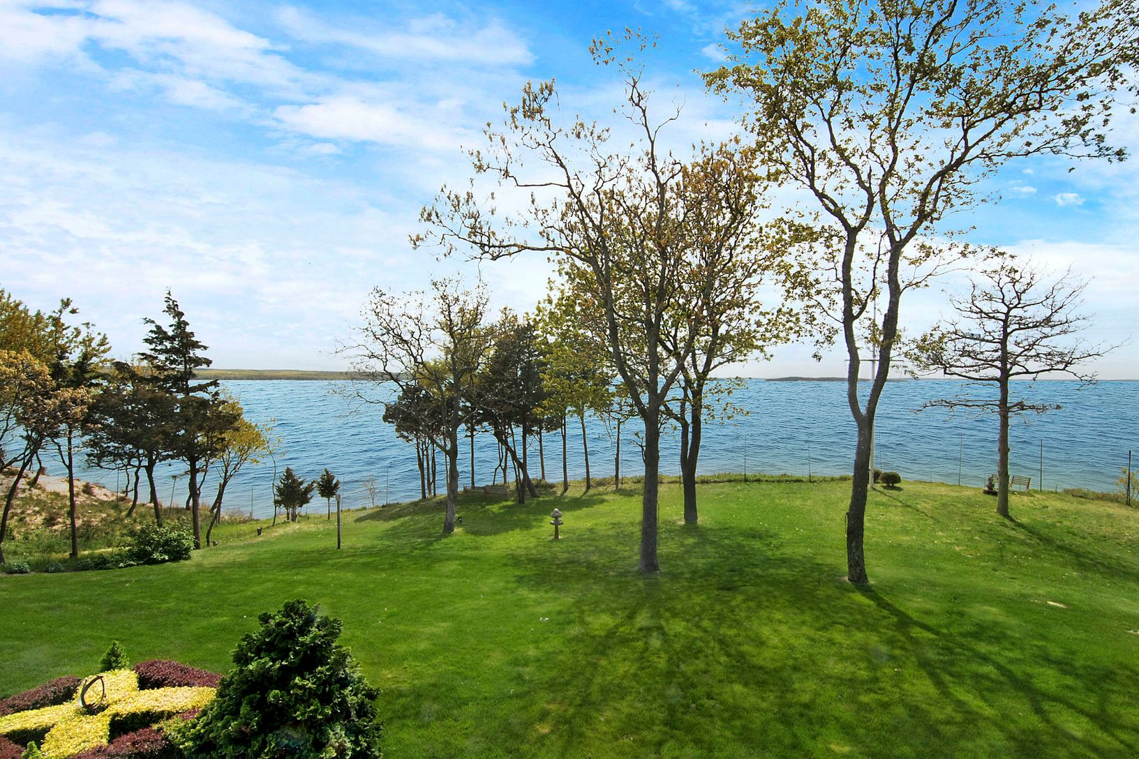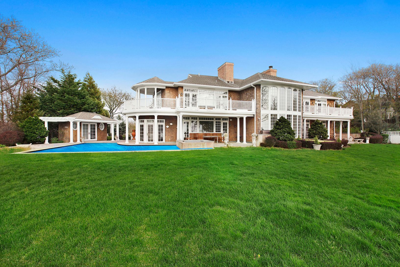 The most exquisite sunsets in the Hamptons and sitting high on the Bluff with forever bay views is the setting for this beautiful traditional home. Sitting on 2.6 secluded landscaped acres with 250' of waterfront. Watch the ships go by from the heated waterside pool and spa. Boasting 6,000 plus square ft. of living space all detailed and meticulously maintained. Entertain effortlessly with large gourmet kitchen, formal dining room, media room