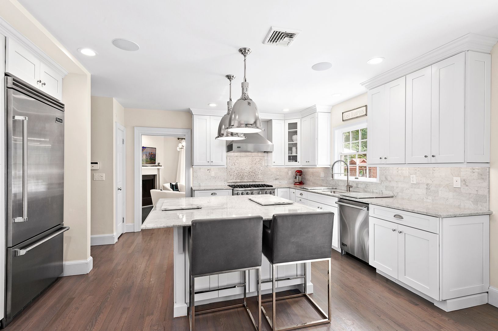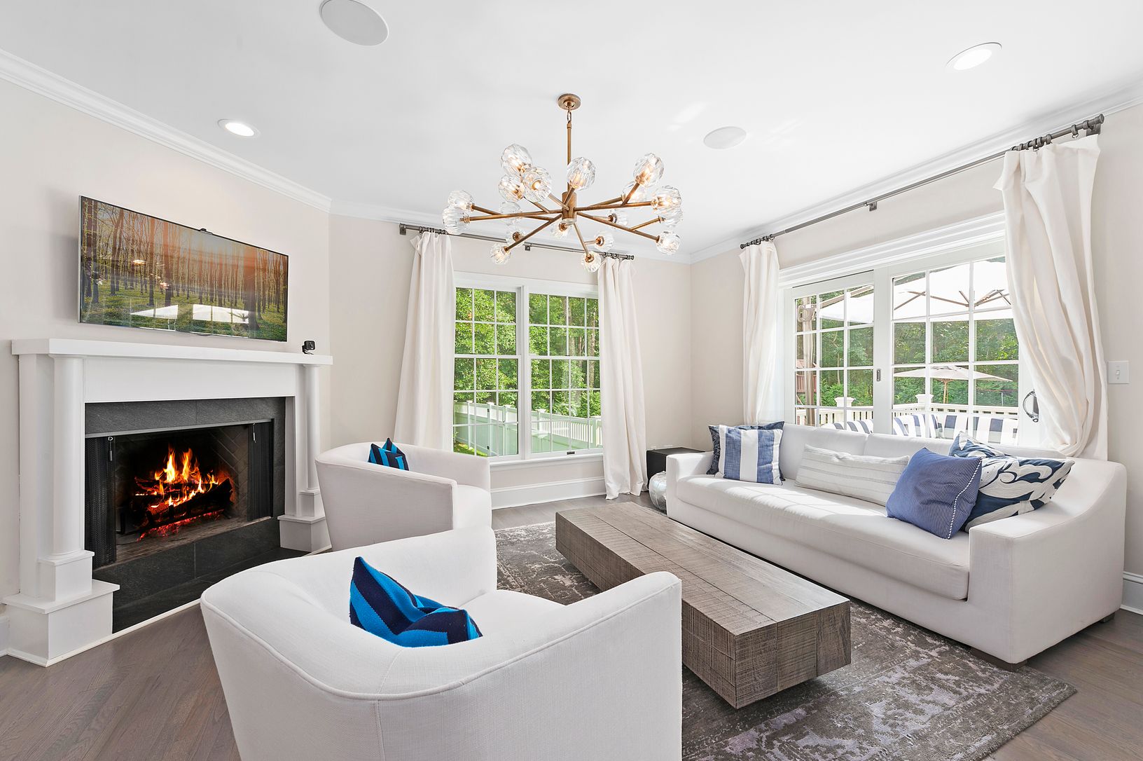 Fully renovated in 2018, this charming traditional has it all. The beautiful approach is evident as soon as you pull around the horse shoe driveway to the wrap around front porch. The timeless layout once inside the house is clear; the foyer opens to views of multiple living spaces and the kitchen beyond to the pool The cozy separate living spaces surround the kitchen; a formal dining room, two fireplaces separating a den and living room.