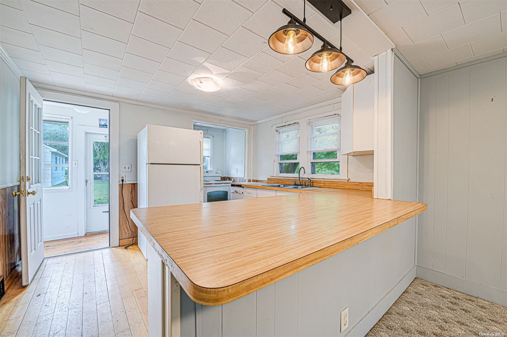 Hilltop water views and an irresistible price point make this 2 bedroom home the ideal Hamptons starter home or potential rental income producing property. Featuring a rare detached oversized garage, this property also enjoys ideal proximity to bay beaches, marinas and popular waterfront restaurants all within one mile. Eastern facing, this property enjoys wonderful morning sun ideal for enjoying coffee on a spacious back deck overlooking Shin