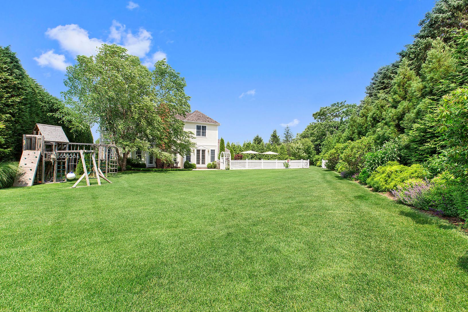 At the end of a private lane in the coveted Wickapogue section of Southampton Village lies an immaculate property with a mini-estate like house, heated gunite pool on half acre for your exclusive enjoyment. Hear the ocean waves and walk or bike to the beaches or the village which is only a half mile away. The house has a central living room with a 20' ceiling and 10 foot ceilings throughout the rest of the first floor which includes a large