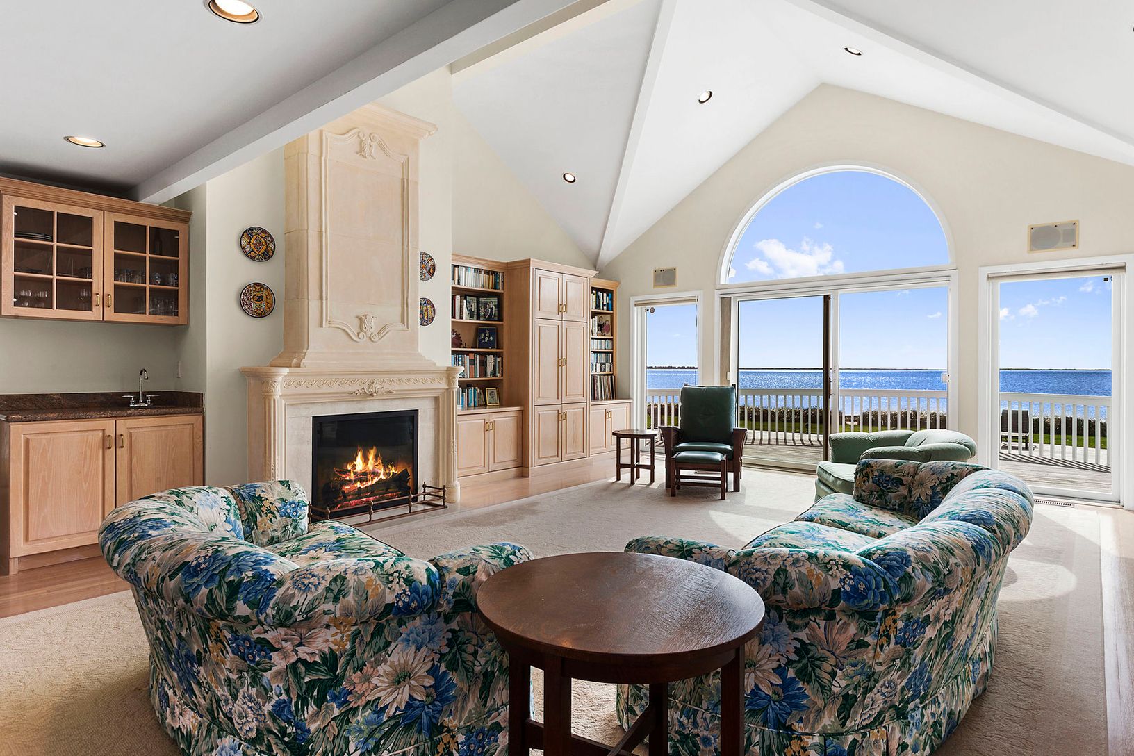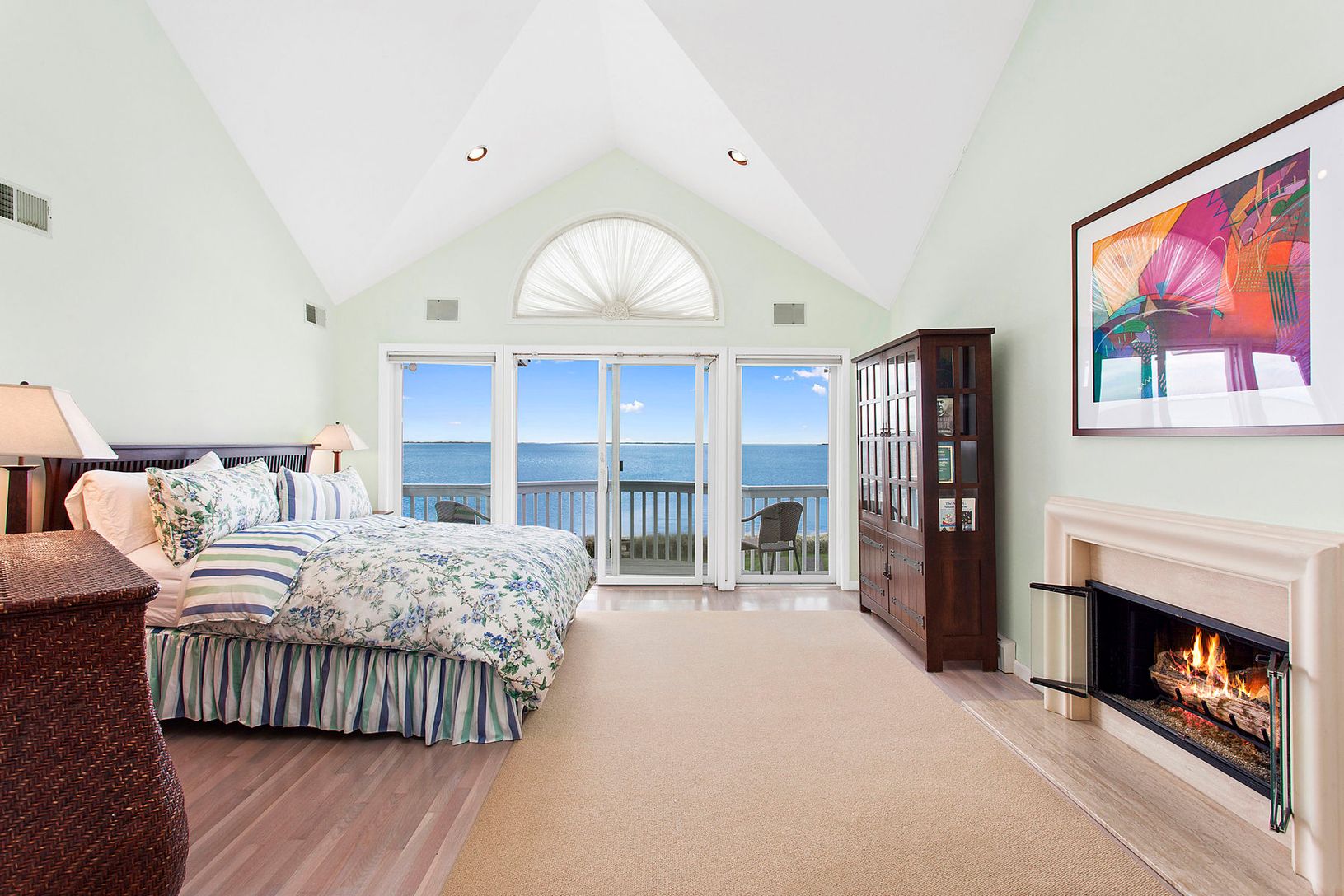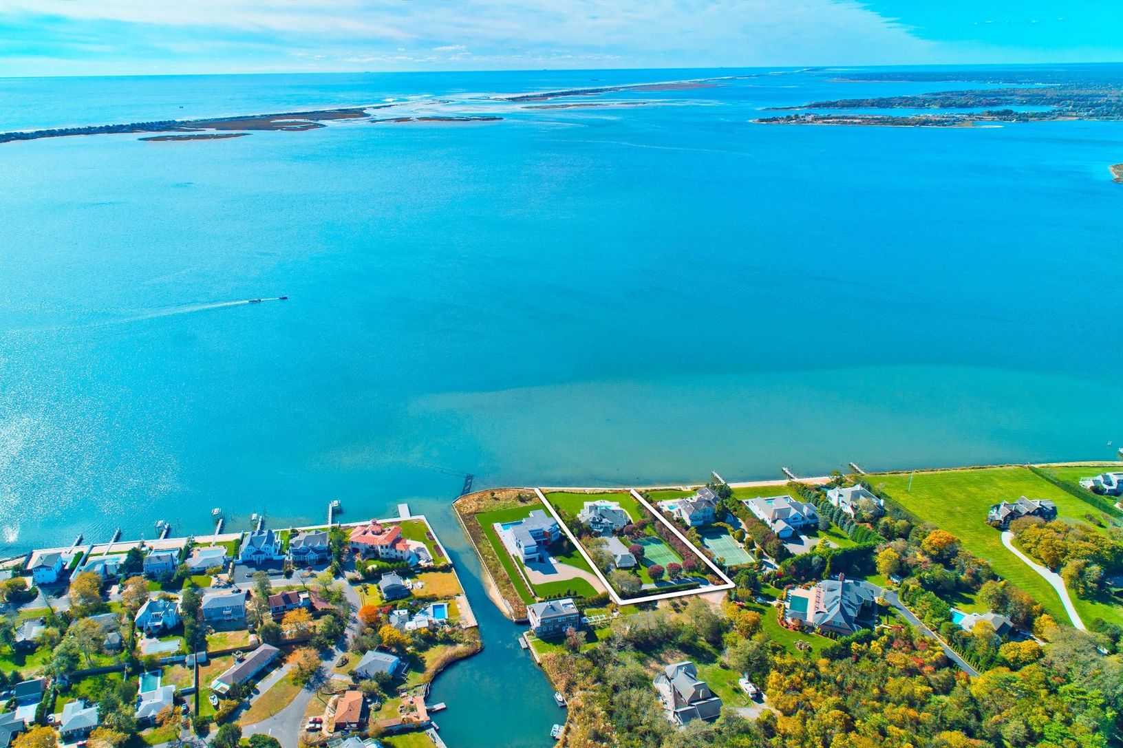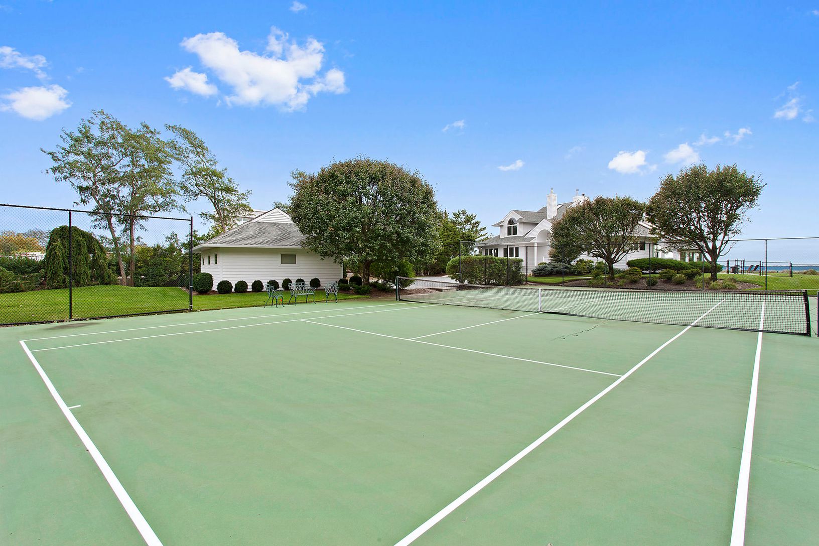 Wonderful contemporary perfectly placed to maximize the amazing waterfront views... This Bayfront home offers a large chef's kitchen, breakfast sun room, dining area, light filled living room with soaring ceilings and fireplace, master suite with fireplace and sitting area, plus three additional bedrooms and two and one half baths. Complete with rolling lawns down to the bulk heading, a gunite pool, Har Tru tennis court, full cabana bath and