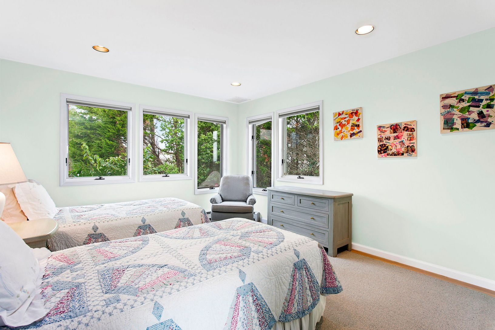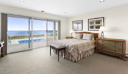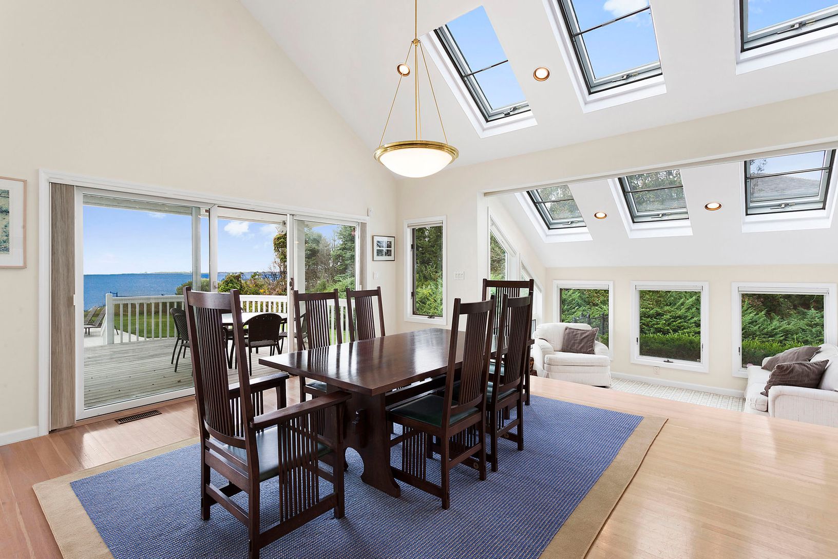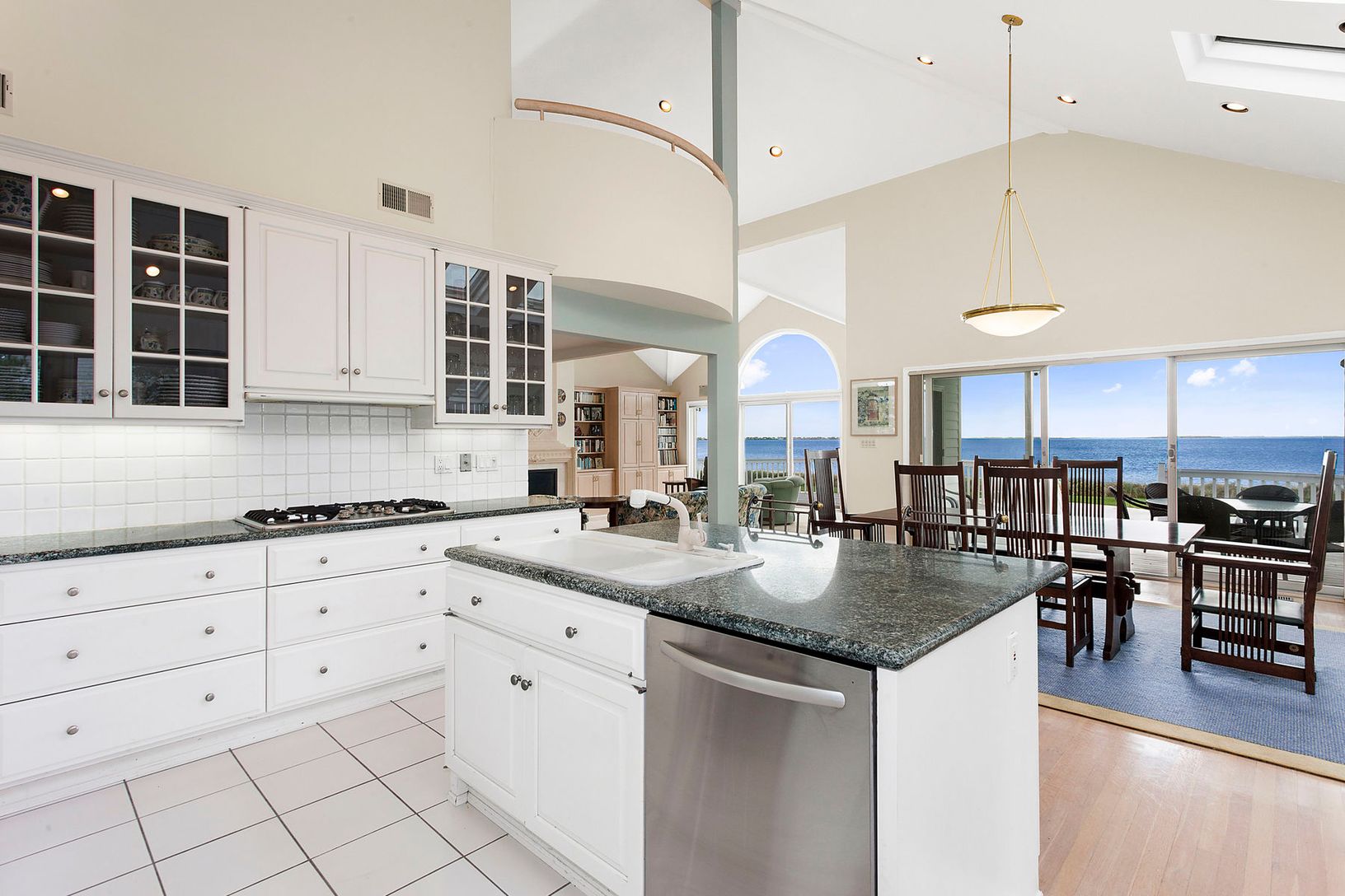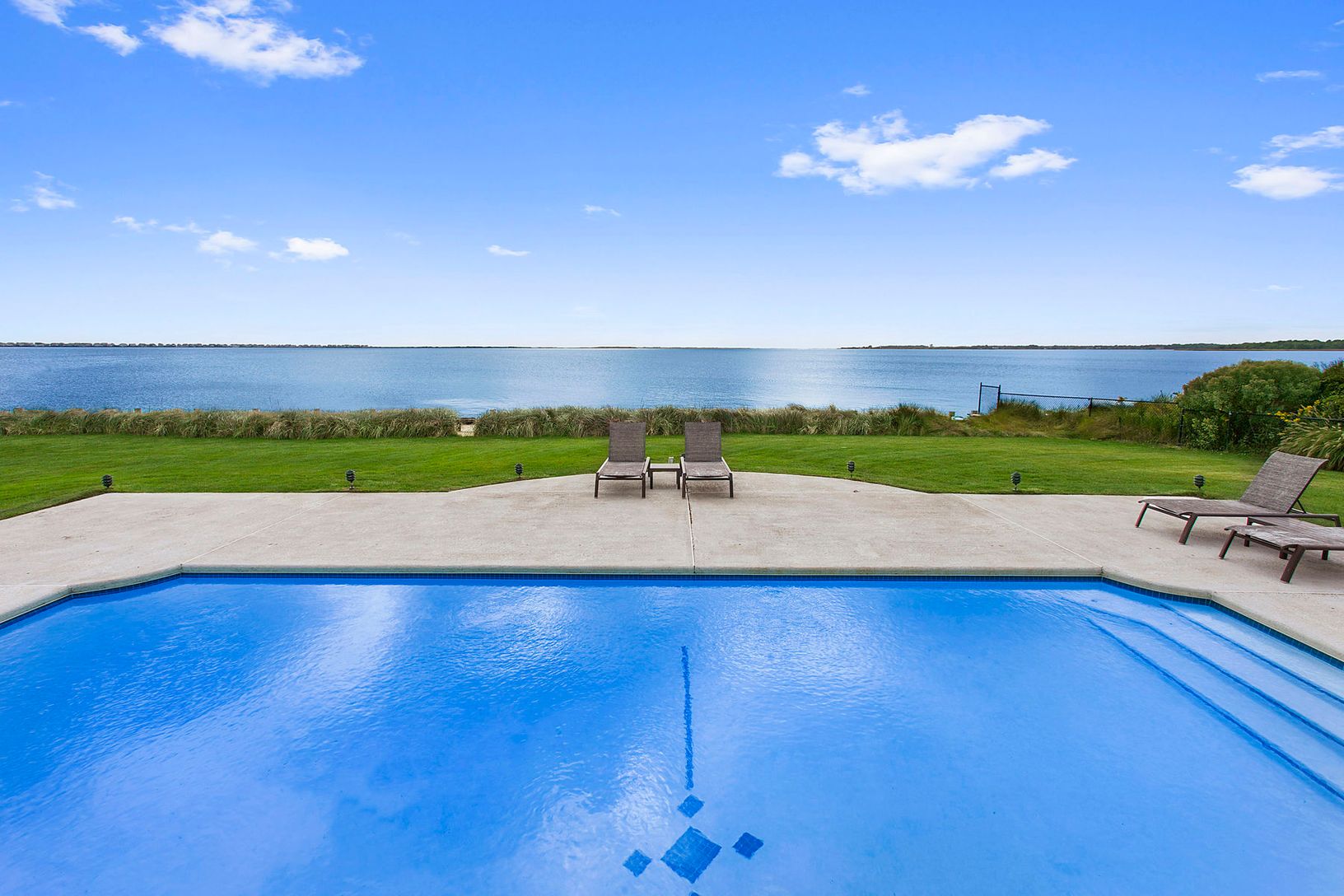 Wonderful contemporary perfectly placed to maximize the amazing waterfront views... This Bayfront home offers a large chef's kitchen, breakfast sun room, dining area, light filled living room with soaring ceilings and fireplace, master suite with fireplace and sitting area, plus three additional bedrooms and two and one half baths. Complete with rolling lawns down to the bulk heading, a gunite pool, Har Tru tennis court, full cabana bath and