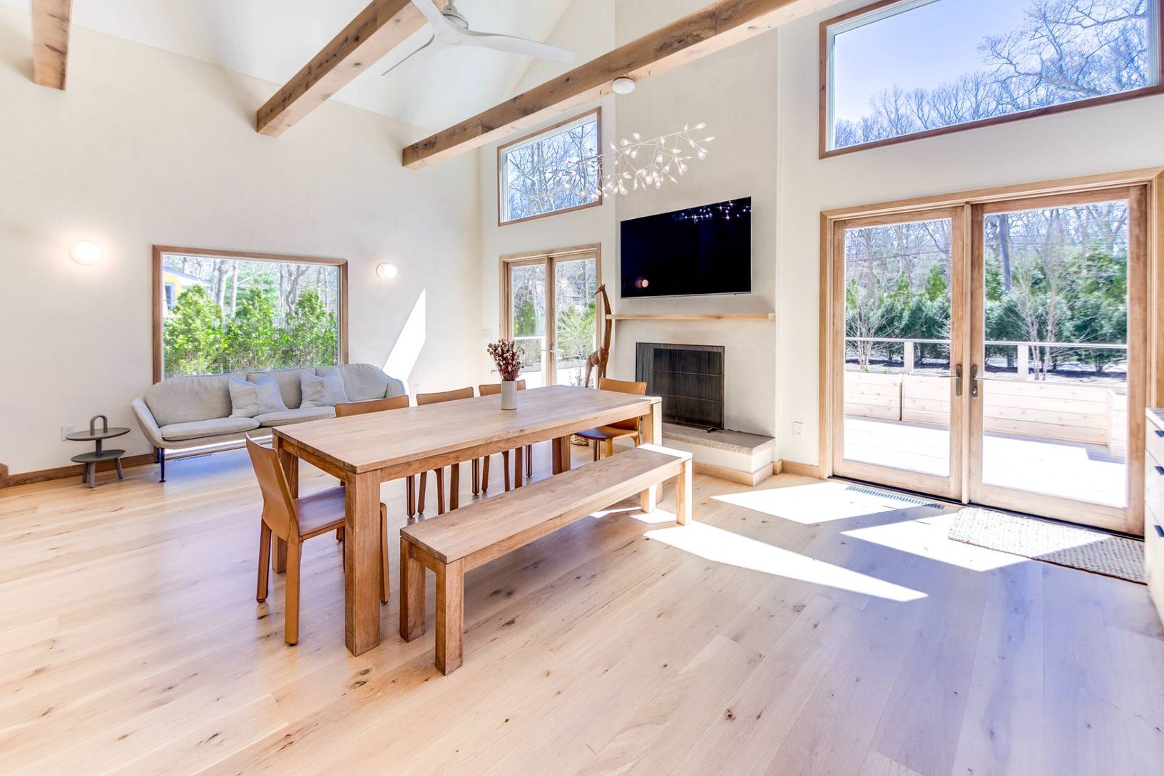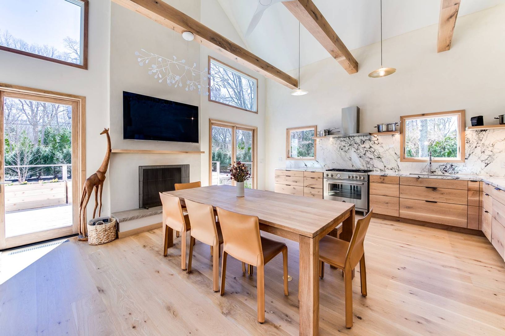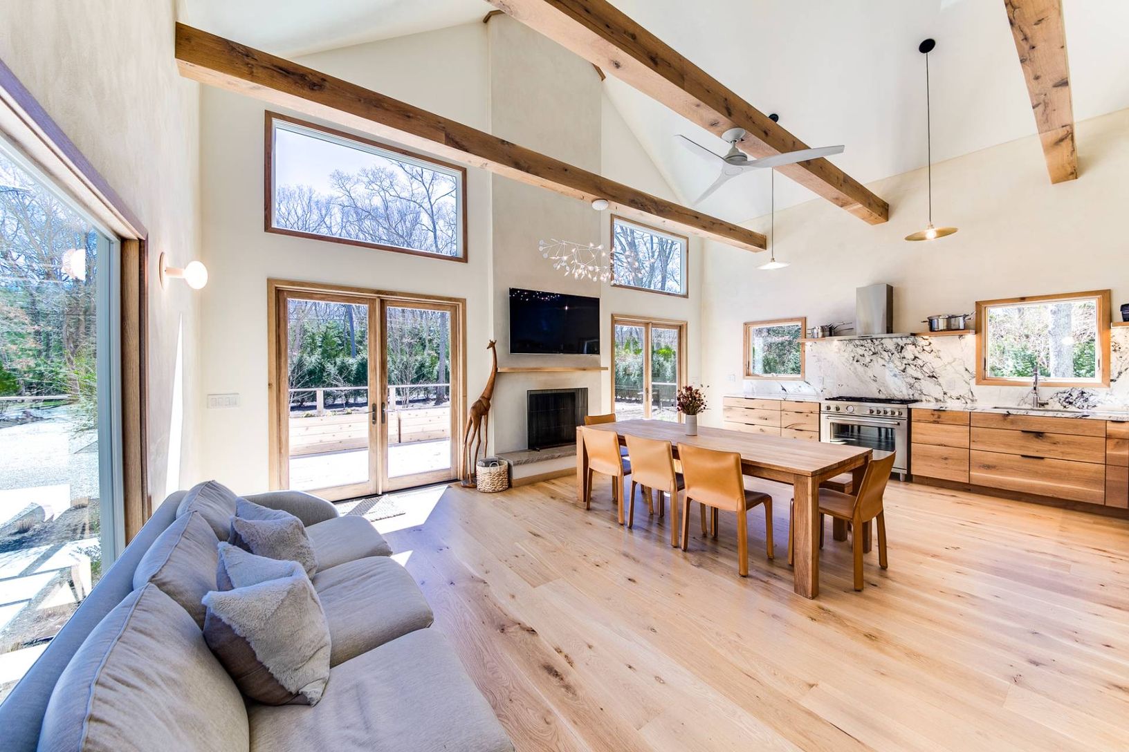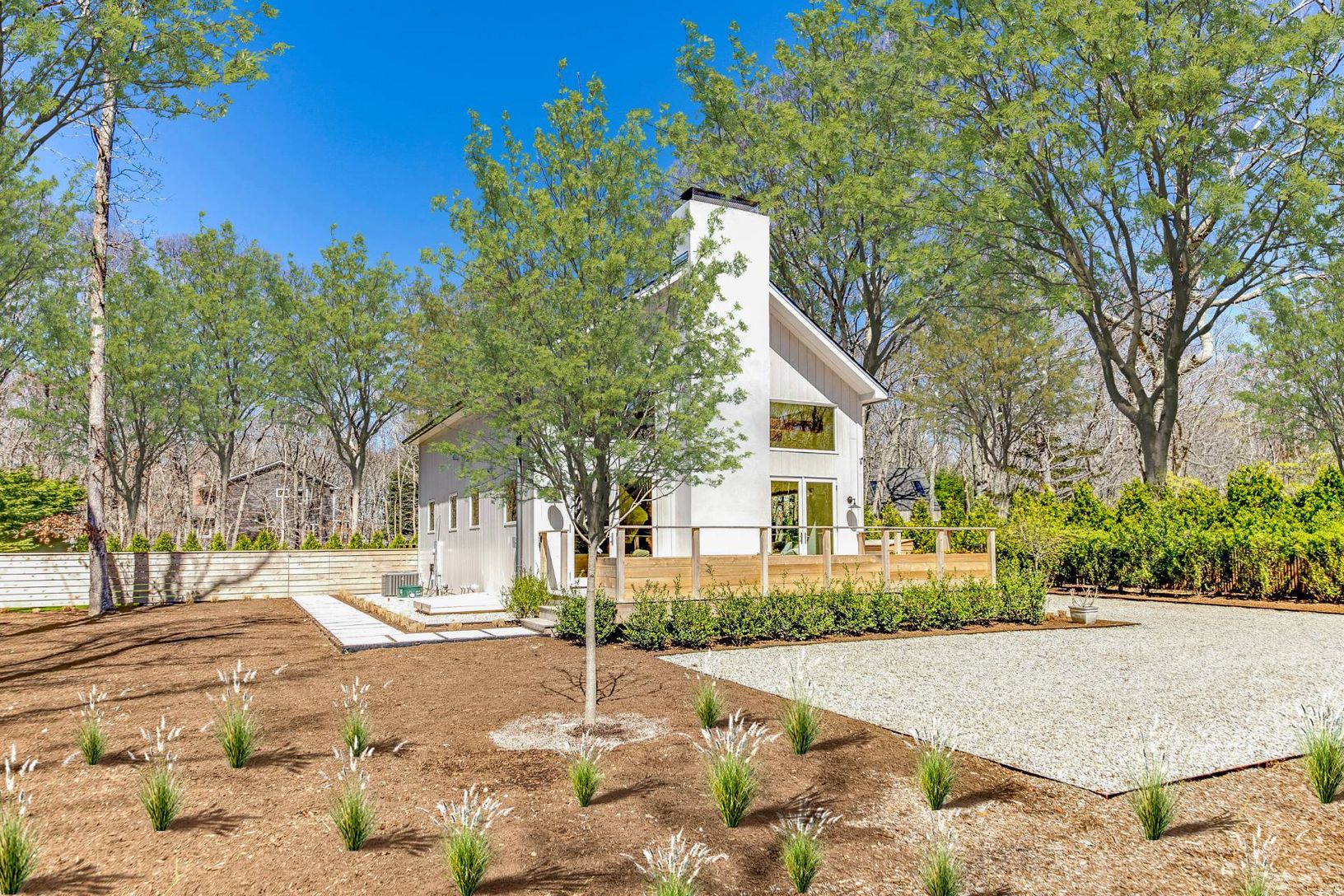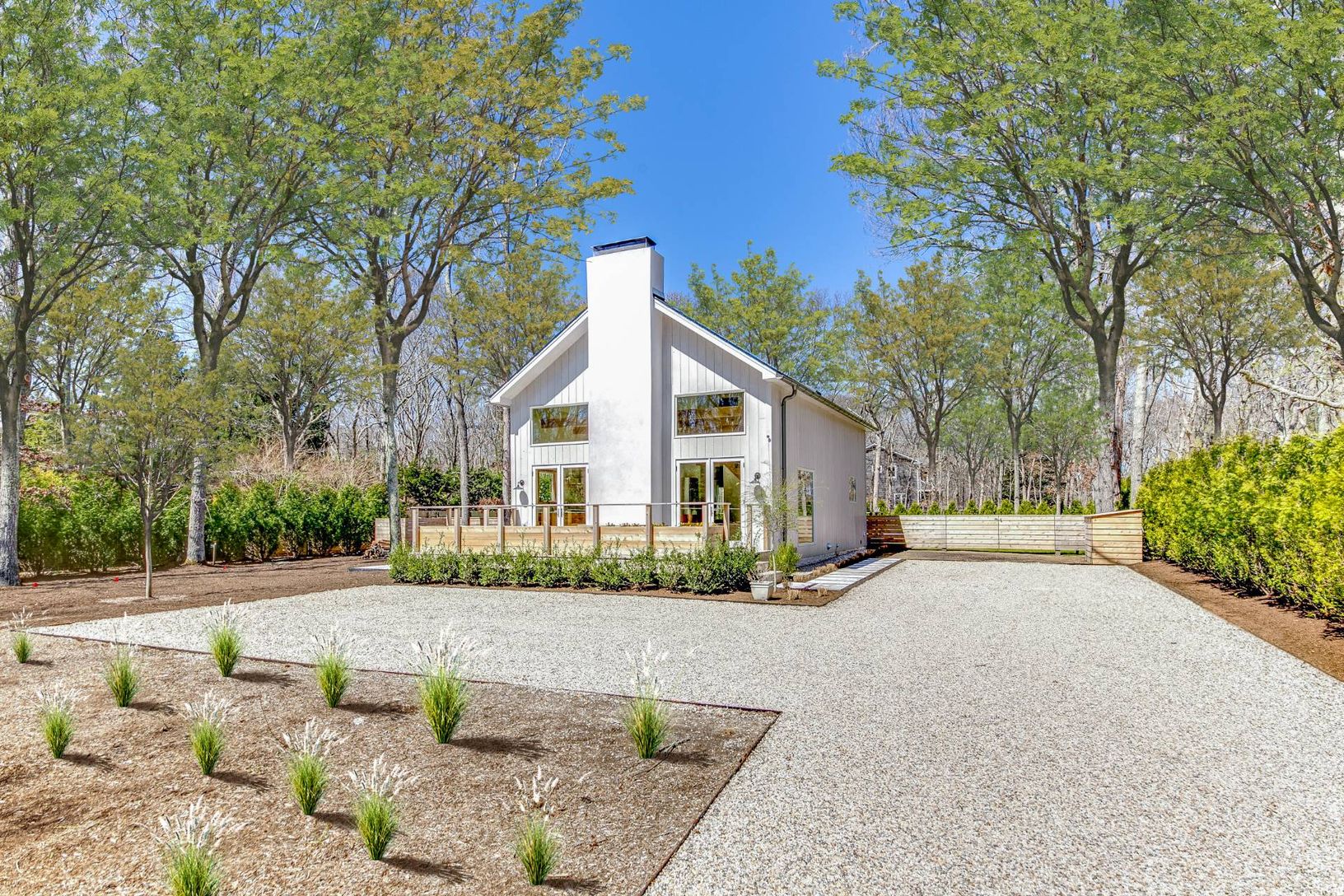 Discover the charm of Hamptons living in this stylish new construction home in the serene neighborhood of East Hampton's Springs. This newly built 3-bedroom, 2-bathroom home is nestled on a generous half-acre lot, perfectly configured for privacy and expansion possibilities, including a pool. The heart of the home is a grand great room with soaring ceilings, a cozy wood-burning fireplace, and luxurious 8-inch rustic white oak flooring that add