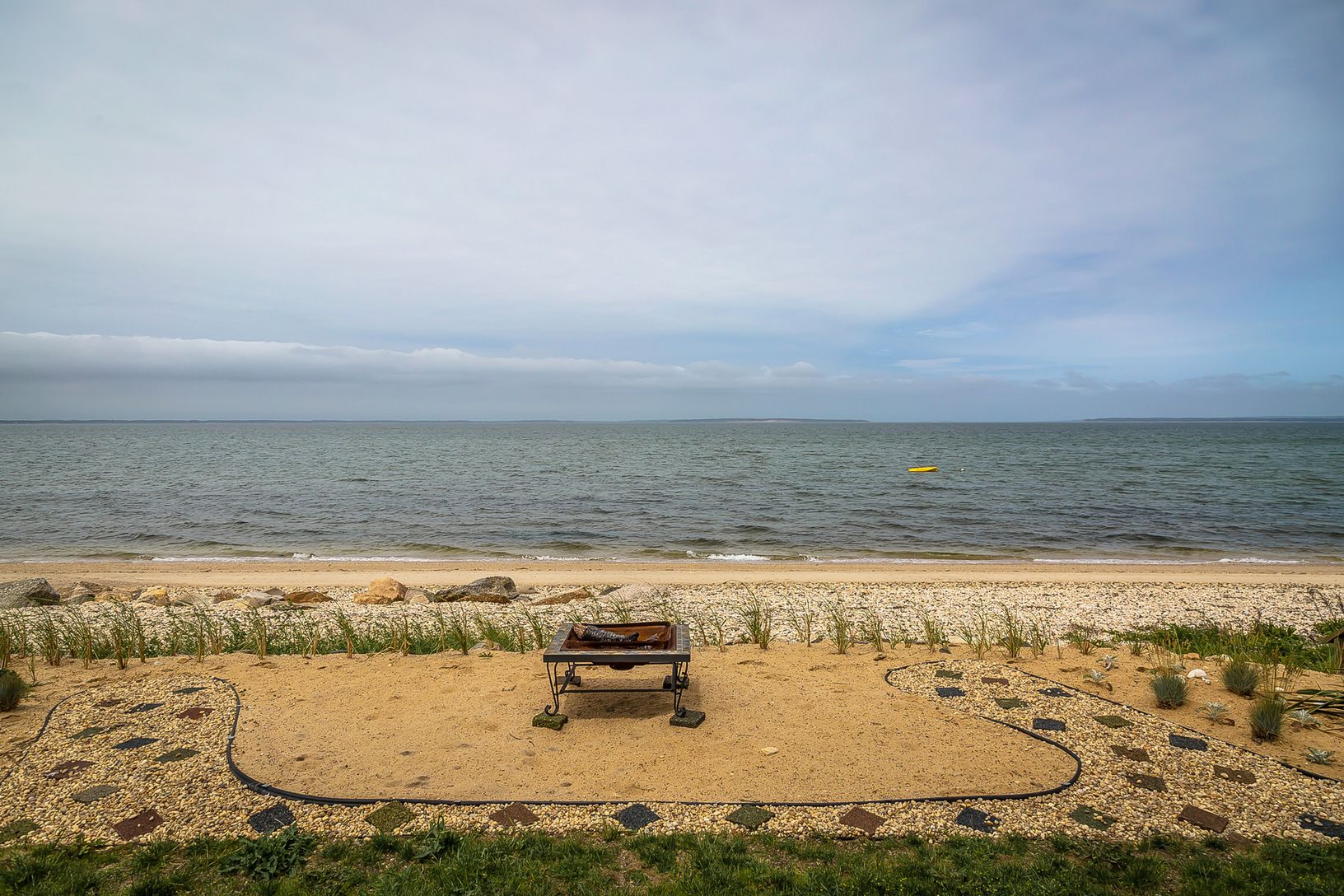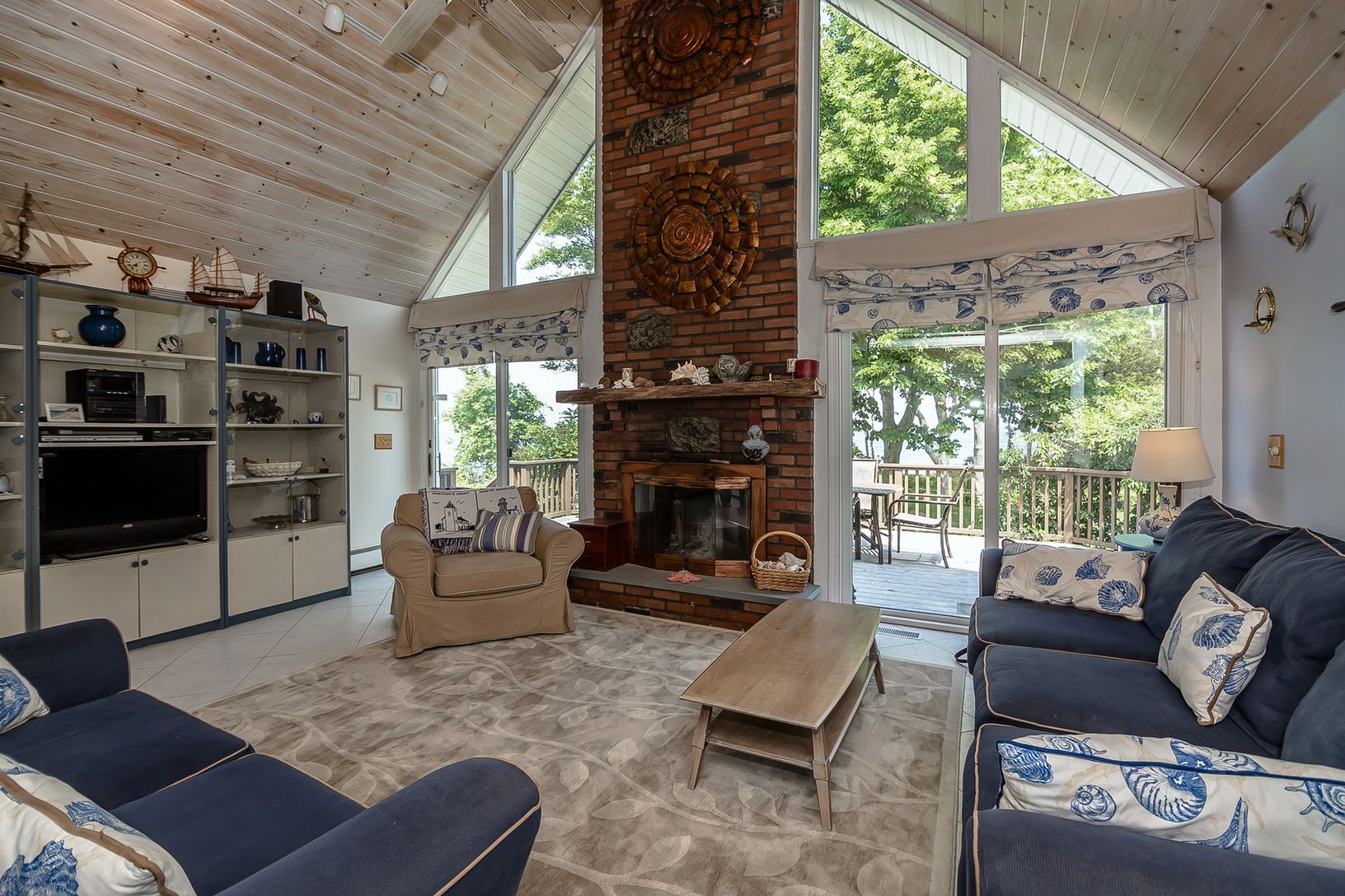Fronting 130 feet on the open bay....surrounded by pond, preserves and bay-beach waters, enjoy this meticulously maintained 3 bedroom, 2 bath residence with loft/den, balcony and basement . Amenities include soaring cathedral ceilings, wood-burning fireplace, walls of glass, two zone central air, master suite with teak flooring and jacuzzi. Outdoors find Trex decking, lush landscaping and 240 degree water views. Offered for sale.