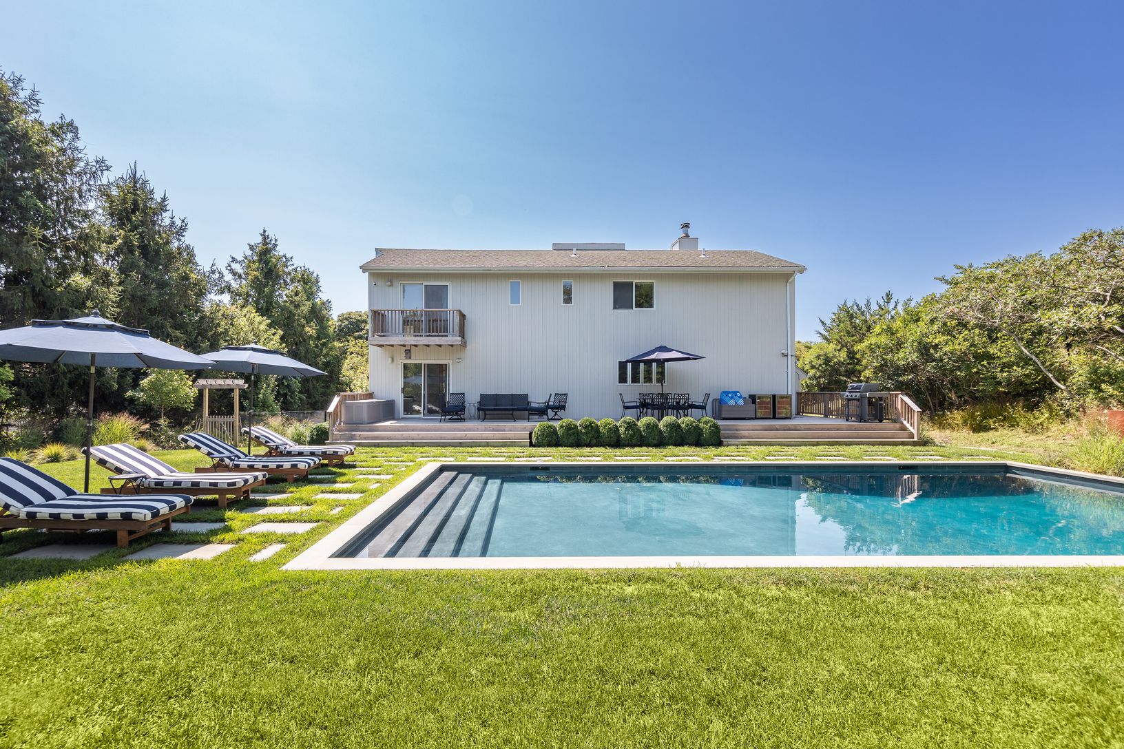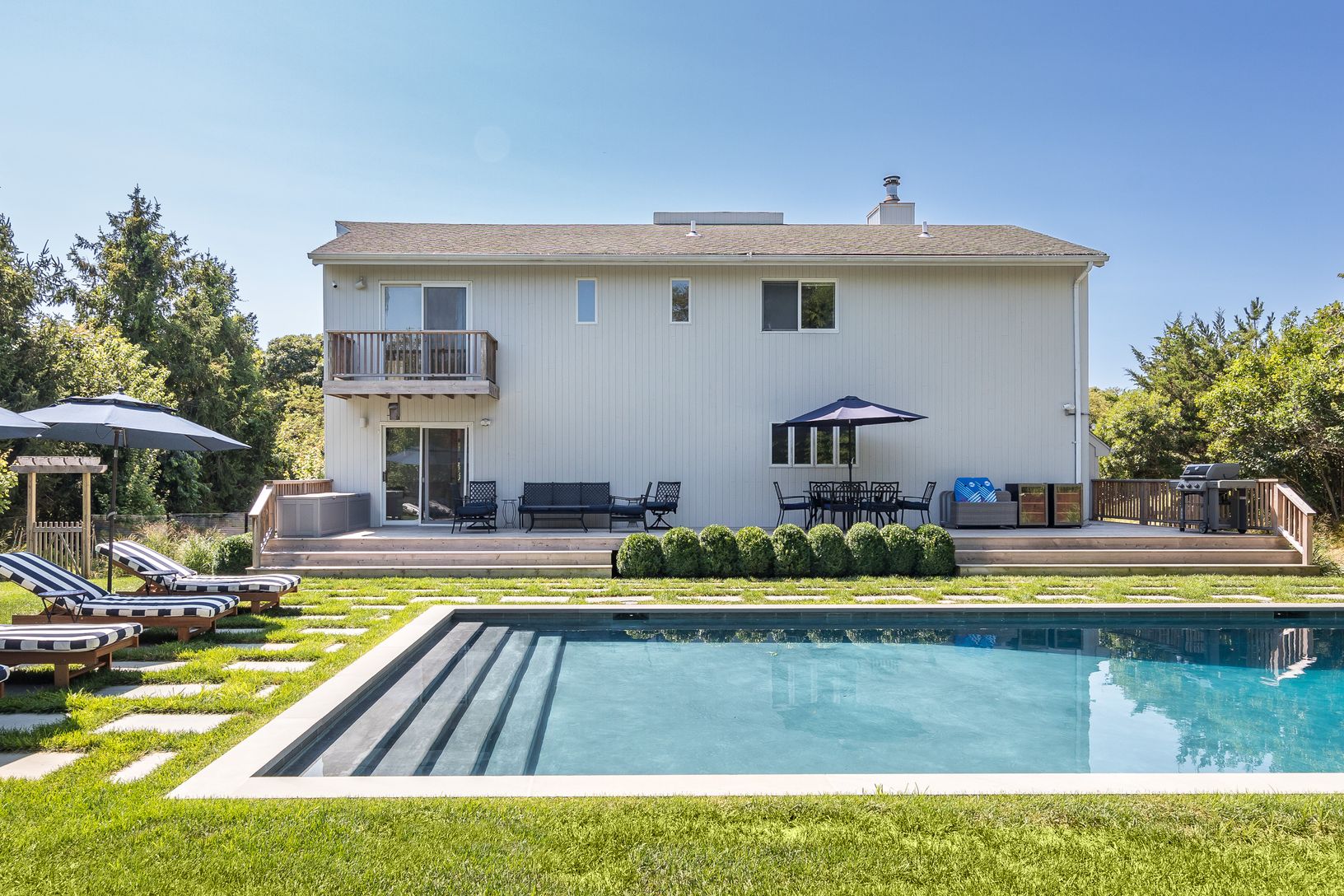 Summer sunlight afternoons await at his 4 bedroom 3 bath contemporary home situated on modern ornamental grasses and patina steel landscaped shy 1/2 acre property with gunite heated pool with expansive decks and blue stone in grass surround. Featuring vaulted sunlight living room, granite kitchen, office nook, den, cedar decks, ample parking, large 2 car garage, partial basement spaces, oil heat , central air-conditioning all on a cul-de-sac