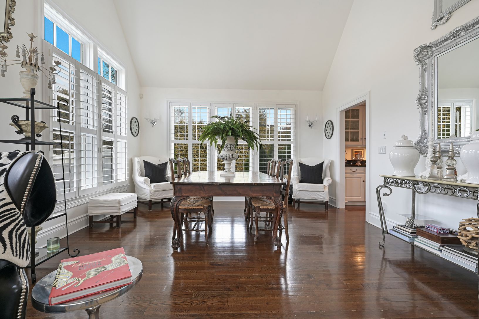 Classic Hamptons style abounds in this beautiful Water Mill 5 bedroom home sited on lush 1.4 acres convenient to everything the Hamptons has to offer. The front entry foyer opens to the gorgeous living room with a direct view of the heated Gunite pool and the private property beyond. This main room of this spacious home encompasses a comfortable seating area with a fireplace and opens to the stunning kitchen designed with a central dining isla