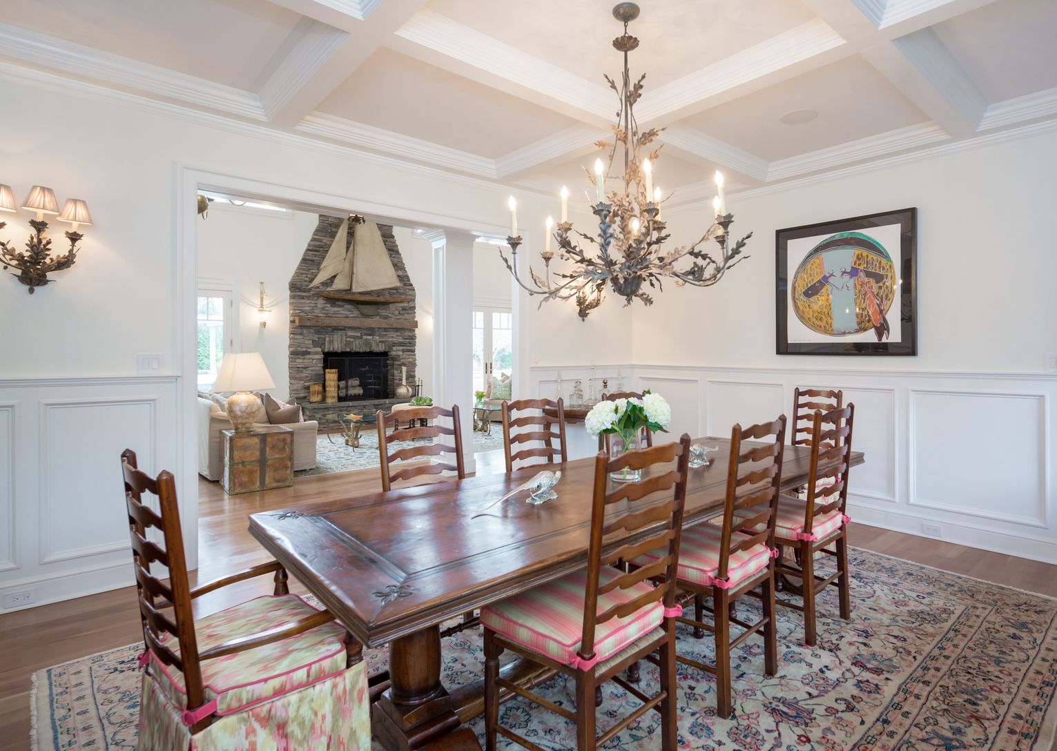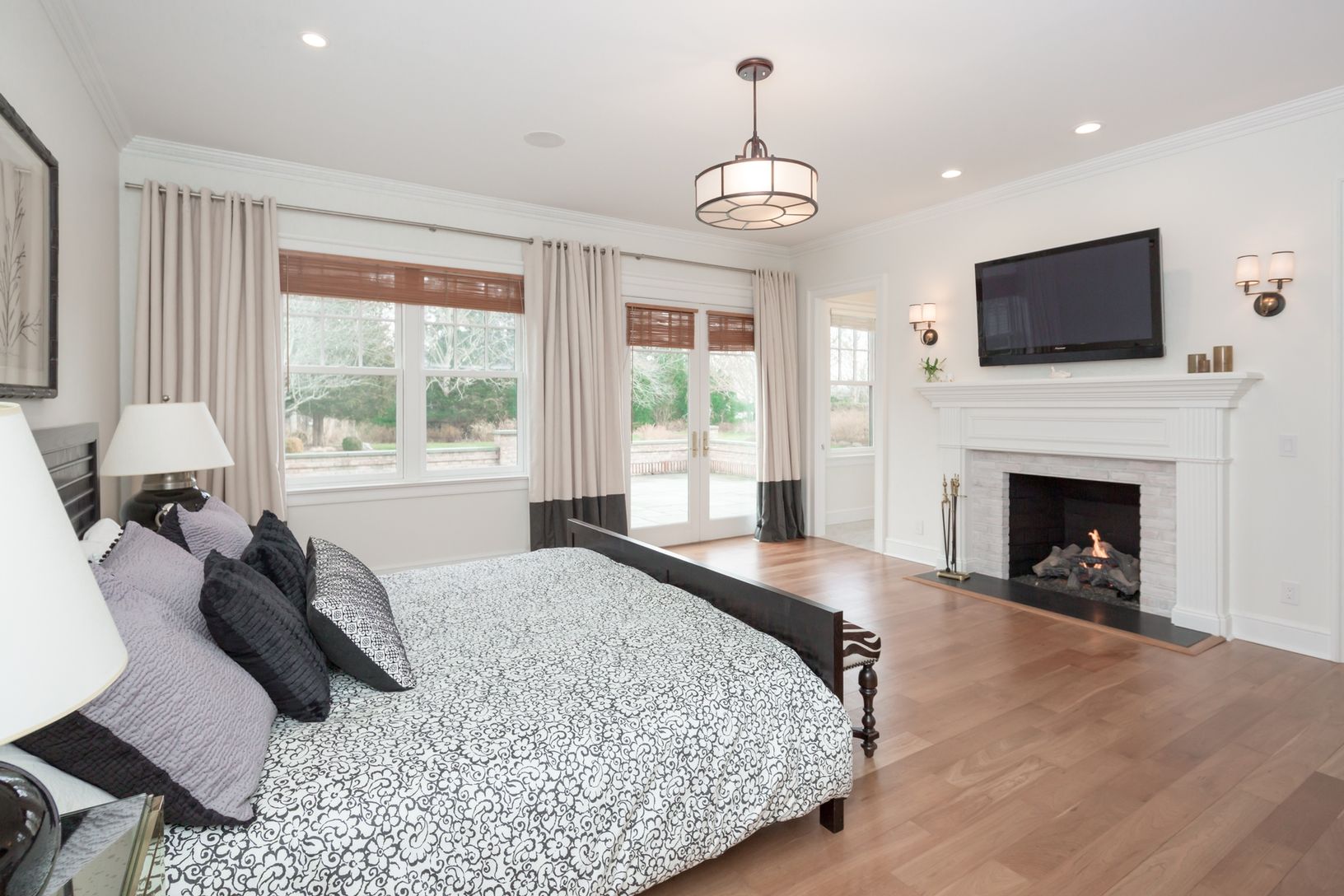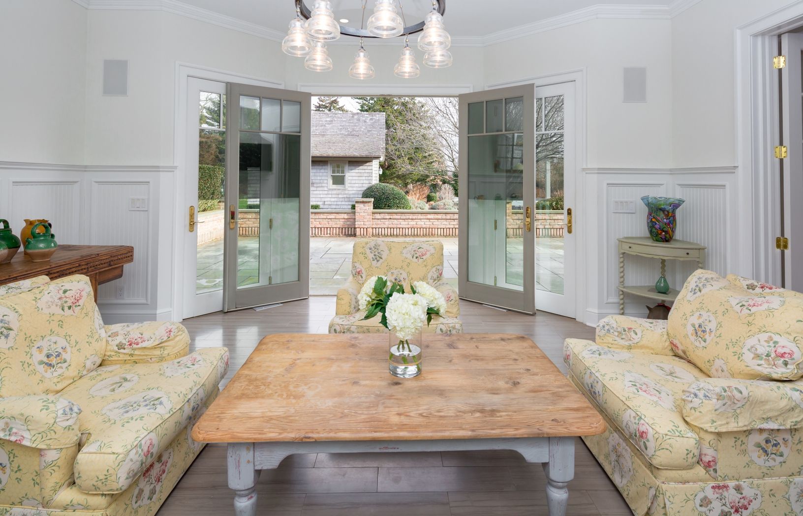 In a rarefied location off Further Lane less than a mile to both the beach and town, this recently renovated, 6 bedroom, 8,000+/- square foot traditional offers enviable indoor-outdoor flow with a wall of French doors leading to an expansive bluestone terrace with outdoor fireplace, 60' heated, gunite pool, spa with waterfall element, pool house, and verdant gardens on 1.5 acres. The home centers on the soaring great room with Cherry Oak hardw