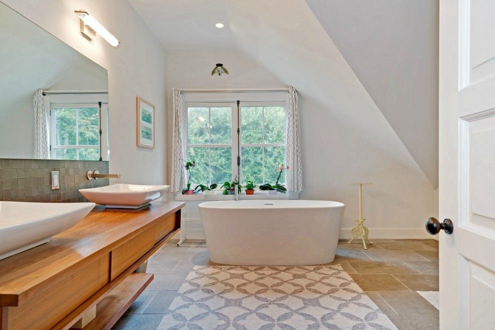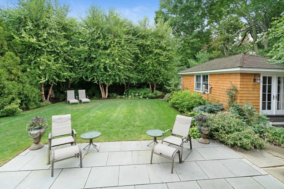 18 Glover Street is an almost-new home in the heart of Sag Harbor. Steps to main street, the 3-bedroom, 3-bath home with detached garage/studio is filled with day-long sun. Built with a modern sensibility, the heart of the home is the kitchen, which has granite counters, stainless appliances, sitting area with fireplace, and doors that open out to the pretty back yard. Also on the first floor is a spacious living room with fireplace, and a bed