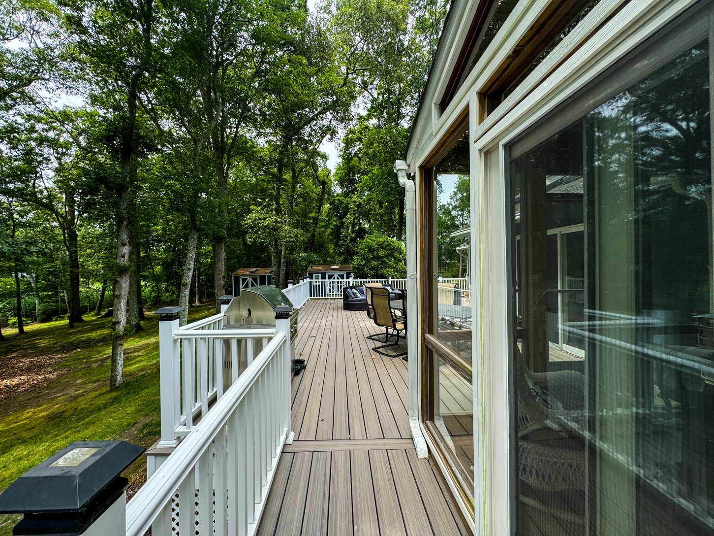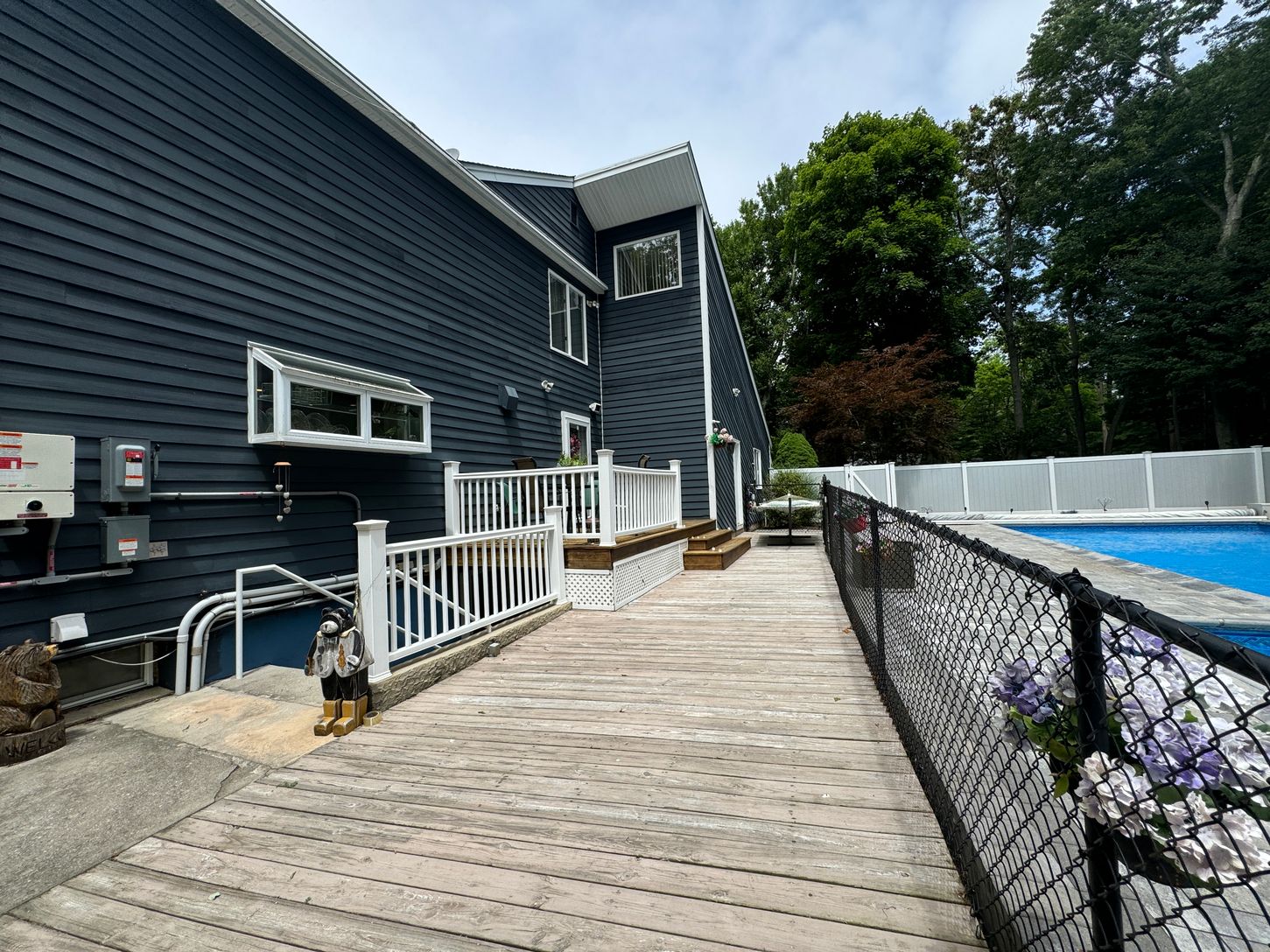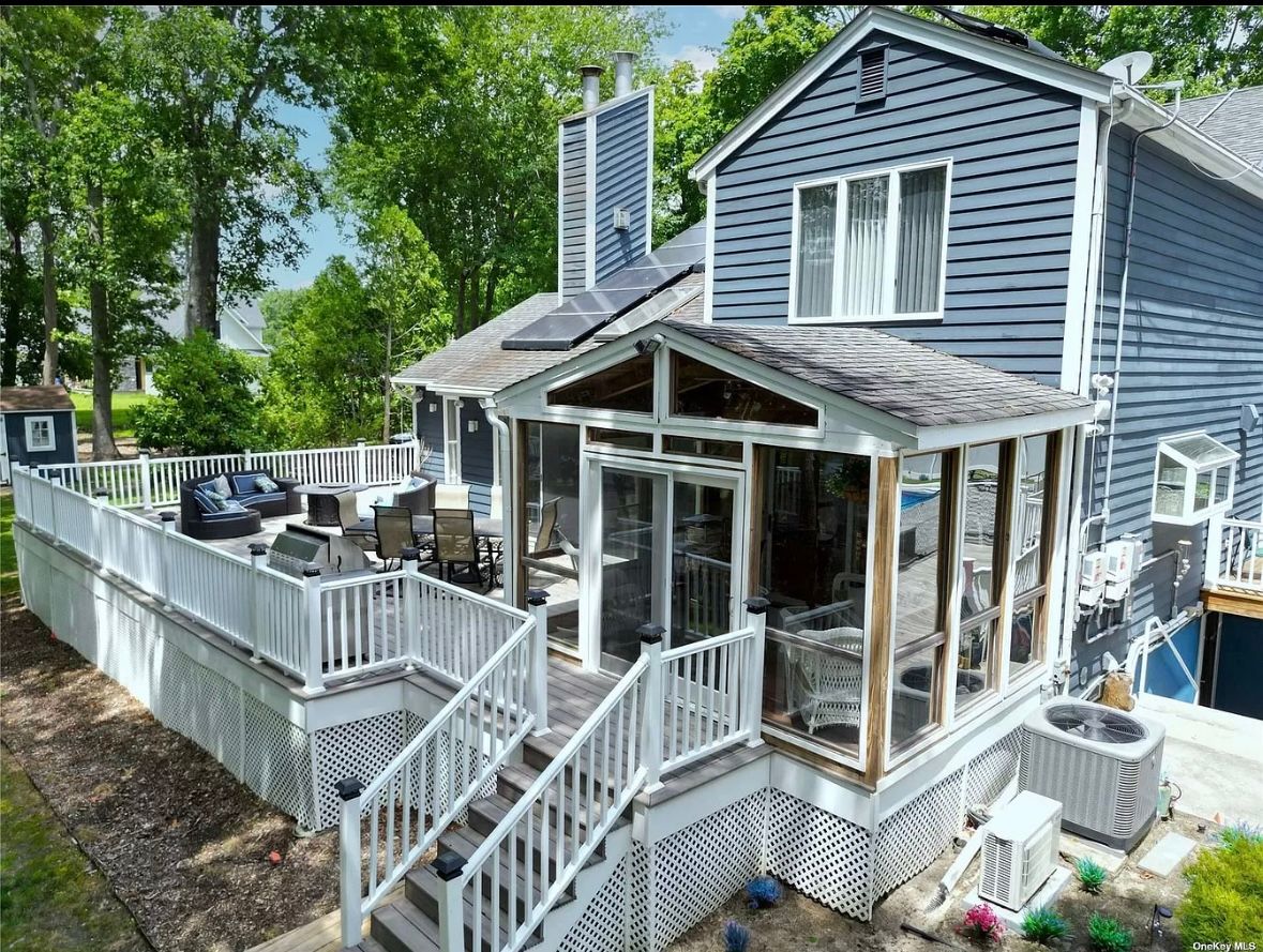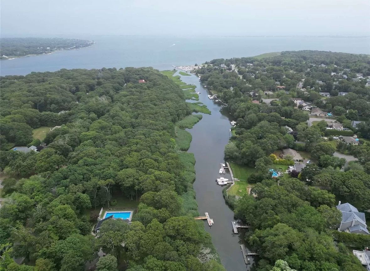 Motivated Sellers Excepting All Offers. Contemporary luxury awaits in this stunning home in Baywoods, on 1.85 acres. The first-floor primary bedroom offers unparalleled convenience, while stainless steel commercial appliances elevate the gourmet kitchen. Enjoy waterfront living with a 20ft floating dock on a large canal, complemented by an oversized inground pool and pond. Entertain in style in the three-season room or finished basement. This