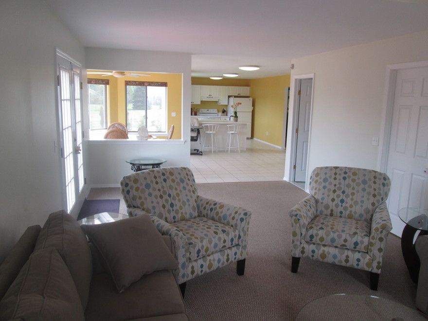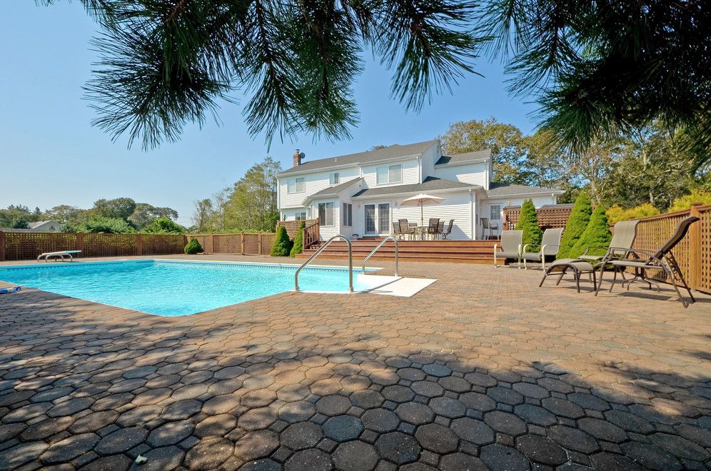 South of the highway! Priced to sell! A meticulous home with new interior painting, spacious open floor plan, large master suite, separate living and dining rooms, eat-in kitchen, spacious kitchen, three additional large bedrooms, and a two-car garage. The outside is lined with an acre of property, lined with specimen trees, large outdoor pool and decking for entertaining. This charming home year round or as a summer retreat has access to West