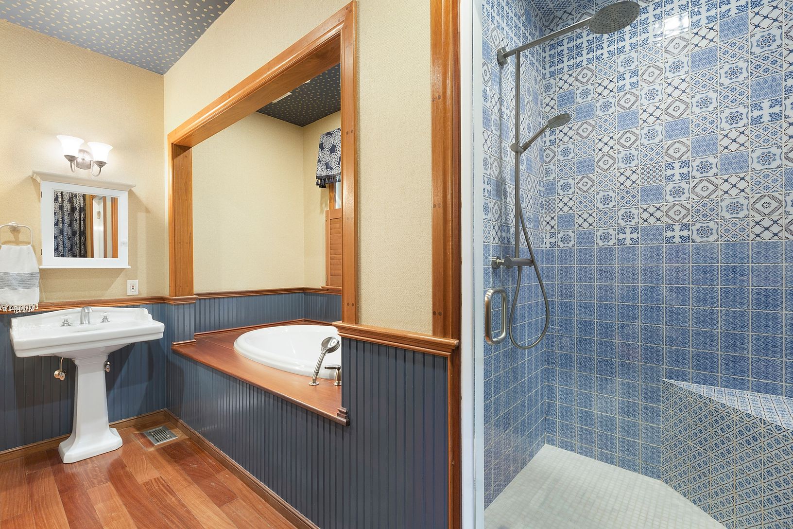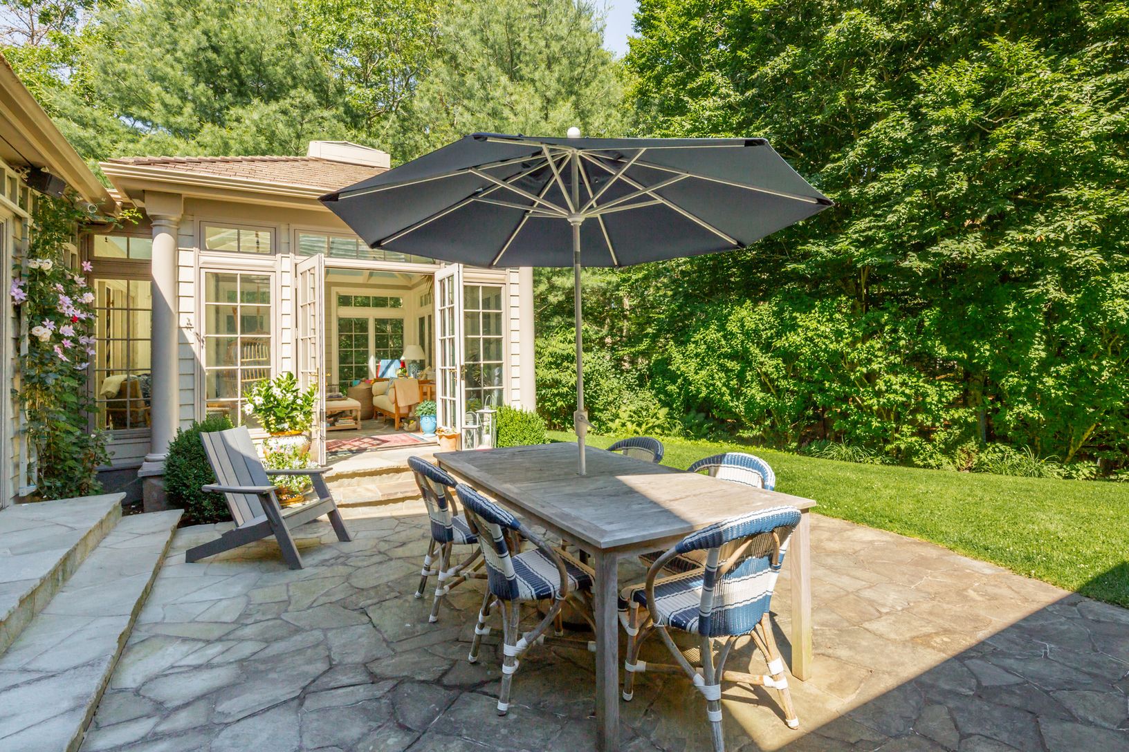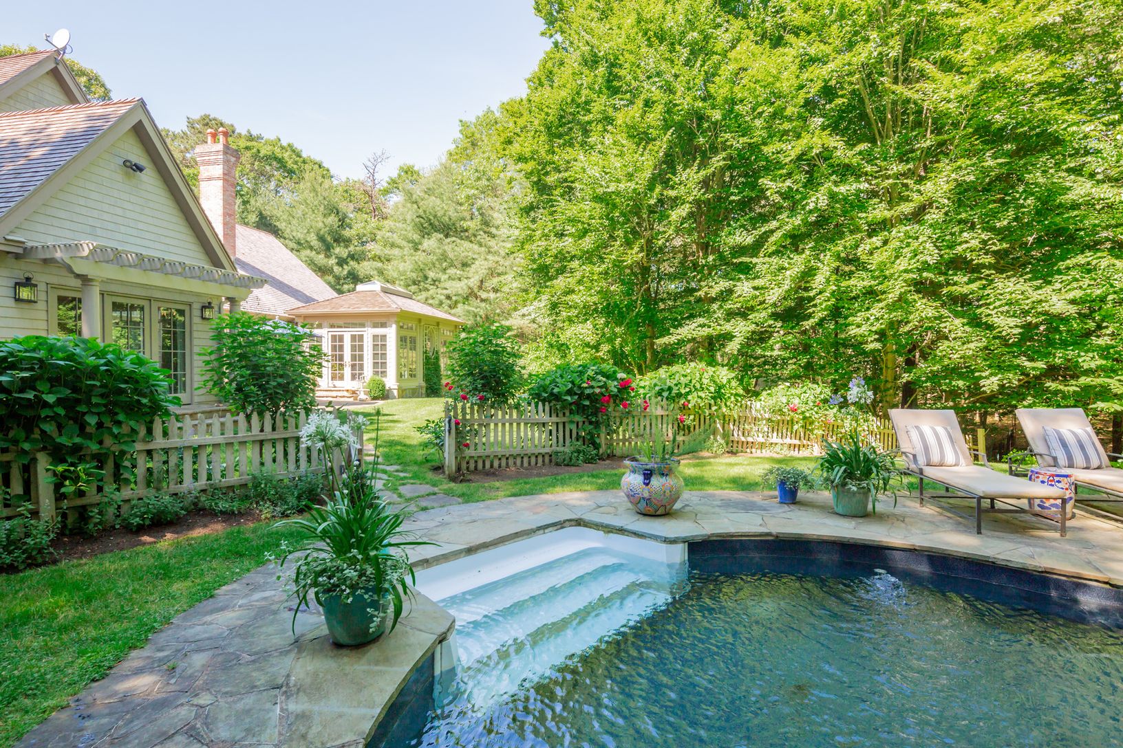 Enjoy a traditional home, exceptionally built for modern living. Approximately 3,300 square feet of newly renovated open layout living space. Spacious entry leading to an open, light filled double height ceiling living room flowing into the chef's kitchen and dining room. An office, a laundry room and a den/media room immediately off of the living area. French doors in every room lead you to bluestone patios, sweeping lawn and heated pool for