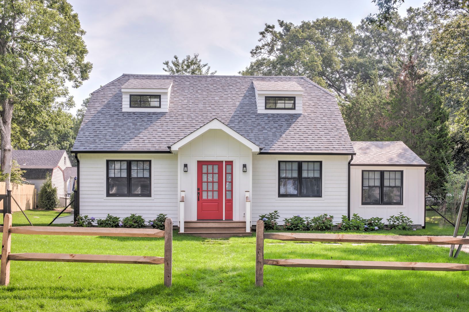 Perfectly renovated, three bedroom, two and one half bath home in Pine Neck beach community. Entrance leads into the dining room with double height shiplap ceiling. Open kitchen with custom cabinetry, stainless appliances, marble counter and backsplash. Two bedrooms on the first floor with custom built-in closets and shelving. First floor bedroom sliders lead out to an 800 sq. ft. mahogany deck, new heated salt water pool and manicured back y
