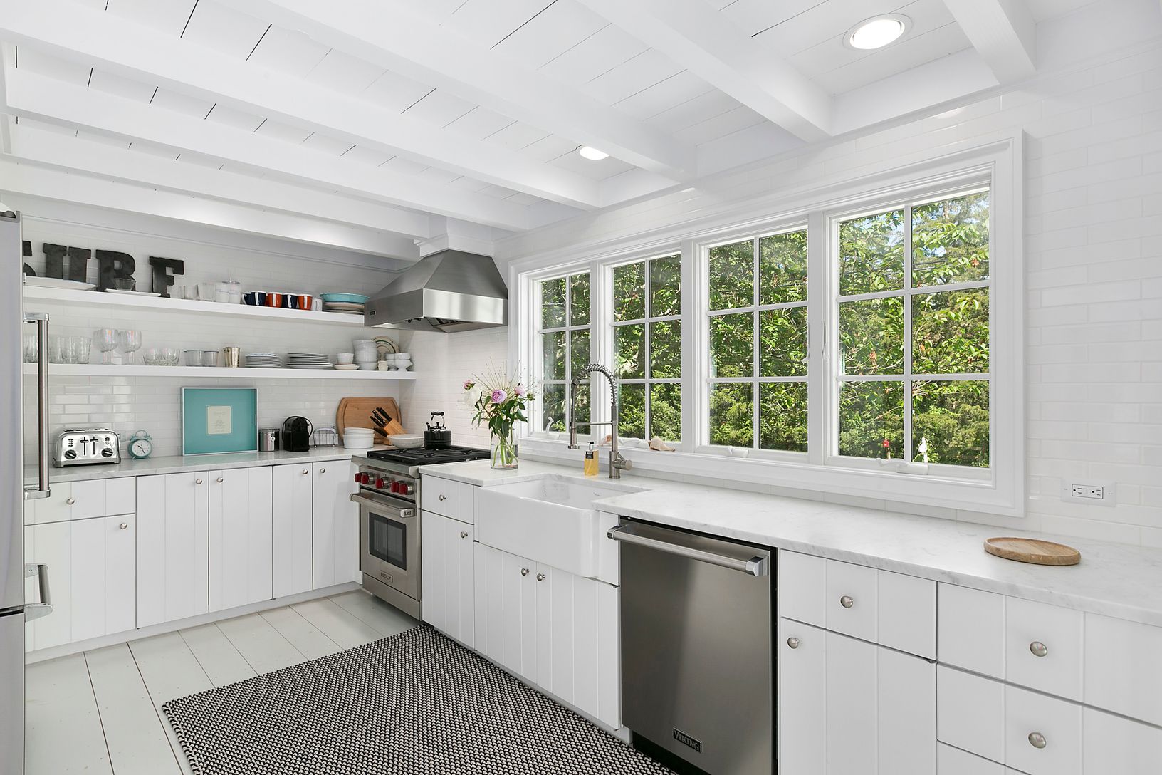 Situated in the highly desirable Redwood community of Sag Harbor Village, this fully restored and exceptionally renovated four bedroom, two bath cottage boasts authentic beamed ceilings and wide planked floors, which are restored to perfection. A sun drenched gourmet chefs' kitchen with marble counters is stocked with Wolff, Viking and Sub-zero appliances. The open living/dining area with wood burning fireplace spills out through hand crafte