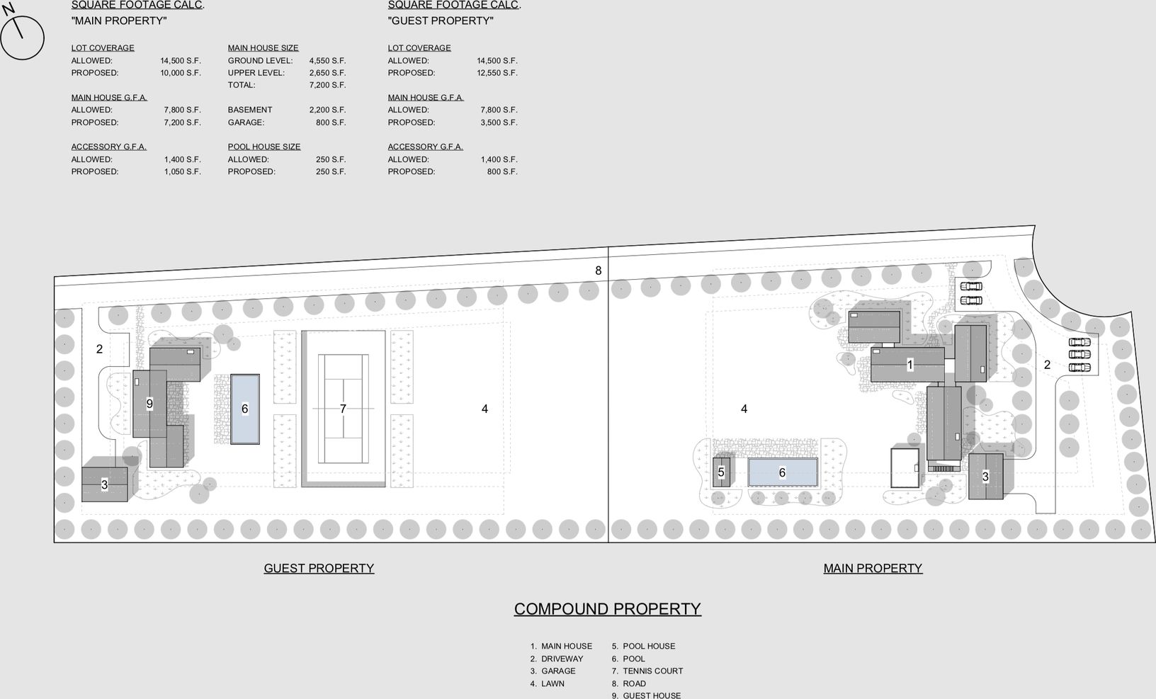 The full potential yield of the properties includes two principal 7,800 SF+/- homes, two 1,400 SF+/- accessory structures (above g