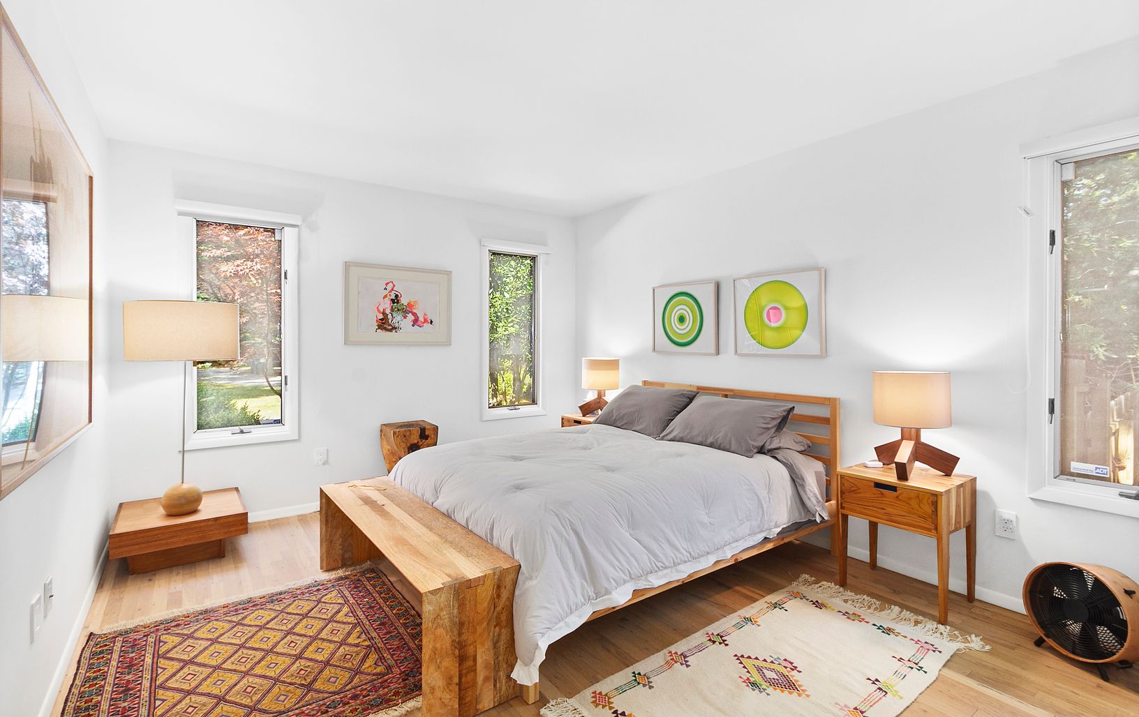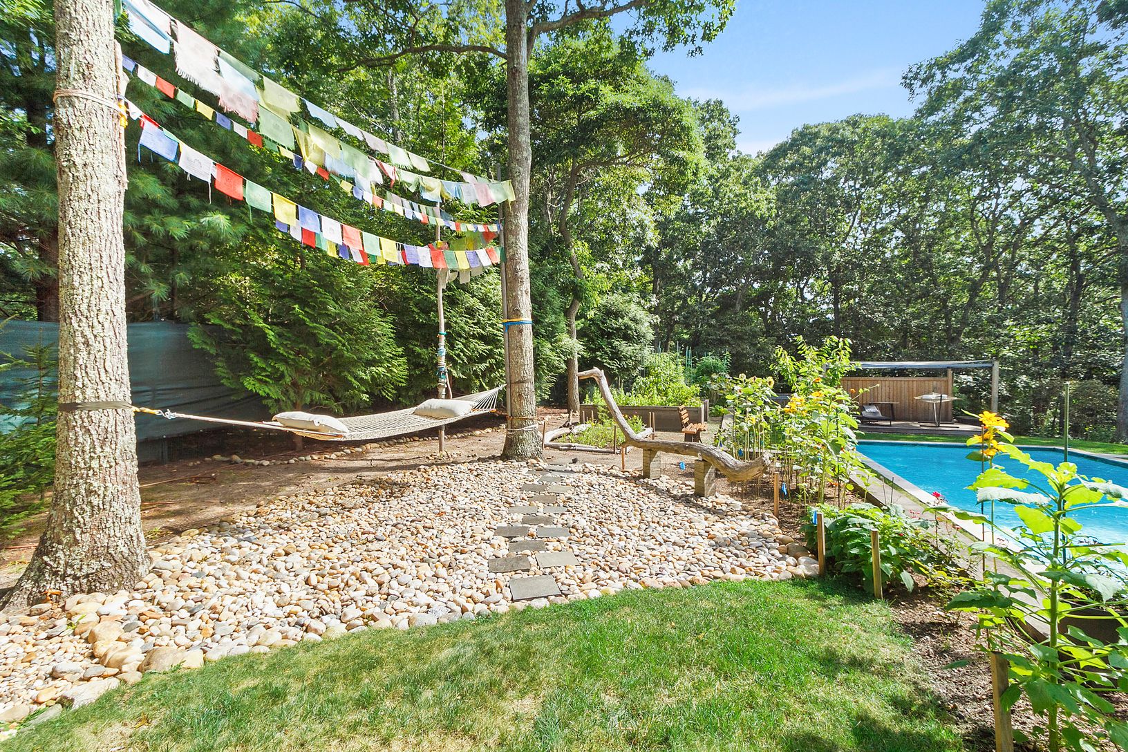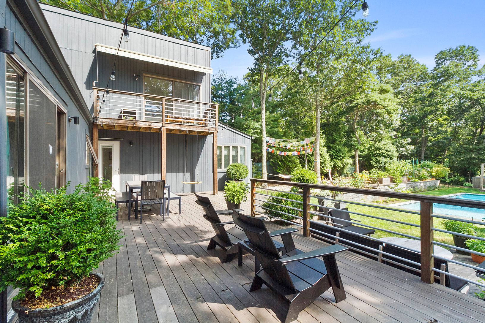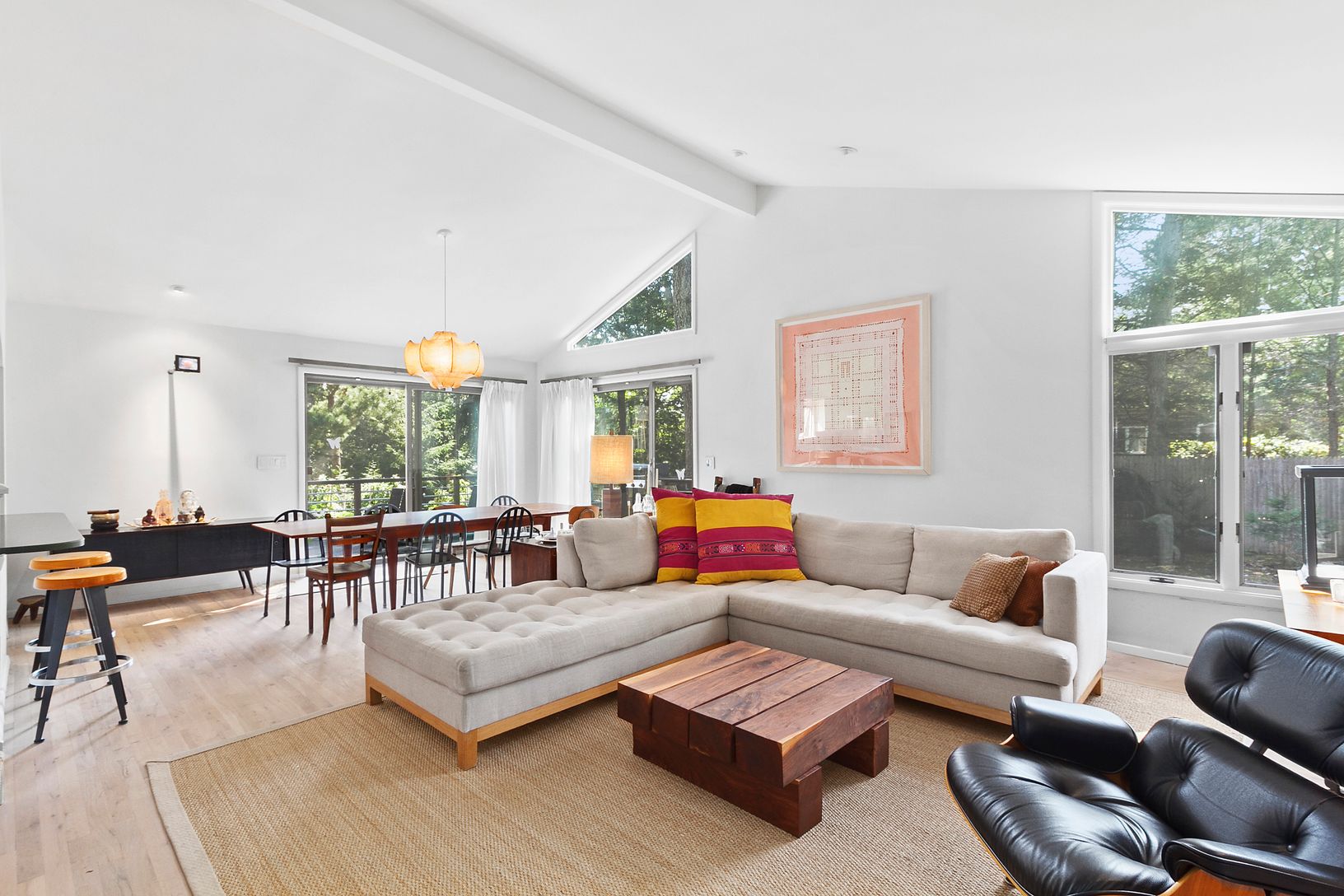 Scallop Avenue is located in a small harbor front community, one of the the most quiet in East Hampton. The .60 acre property has a private horseshoe shaped driveway with ample parking. Enter the home through the front porch to an open and bright living space. The double height living room is open to the kitchen and dining rooms and has a large fireplace. The saltbox style home has two large bedrooms downstairs and an expansive master suite
