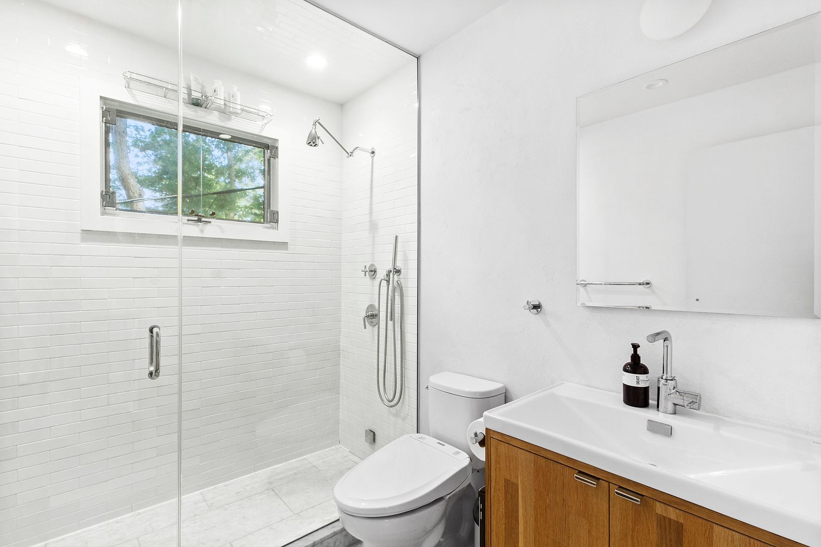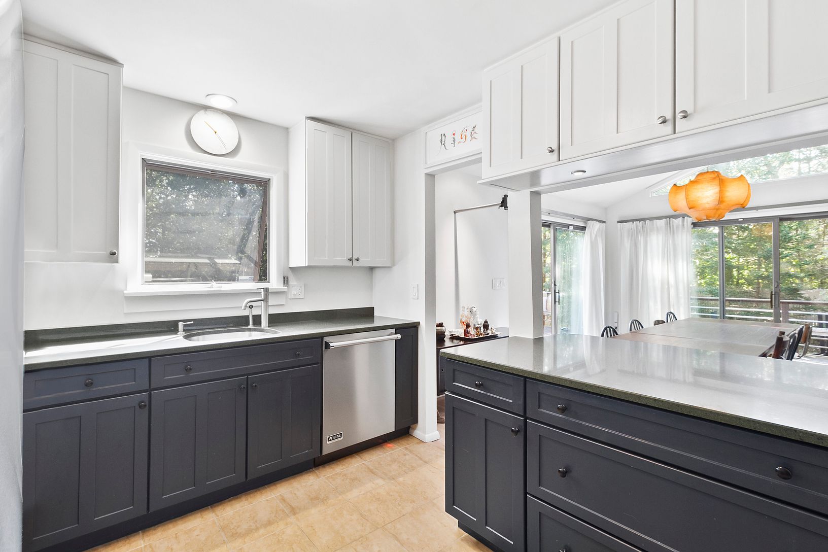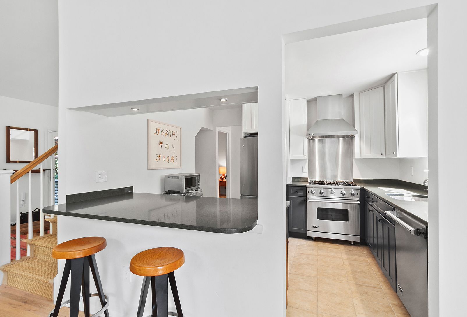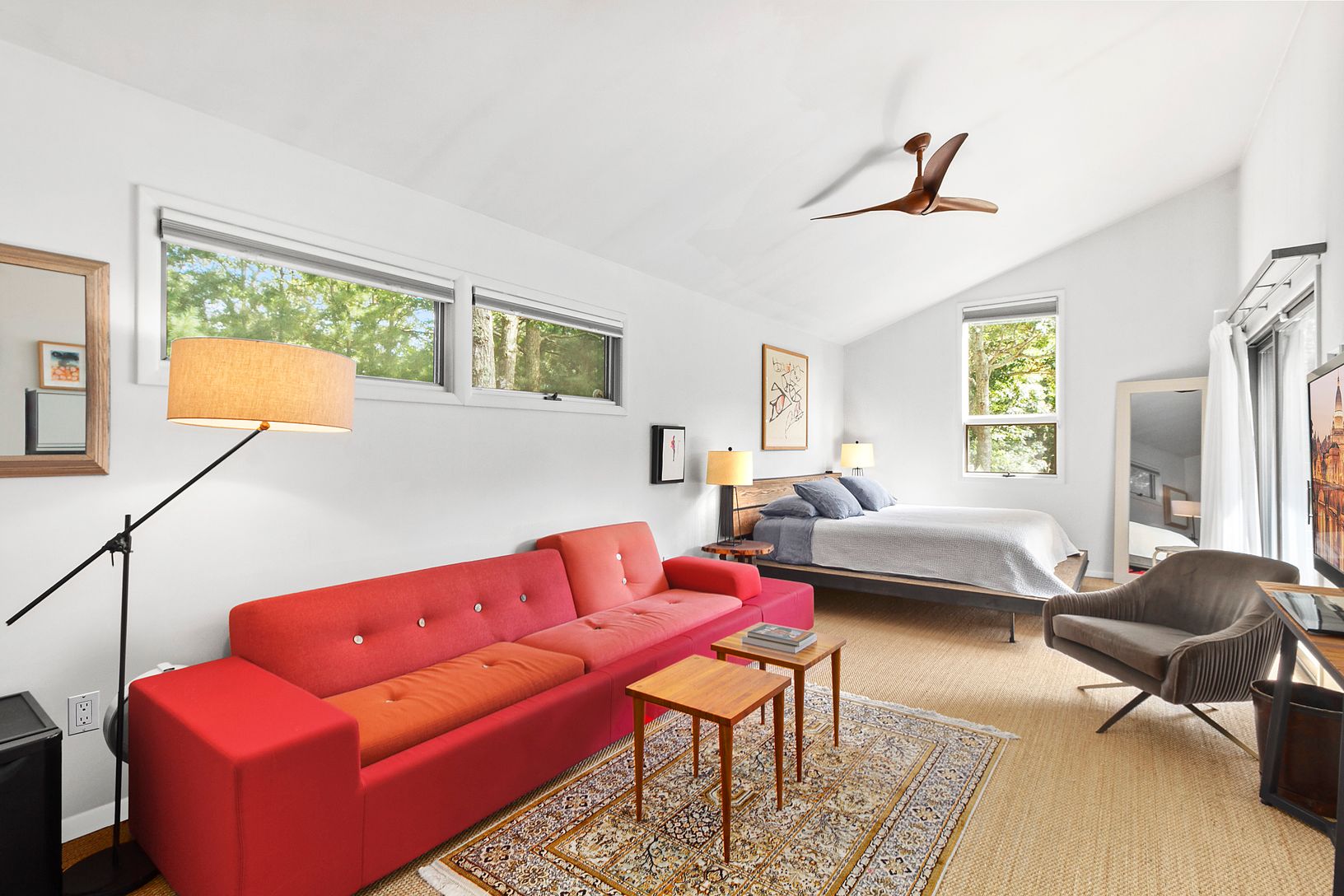 Scallop Avenue is located in a small harbor front community, one of the the most quiet in East Hampton. The .60 acre property has a private horseshoe shaped driveway with ample parking. Enter the home through the front porch to an open and bright living space. The double height living room is open to the kitchen and dining rooms and has a large fireplace. The saltbox style home has two large bedrooms downstairs and an expansive master suite