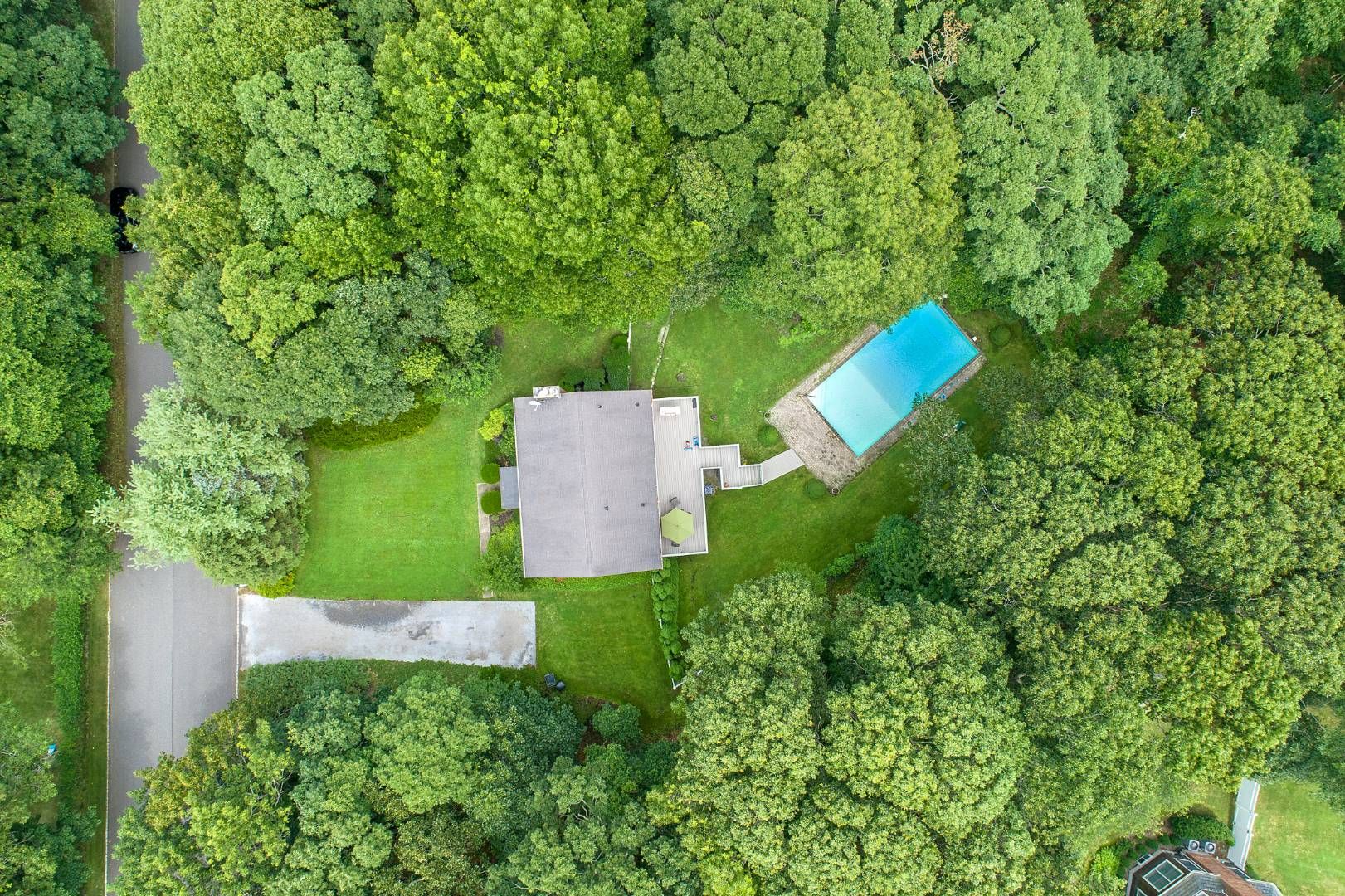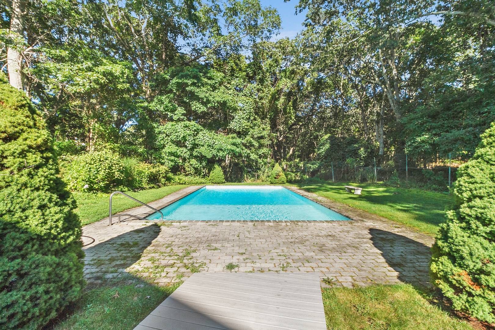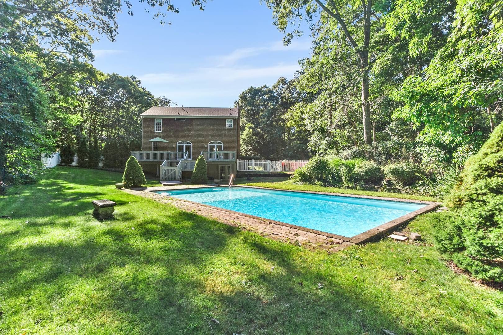 A classic, two-story, 4-bedroom shingled traditional home located in a fantastic Southampton neighborhood. The private, 1.10+/- acre grounds are spacious and feature a heated swimming pool as well as an expansive deck overlooking the beautifully manicured landscape. Great areas to entertain or relax. Interior features include living room with fireplace, charming kitchen with informal dining area, formal dining room, central air conditioning, a