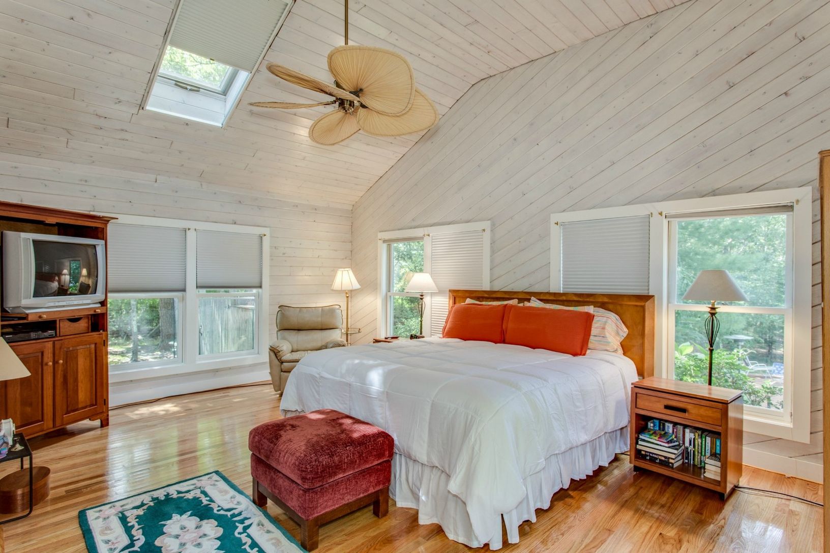 First offering! Fabulous Hamptons style home sited on a beautifully landscaped property abutting a reserve. Features include 3 bedrooms (consisting of a first floor master suite with fireplace, skylight, and windows on three sides), 3 bathrooms, living room with fireplace, eat-in kitchen and dining area, and an all purpose room currently set up as a gym and office area. Outside, the large deck with awning is perfect for entertaining, and th
