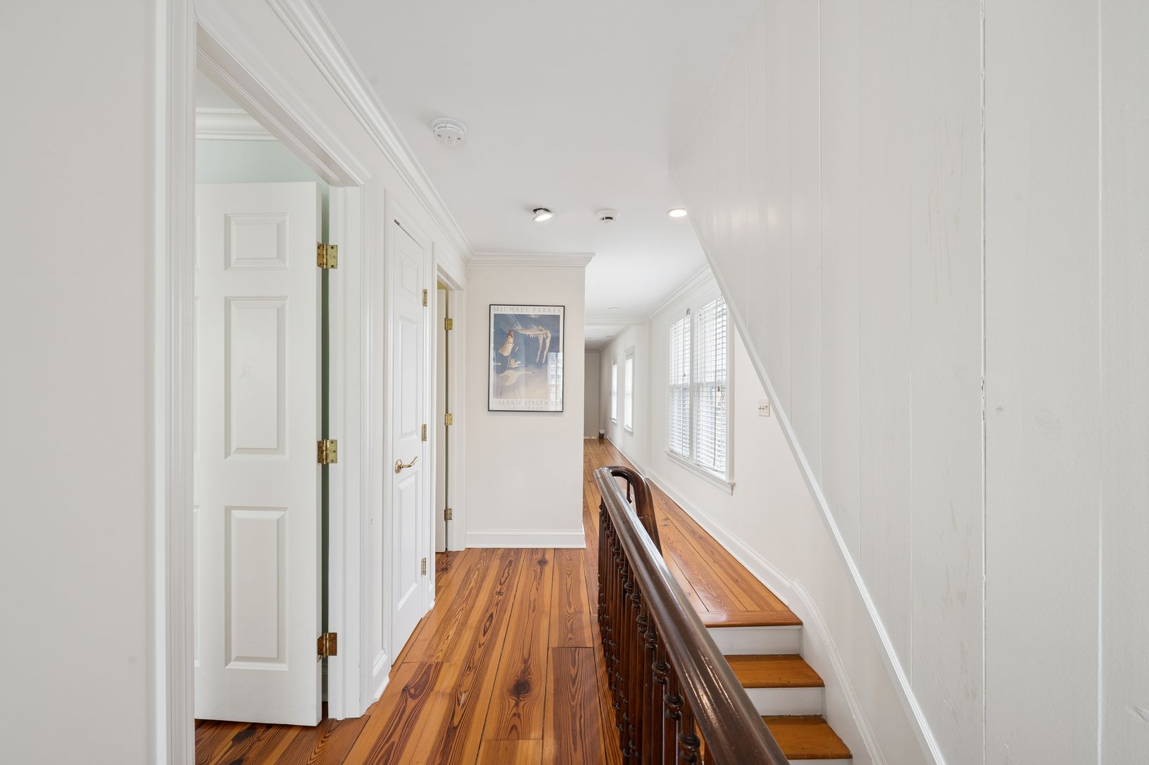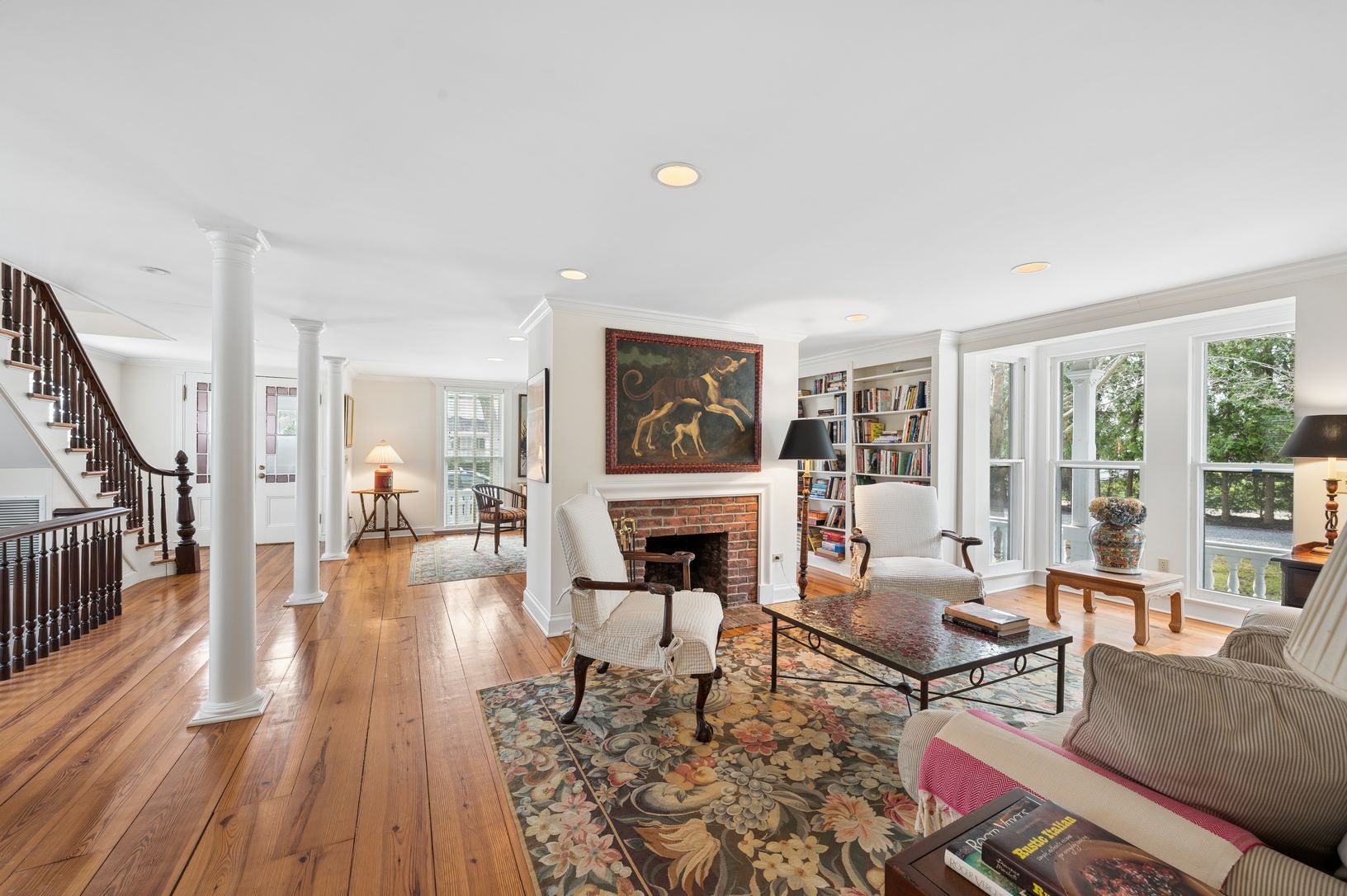 Timeless elegance meets village living in this distinguished 1830s Victorian on coveted Captain's Row in Sag Harbor. Once owned by merchant and whaling ship owner D.H. Douglas, this Eastlake-style residence is a true Main Street standout, defined by its ornate brackets, classic wraparound porch, and enduring curb appeal. Inside, sun-drenched double parlors with floor-to-ceiling sash windows create a gracious setting for entertaining, while the