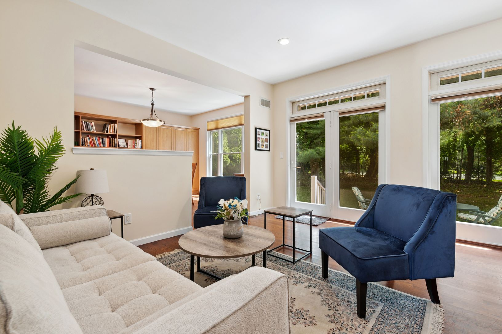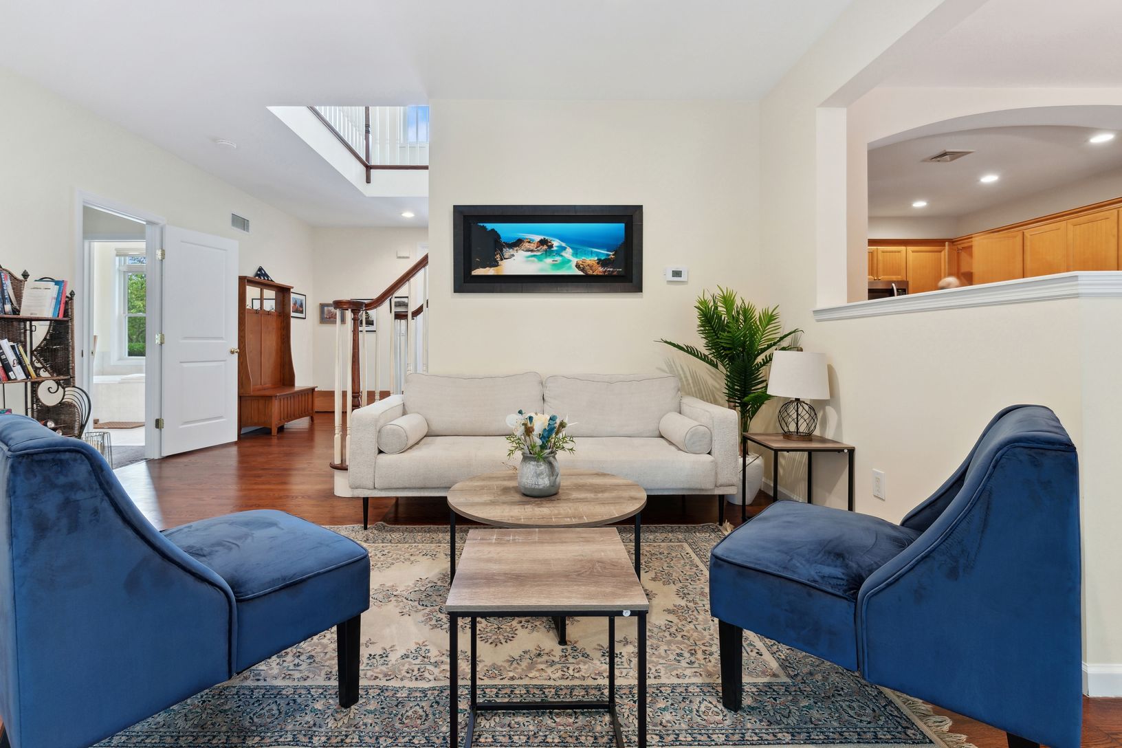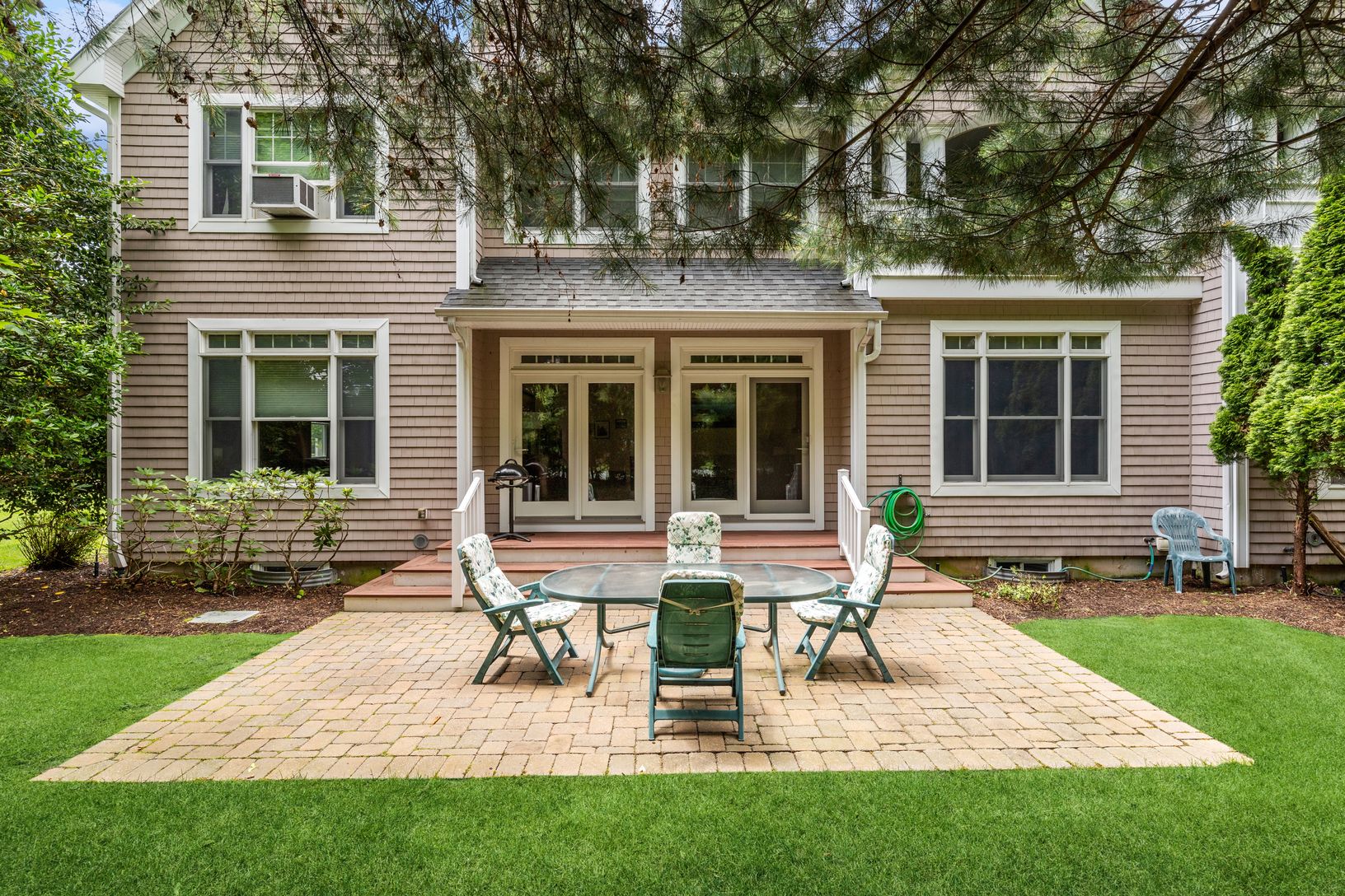 In the heart of Main St, Westhampton Beach Village. This turn key, open floor plan, 2,239 sq ft, 3 bedroom, 3.5 bath year round condo features an open eat in kitchen/dining room, living room, second floor living room and second floor covered porch. The first floor features the main living space, a large primary ensuite bedroom, powder room. laundry room and a grand 2 story entry foyer. The living room opens to your back yard patio for outdoor