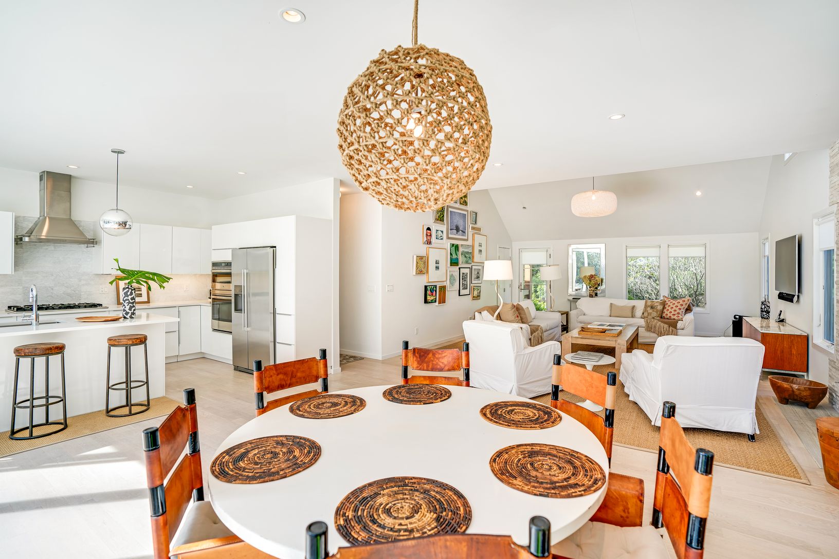 Discover this meticulously designed and furnished interior flooded with natural light, creating an inviting atmosphere for both relaxation and entertaining. Featuring three bedrooms and two full baths, this 1700+/- SF one-story custom modern home offers ample space for you and your guests to unwind in chic beauty style.The airy open living and dining areas seamlessly flow into a well-equipped kitchen leading handily to the outdoor area. The be