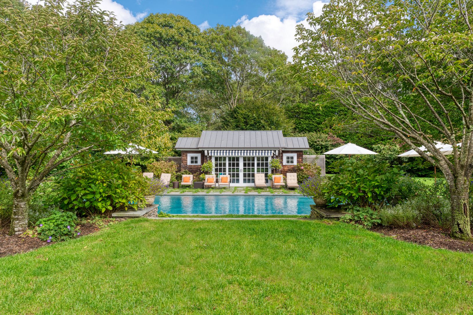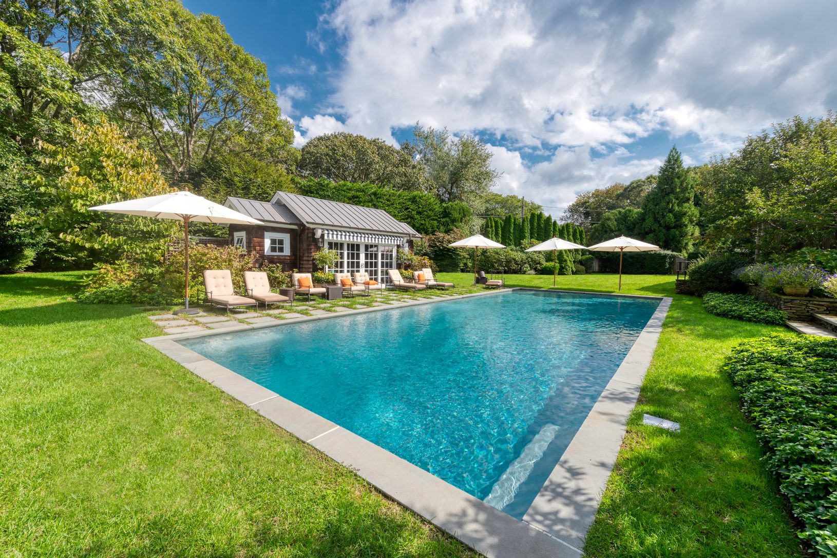 Looking for a serenely sophisticated summer escape to the Hamptons? This is it. Located near Georgica Beach, this beautiful shingle style home is sited on one +/- acre of manicured grounds with dining patios, hidden niches, oversize gunite pool, pool house with kitchen, outdoor shower and photo shoot ready gardens. With six en suite bed rooms, formal dining and living rooms, a spacious breakfast room and state of the art kitchen, this house