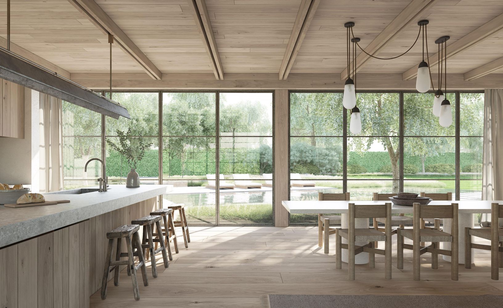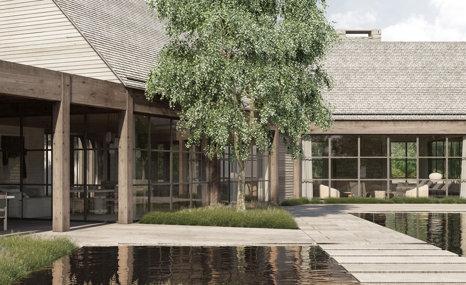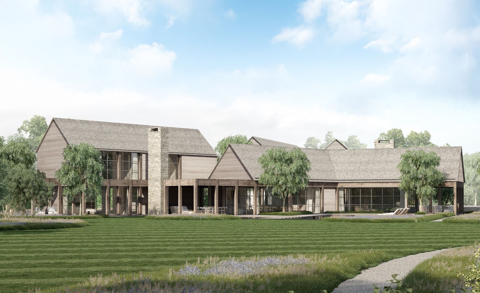 Deep within this private enclave lies this new home, designed by the talented and highly regarded architect Adam Jordan, featuring walls of glass in a series of barn-like structures that seamlessly connect living spaces and private sleeping chambers with home offices, a gym/wellness area, and spectacular covered outdoor spaces. 12,650 square feet on 3 levels includes 9/10 bedrooms, 12 bathrooms, and generous public rooms, including a living ro