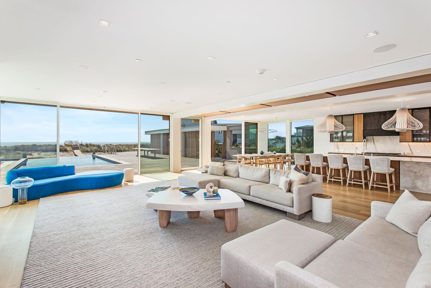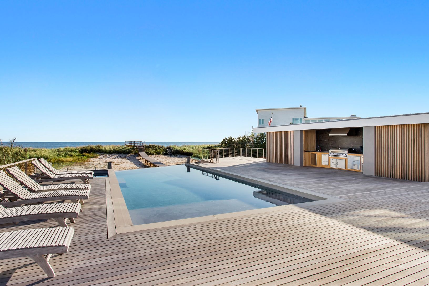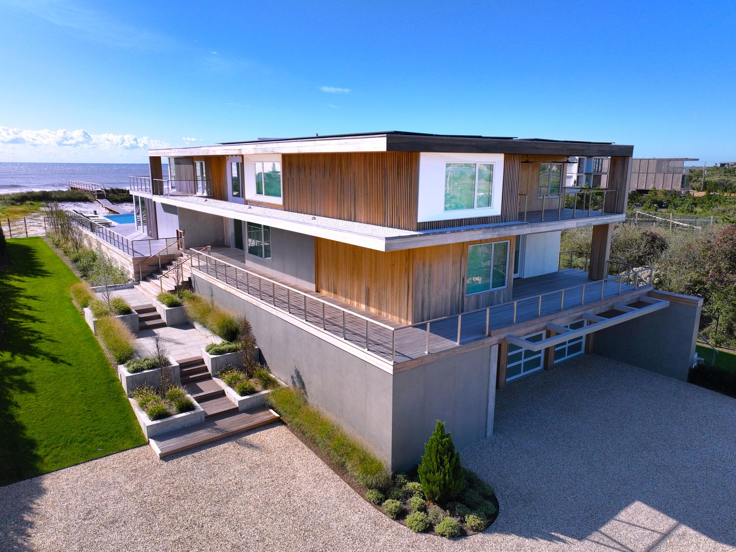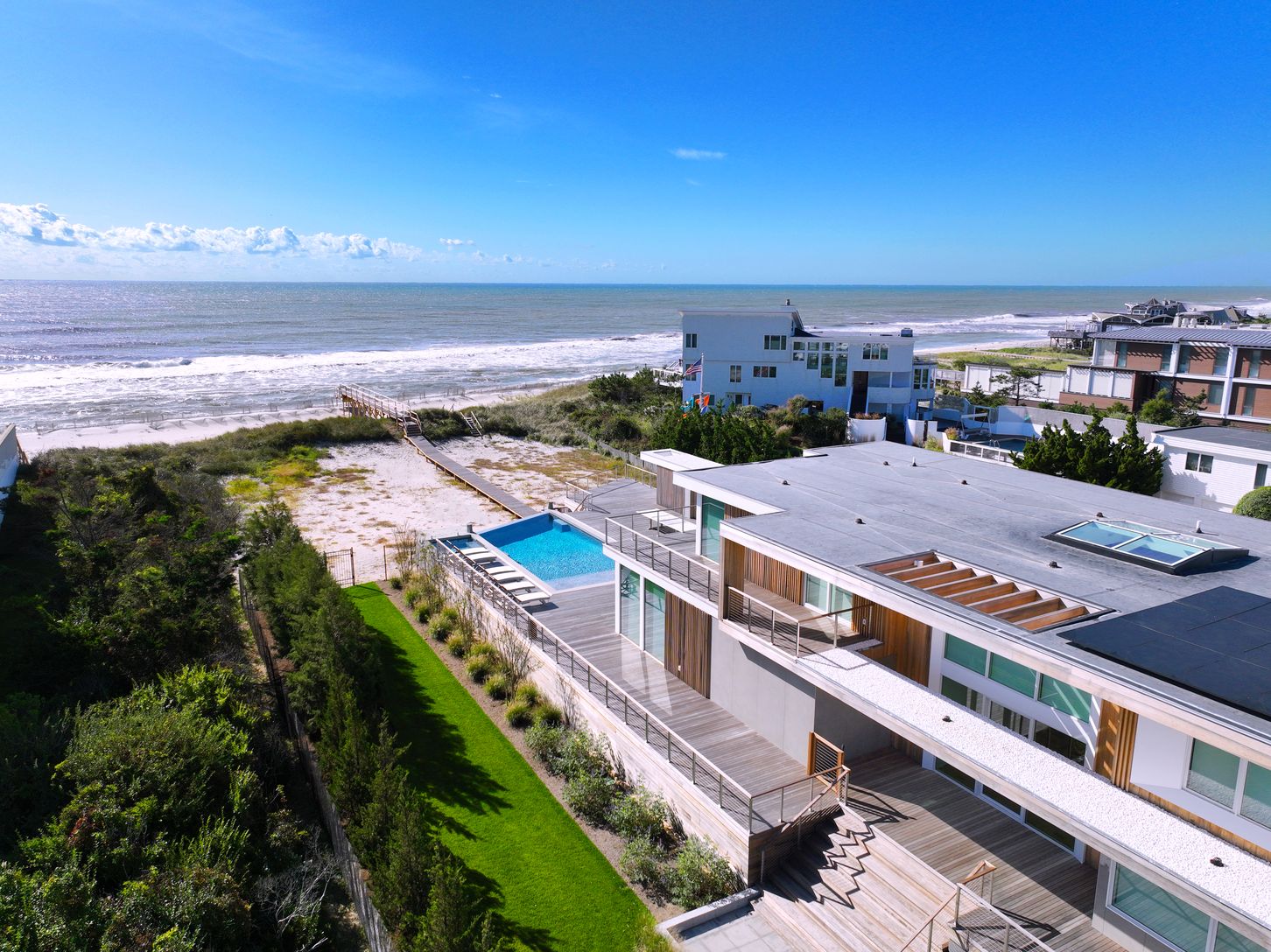 Perched majestically and soaring high above the white sandy dunes, with an unrivaled vantage point overlooking the endless rolling waves of your private, pristine white sandy beach is where you'll find this IMMACULATE NEW 3 LEVEL OCEANFRONT MODERN. Welcome to 182 Dune. This once in a lifetime opportunity to experience the epitome of luxurious Oceanfront living to summer in the Hamptons at this fully equipped NEW Oceanfront sanctuary is here an