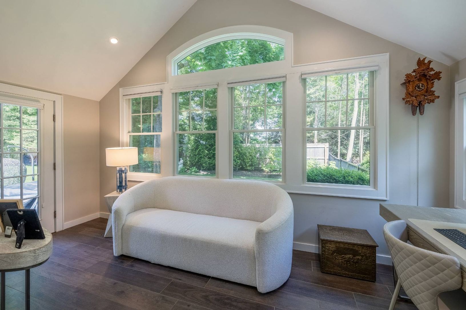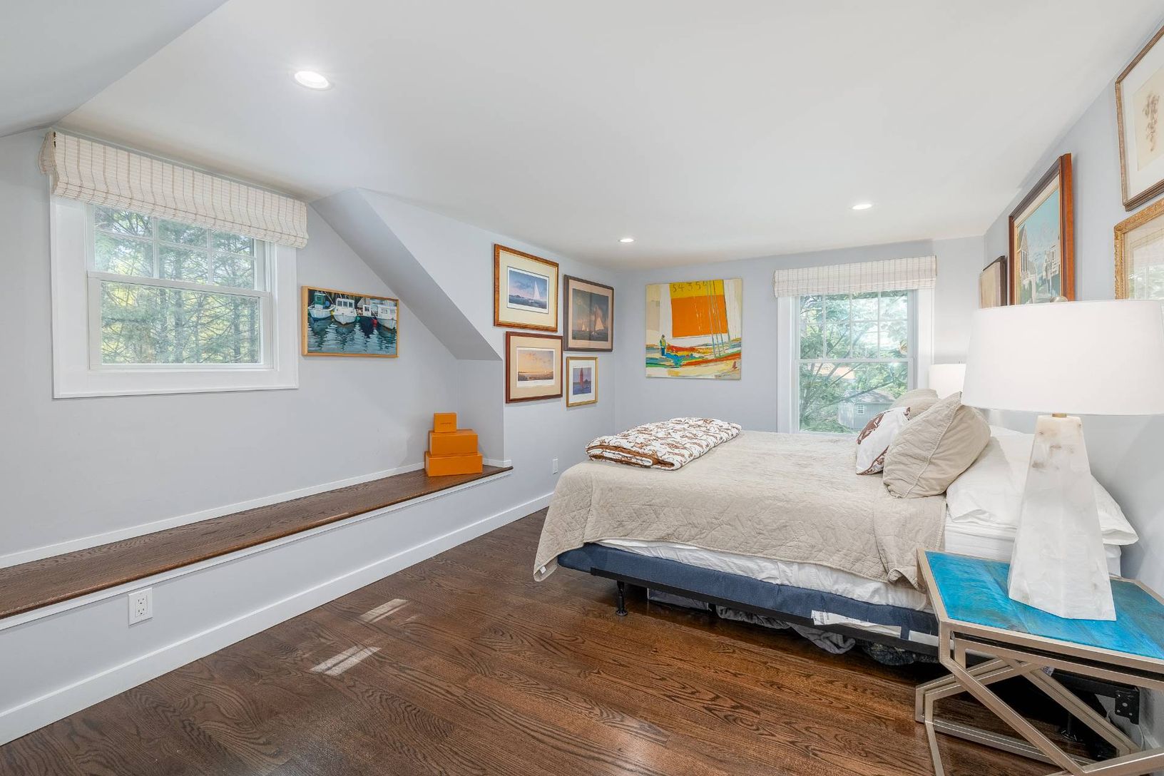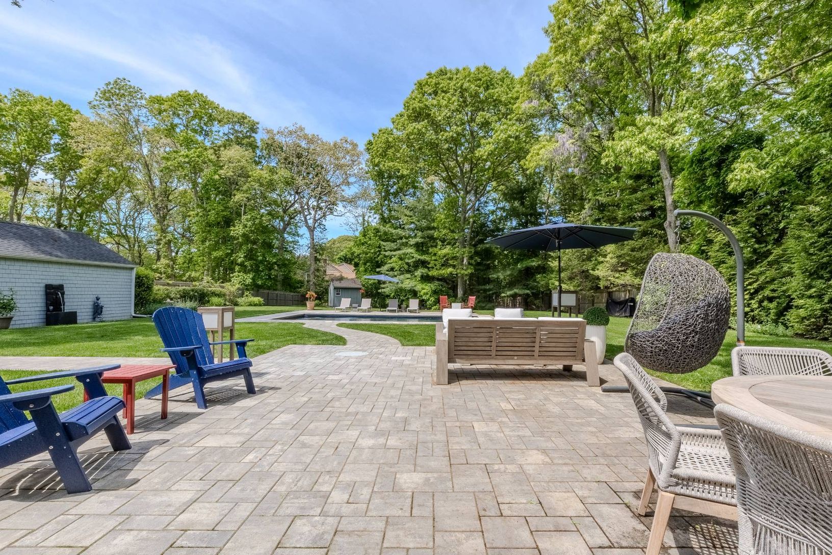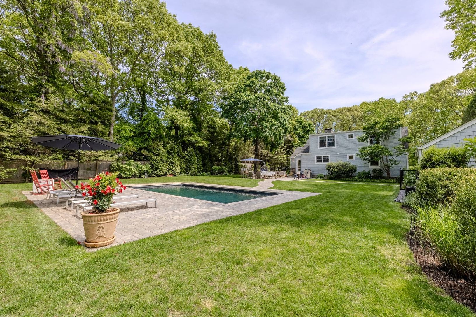 Mattituck, North Fork: Embrace the epitome of classic New England living with this stunning Cape by the Peconic Bay. Meticulously updated for today's lifestyle, this residence offers a lavish 16x32 heated, inground swimming pool and is adorned with designer touches throughout. Revel in the sunroom's radiant heat flooring, the grandeur of the real wood-burning fireplace in the large living room, and the culinary delights that await in the chef'