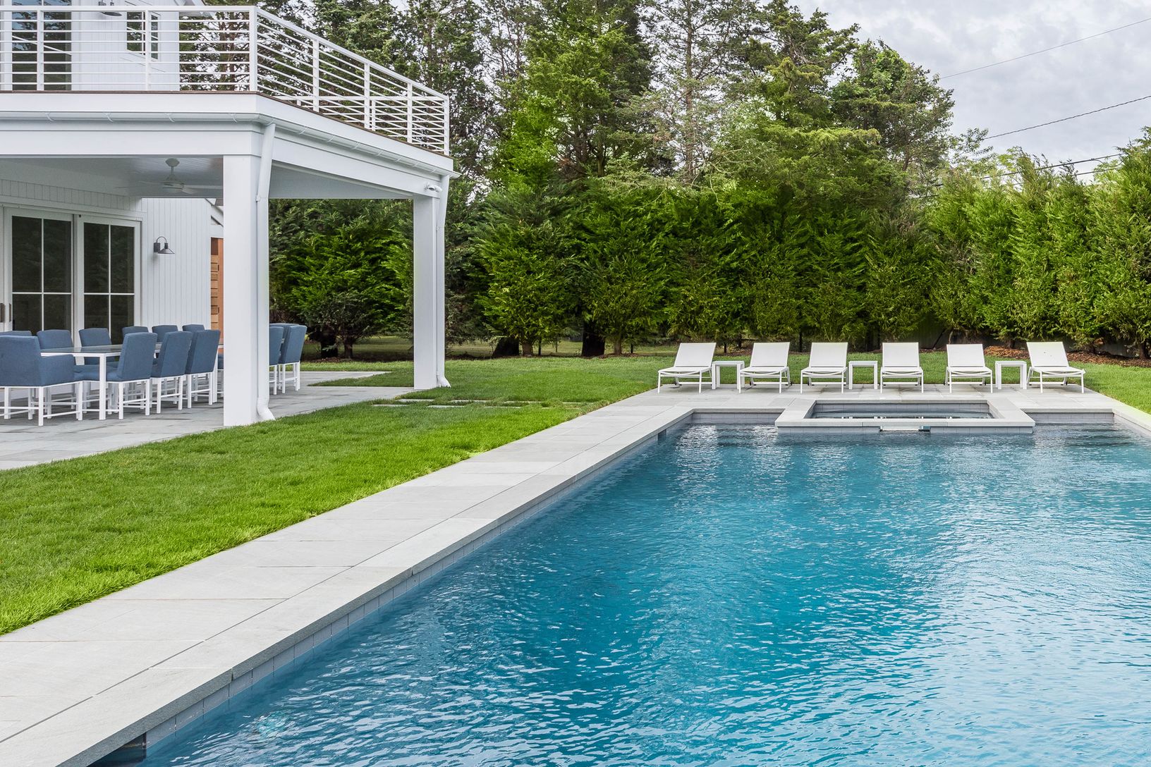 This modern, farmhouse-style property is a short distance to the pristine ocean beaches of Amagansett. On a rarely available location,184 Bluff Road includes a master suite with private terrace and gas fireplace. The first floor includes a custom designed kitchen that opens to a great room for entertaining, breakfast room, dining room, first floor guest bedroom, first floor guest bathroom, powder room, mudroom, and laundry. The second floor ho