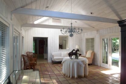 Located just minutes to East Hampton Village is this Francis Fleetwood designed and renovated traditional Farmhouse with gunite pool, beautiful landscaping and views of the bordering horse farm. Stylishly decorated and bright, spacious floor plan offers two master suites in separate wings and an additional two bedrooms with full bathroom, living room with baby grand piano, den, large dining room with wood burning fireplace and cathedral ceilin