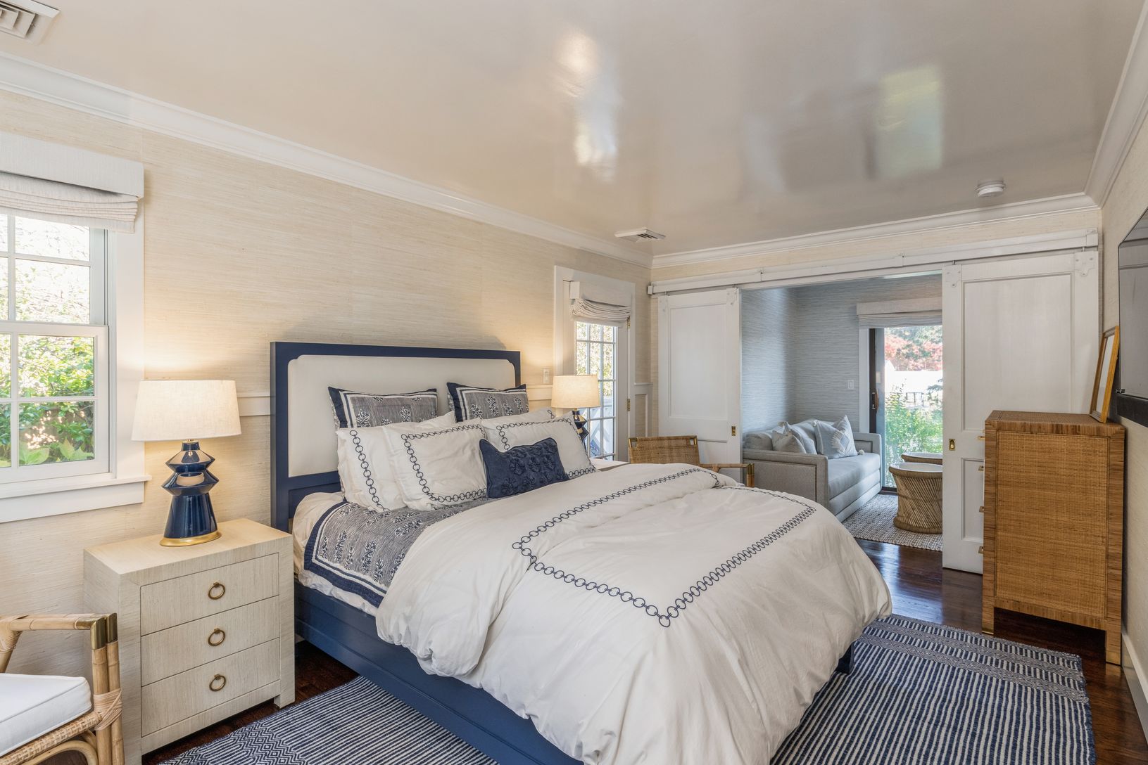 Located in the historic Conscience Point area is this chic waterfront cottage. It has its own large dock and is across the street, west facing from a six acre reserve. The cottage has been recently updated and is move-in ready. Master bedroom has double French doors going out to a private bluestone patio. There is another bedroom on the opposite side of the house also with French doors leading to the private patio. Additionally there is a thir