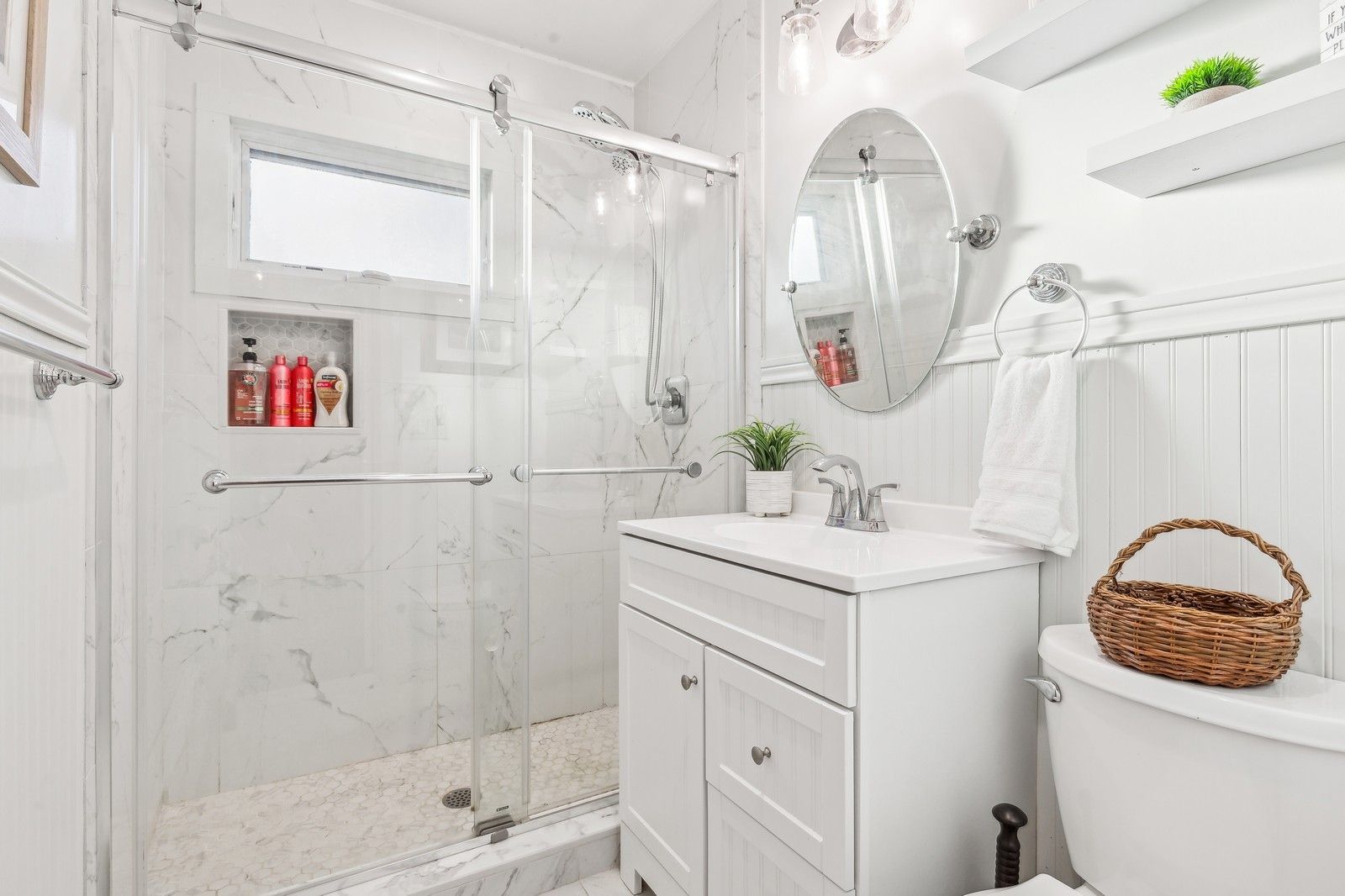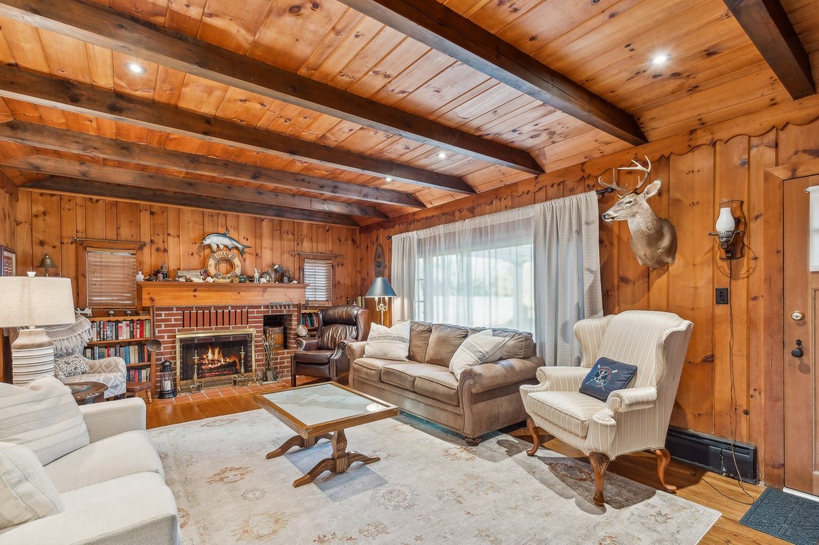 Welcome to your charming log cabin retreat in the heart of exclusive Nassau Farms, just moments away from Nassau Point causeway beach. This cozy yet spacious home offers a tranquil escape with its rustic charm and modern conveniences.