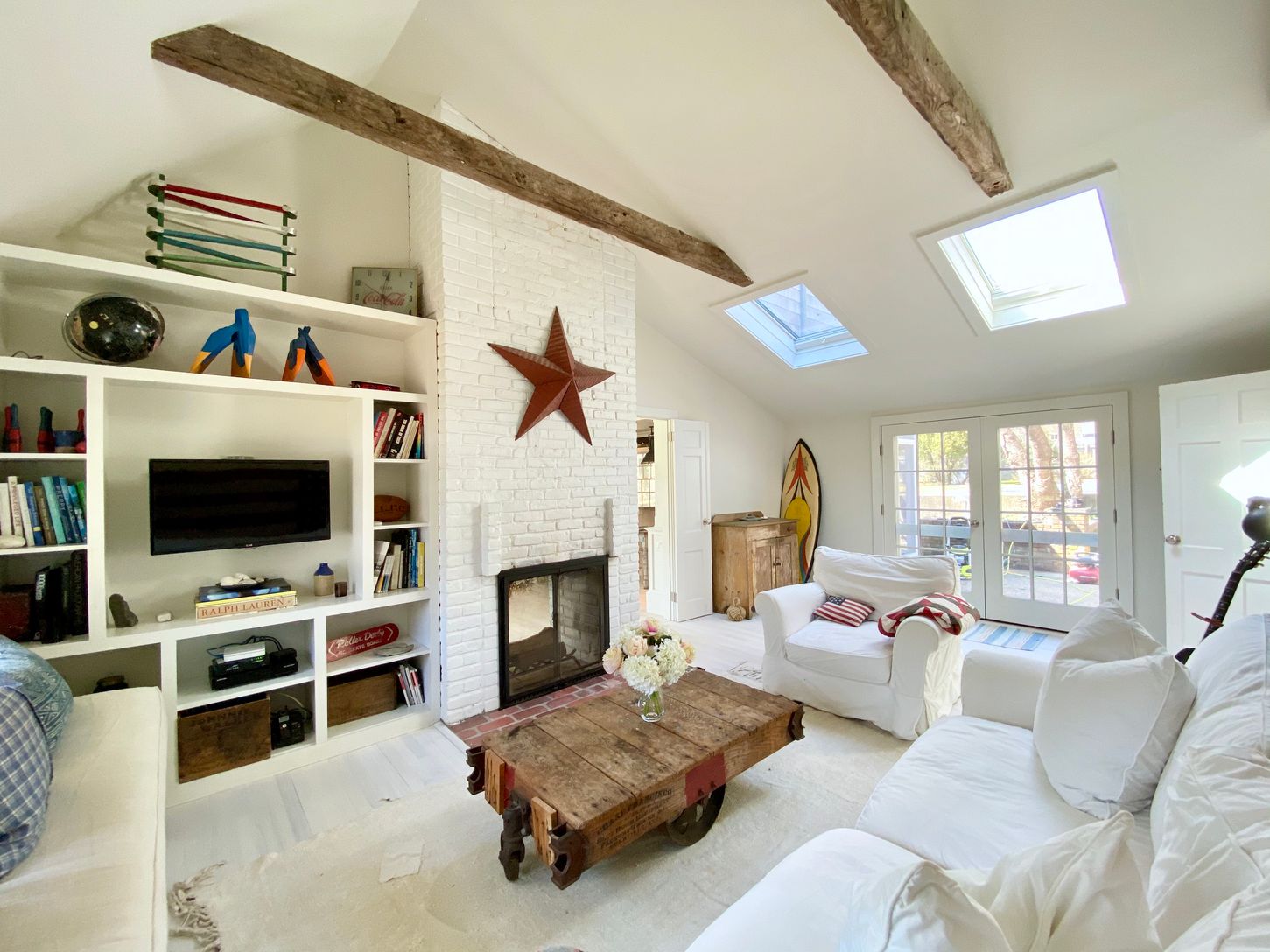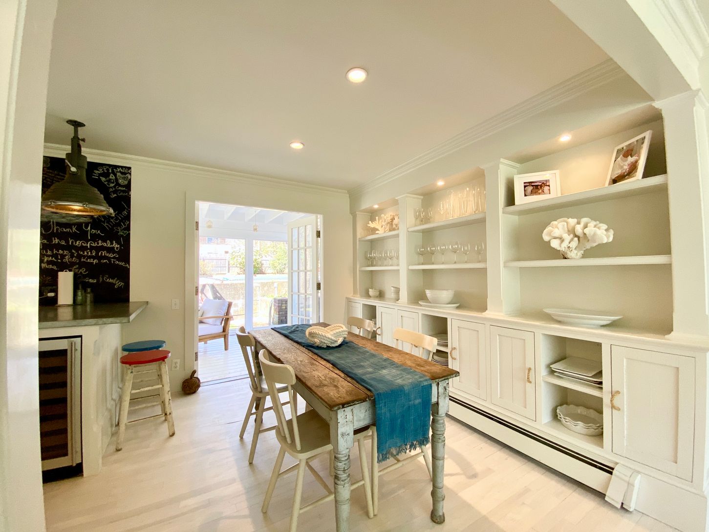 Enjoy your early mornings along the beach from this shingled traditional with character and style like no other. As you go past a tree swing and through the ornamental grasses, a cozy light filled living room awaits you. Here a double sided fireplace opens to another living area with skylights and built ins. The ambience of the dining area and kitchen make you feel like you're in a french bistro and has easy access through double doors to a su