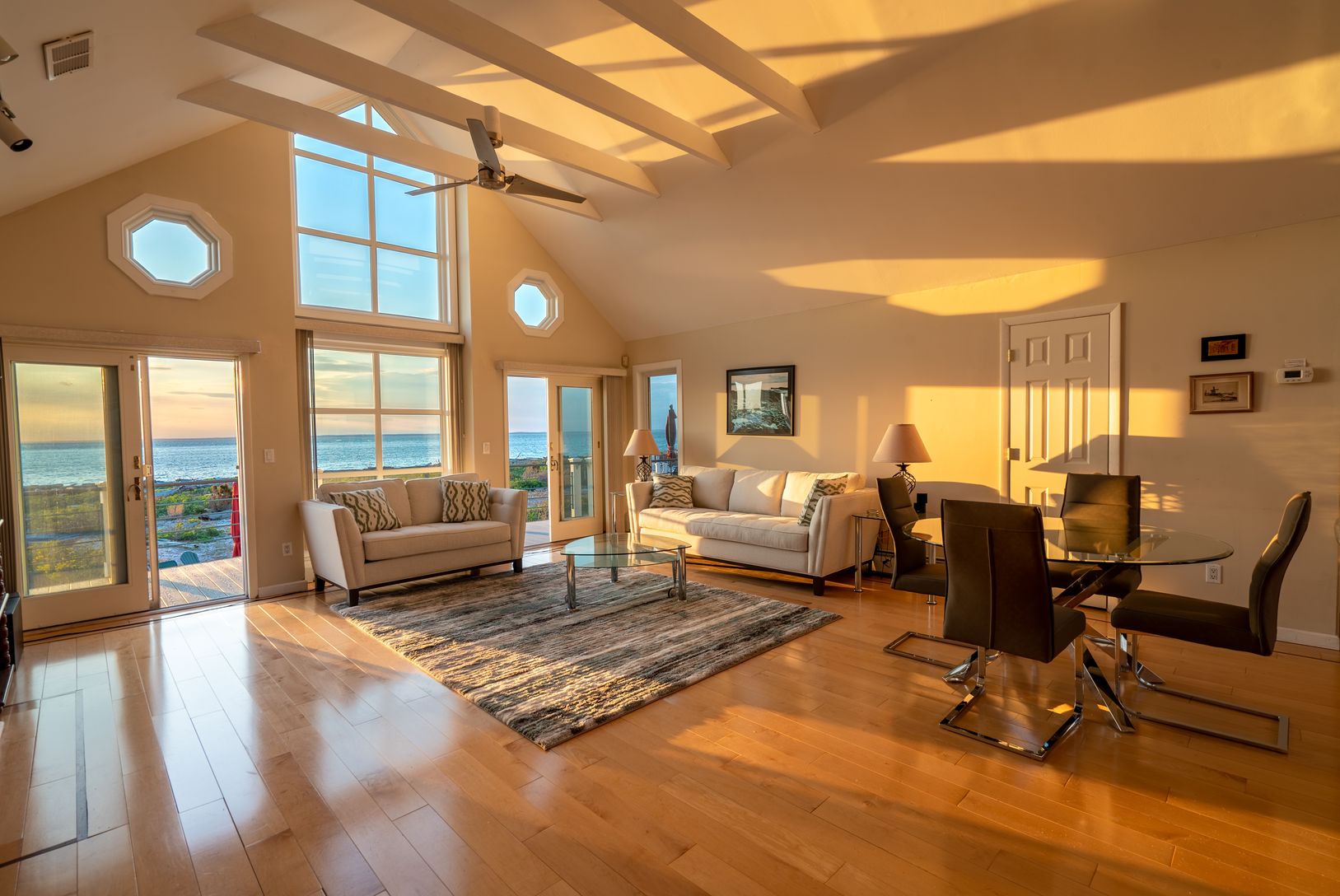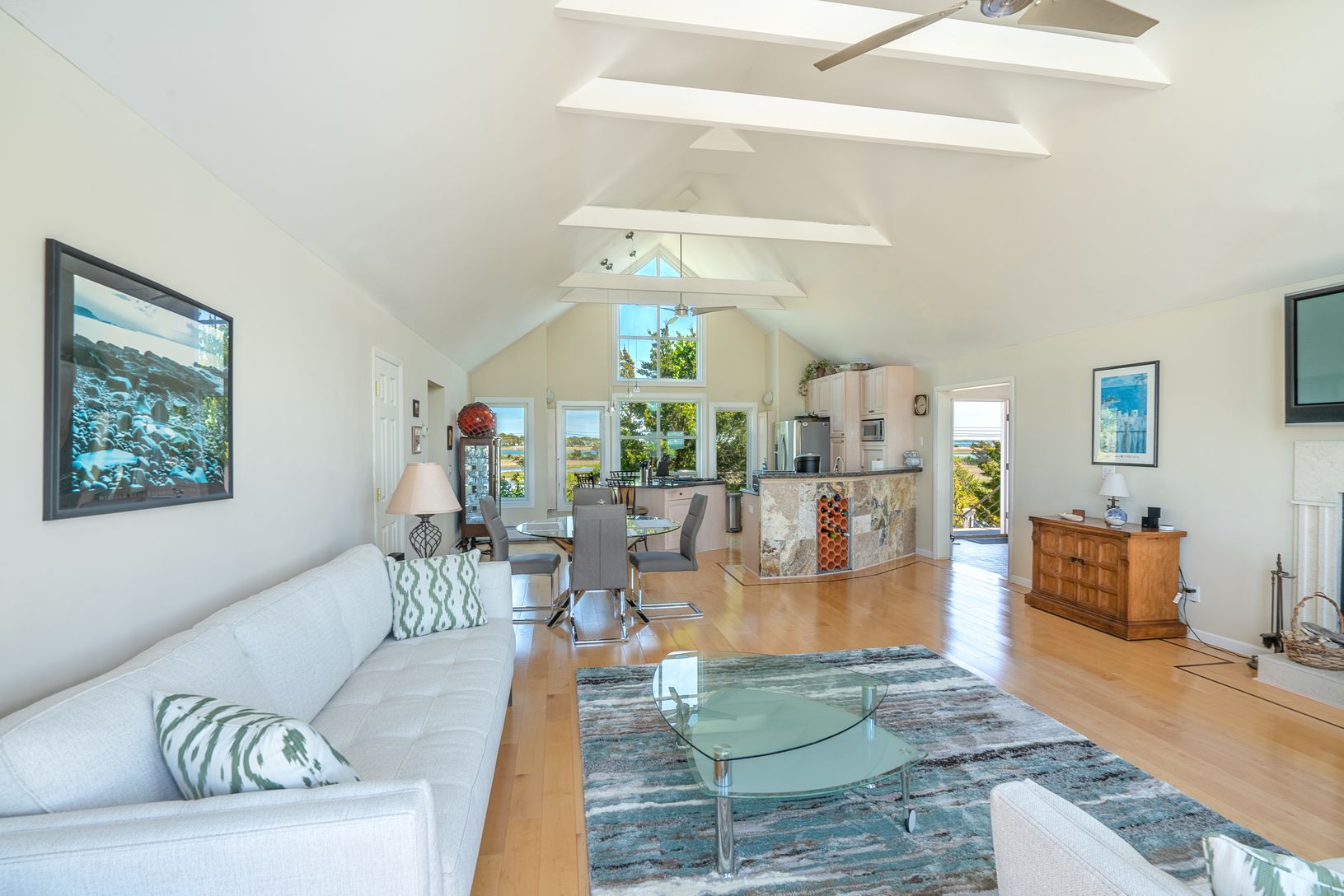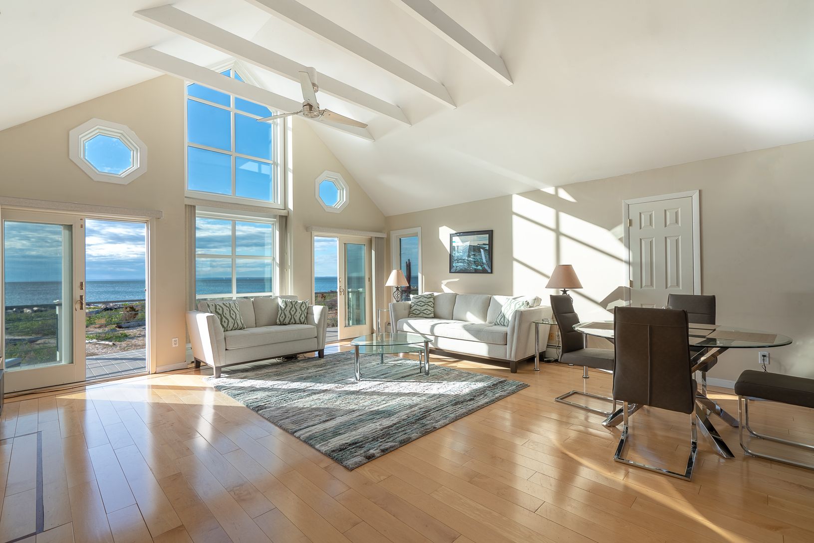 Take in sweeping views overlooking 618 +/- feet of privately owned beach front at this unique Sound-front home situated on 3.86 +/- acres with an 18 x 36 heated salt water pool. The renovated waterfront home features unique panoramic views of the Long Island Sound and Great Peconic Bay with plentiful amounts of natural light flowing through large glass doors and windows. A large patio on the bay side and an expansive rear deck on the sound sid